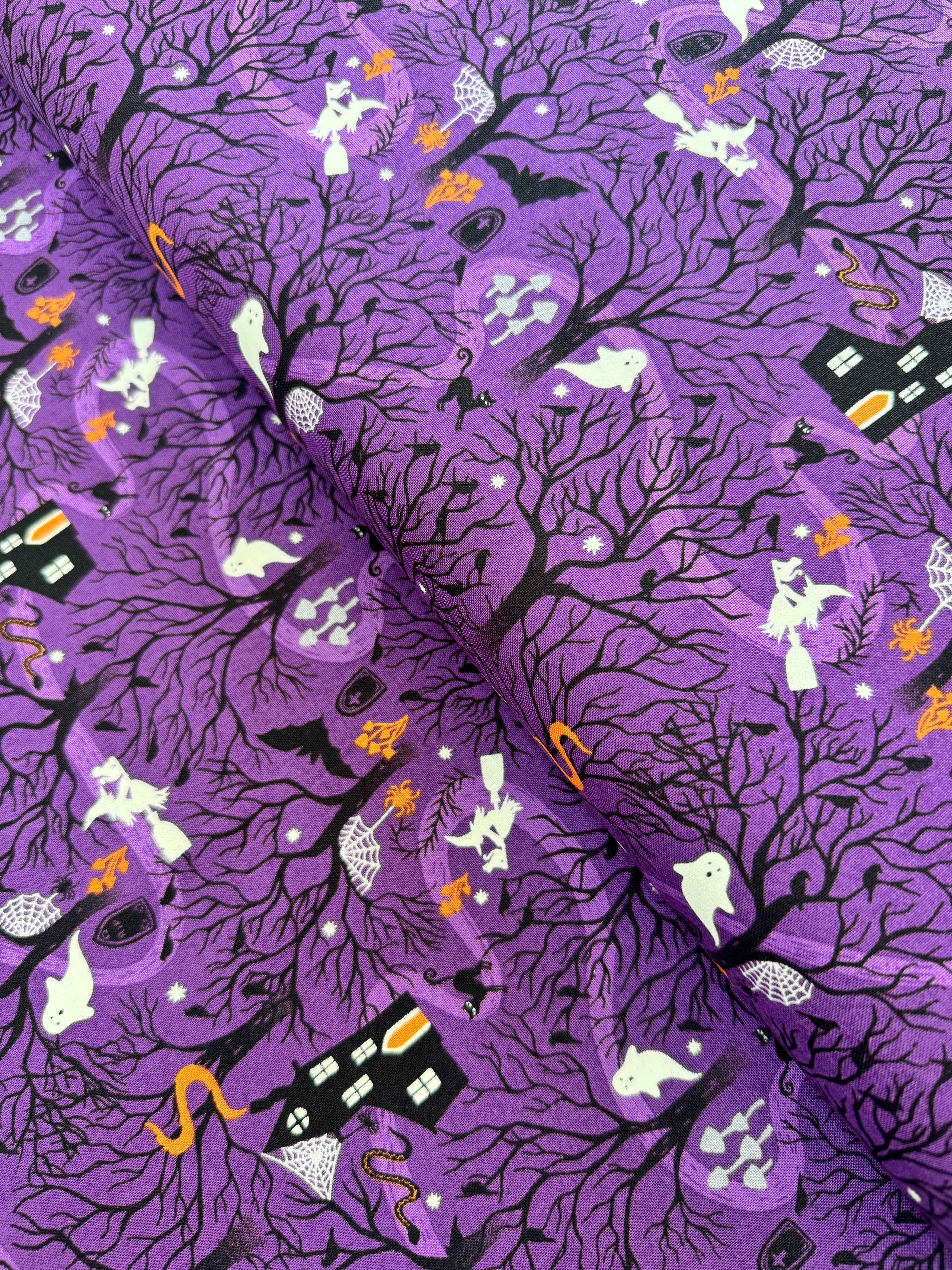 Witchy Woods on Halloween Orange Glow in the Dark Yardage