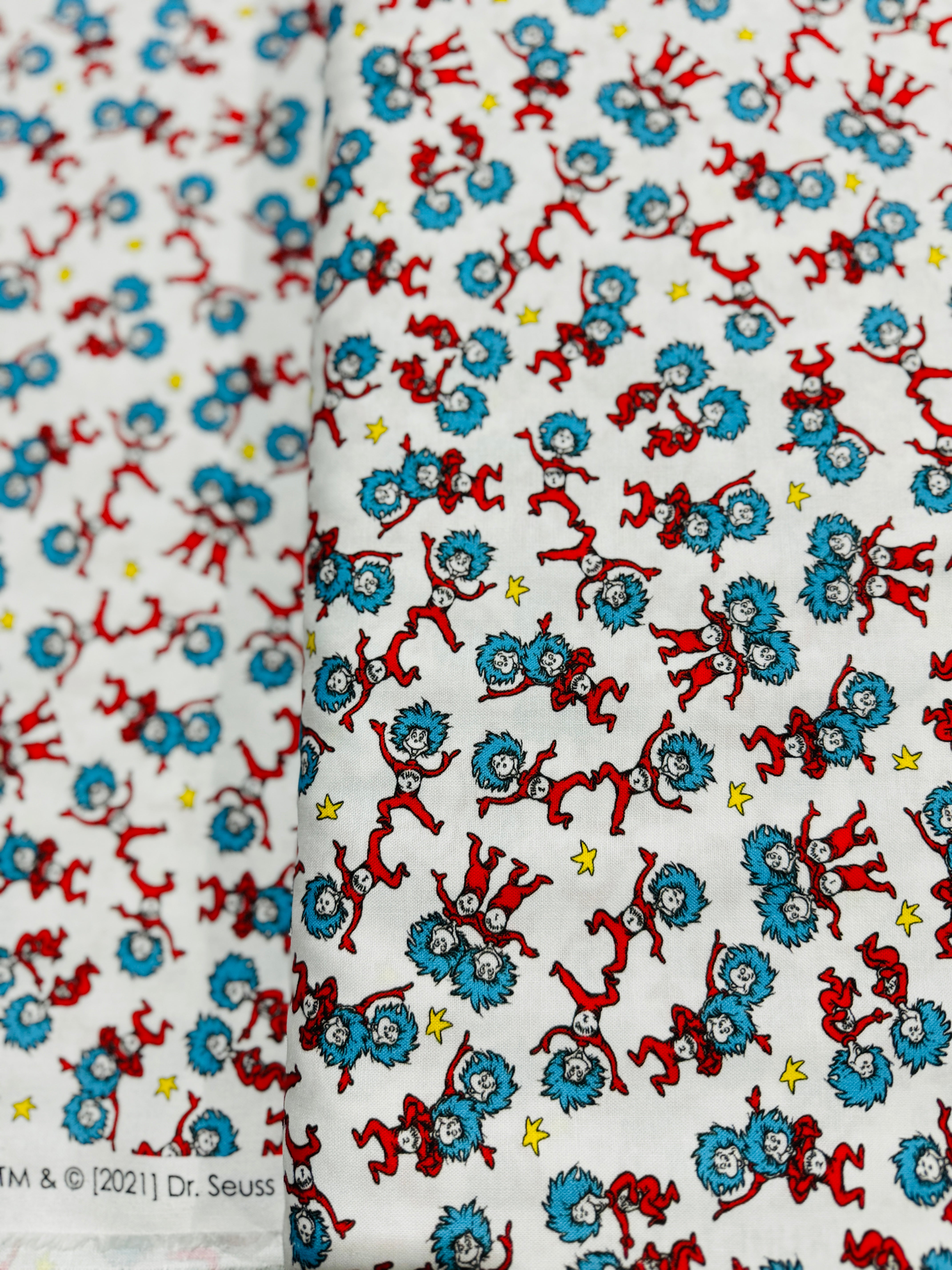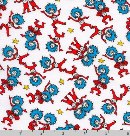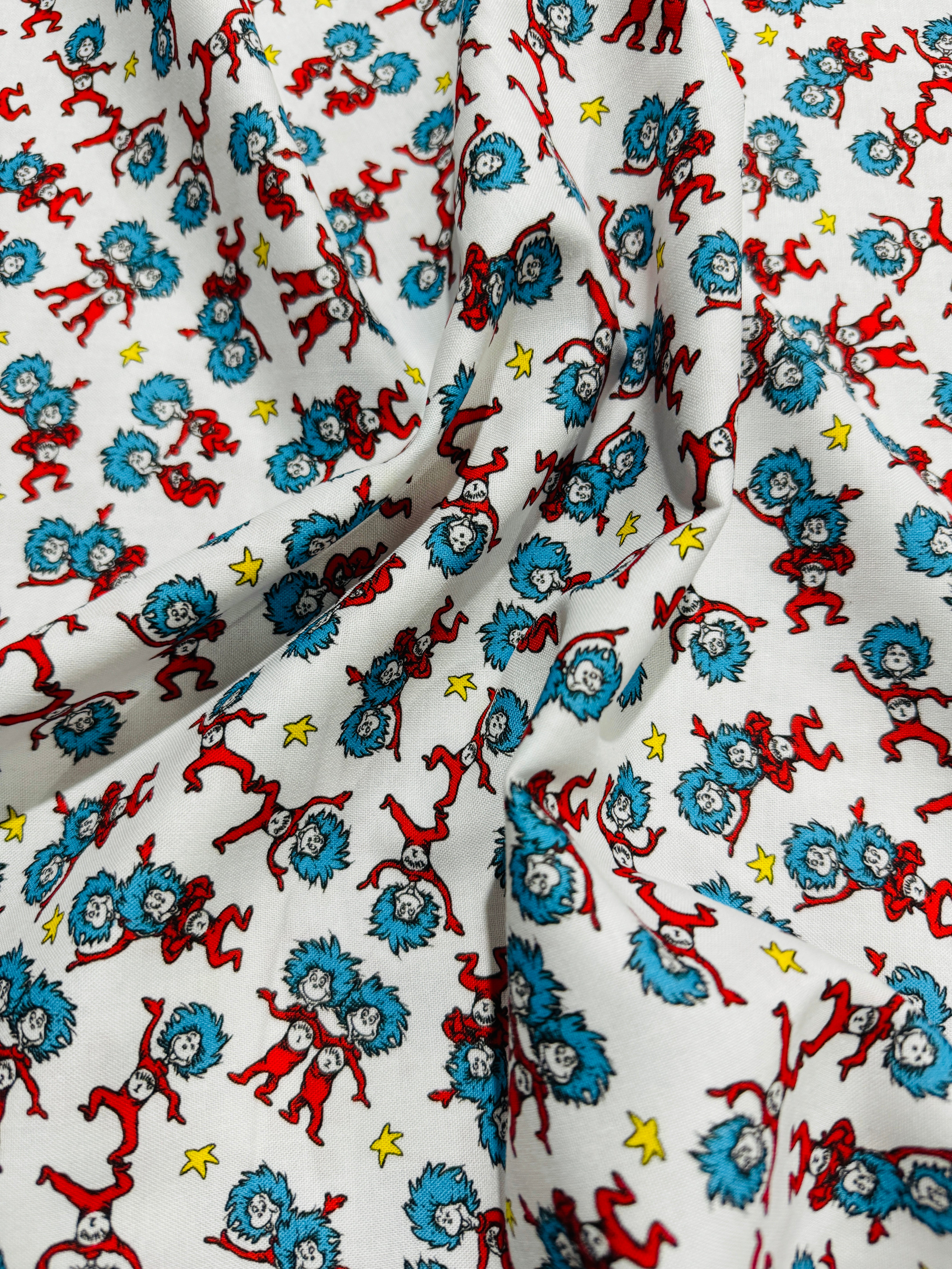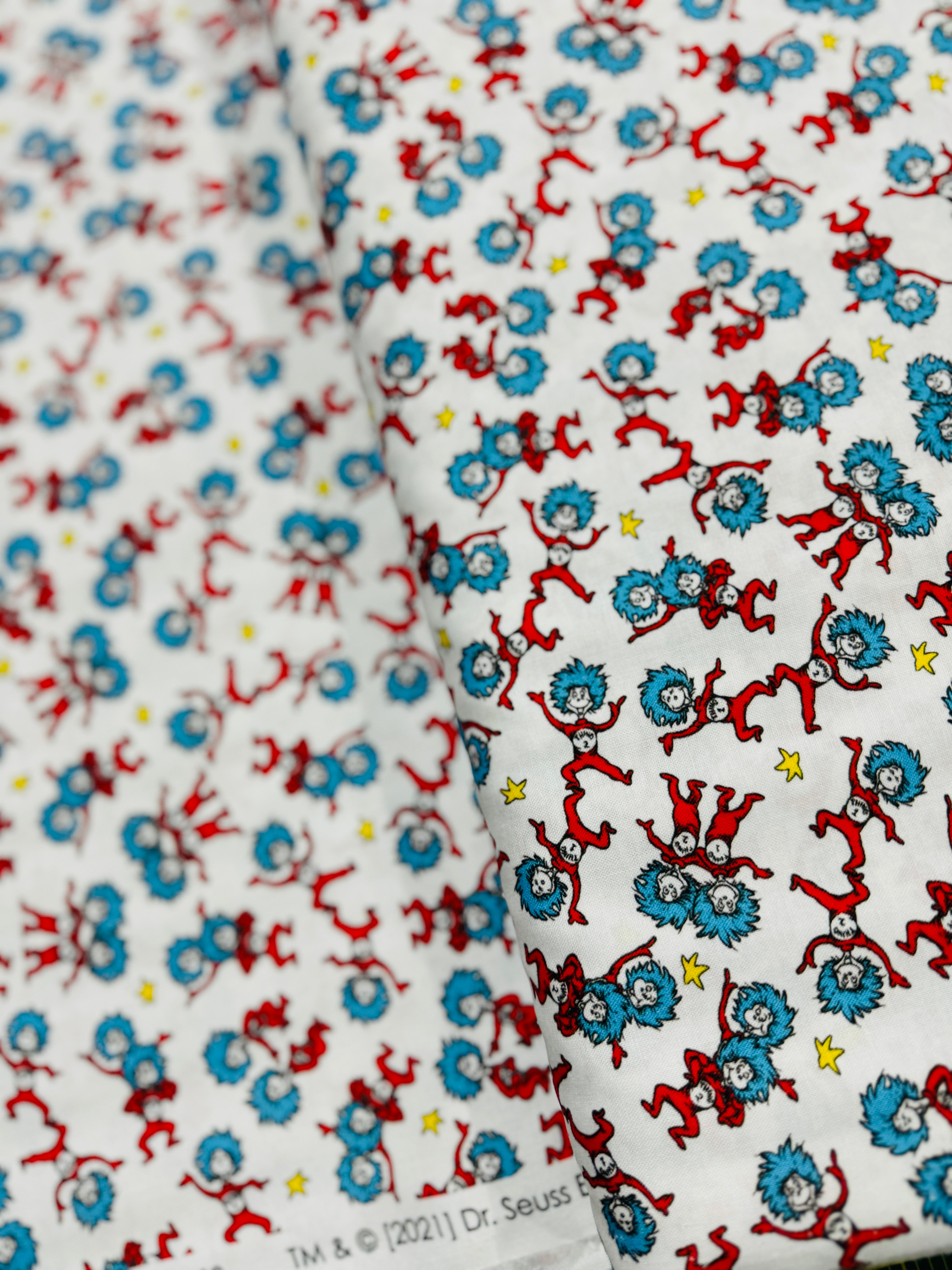 A Little Dr Seuss - Thing 1 Thing 2 on White Yardage