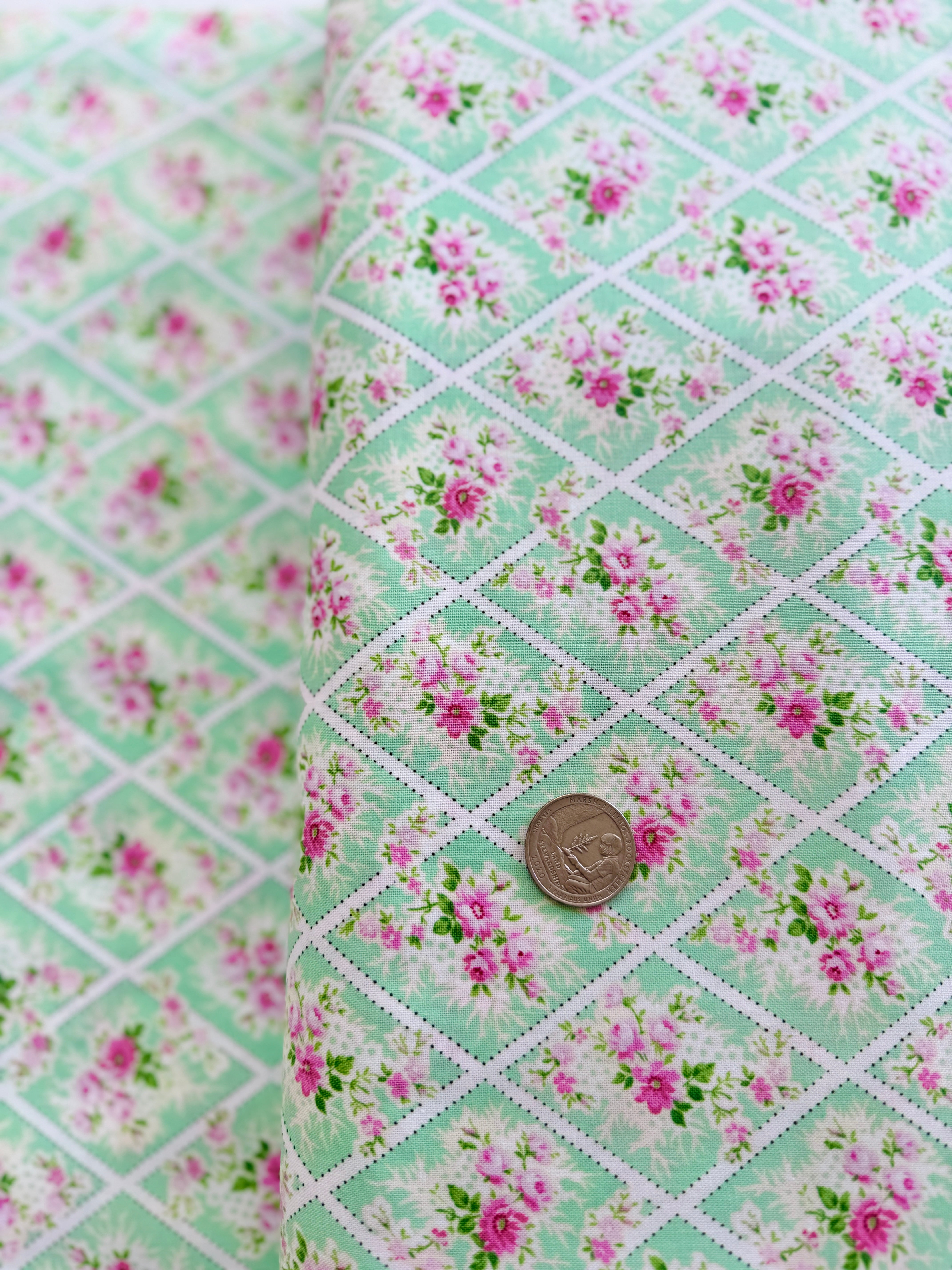 Add a touch of elegance to your next sewing project with this beautiful fabric from RJR Fabrics. The Afternoon in the Attic collection features lovely floral designs, perfect for quilts, clothes, and so much more. This particular fabric, Miniature Bouquet Sweet Pea, is a beautiful print in shades of pink, purple, and green. It's perfect for spring or summer projects!