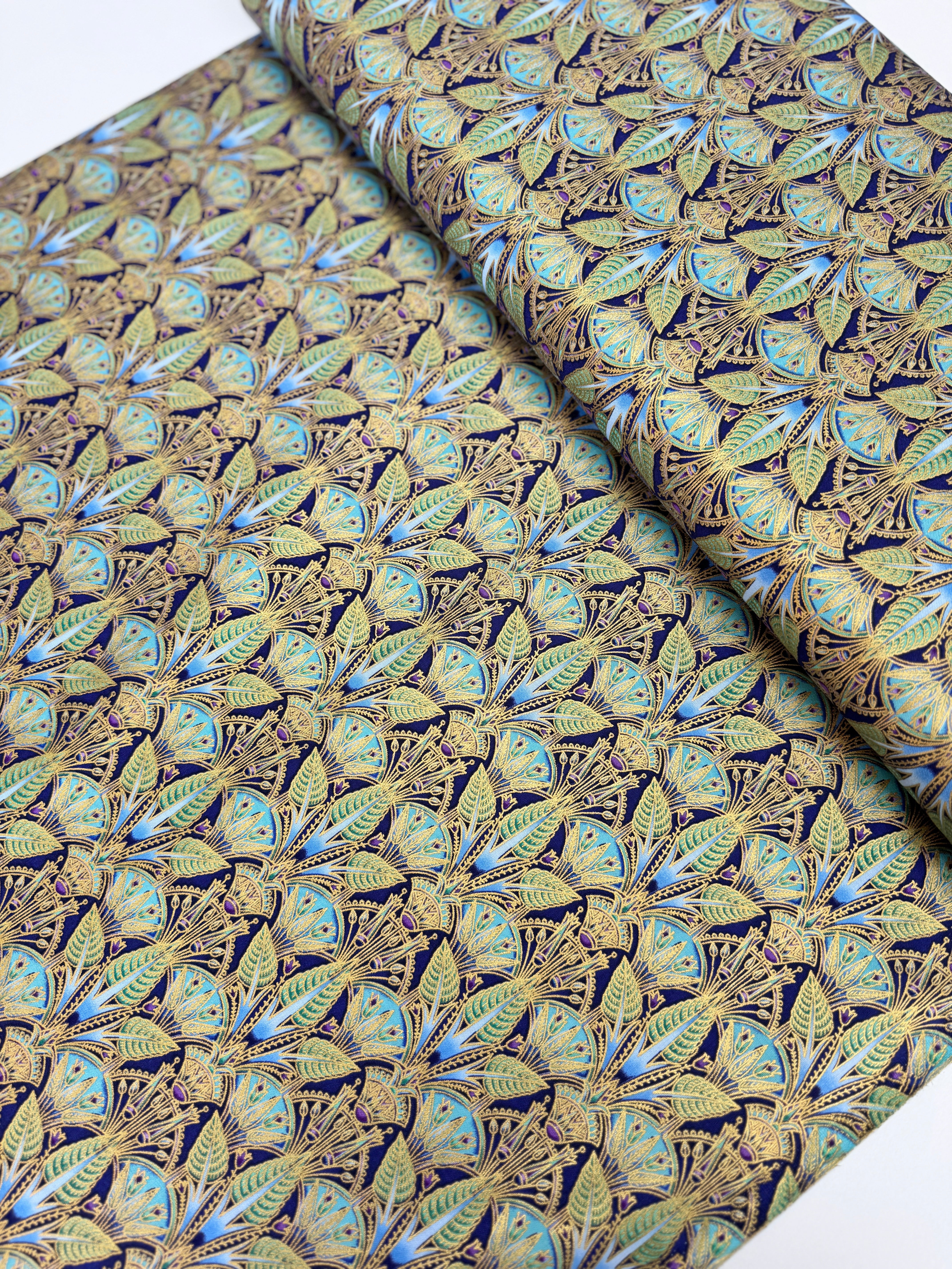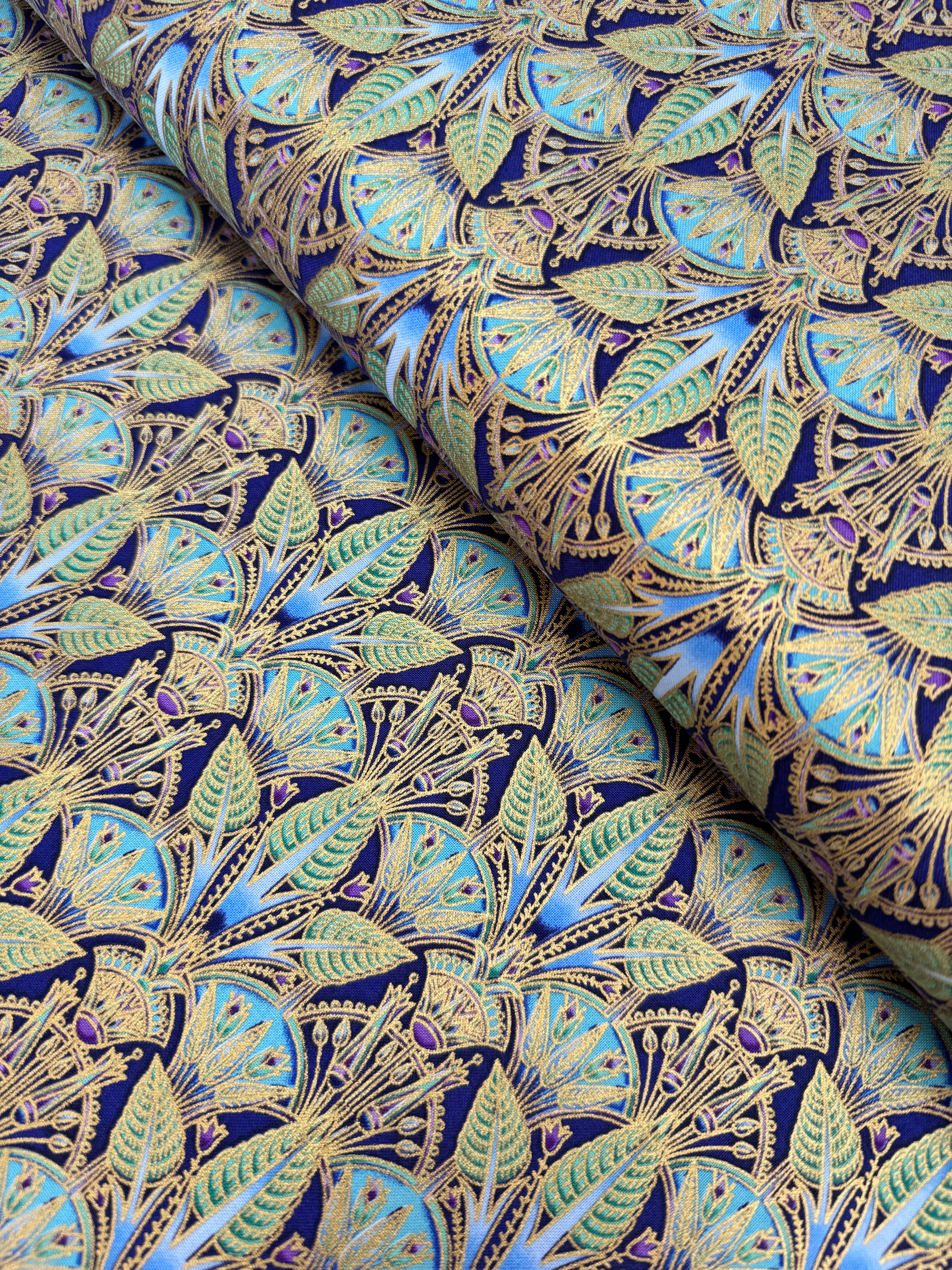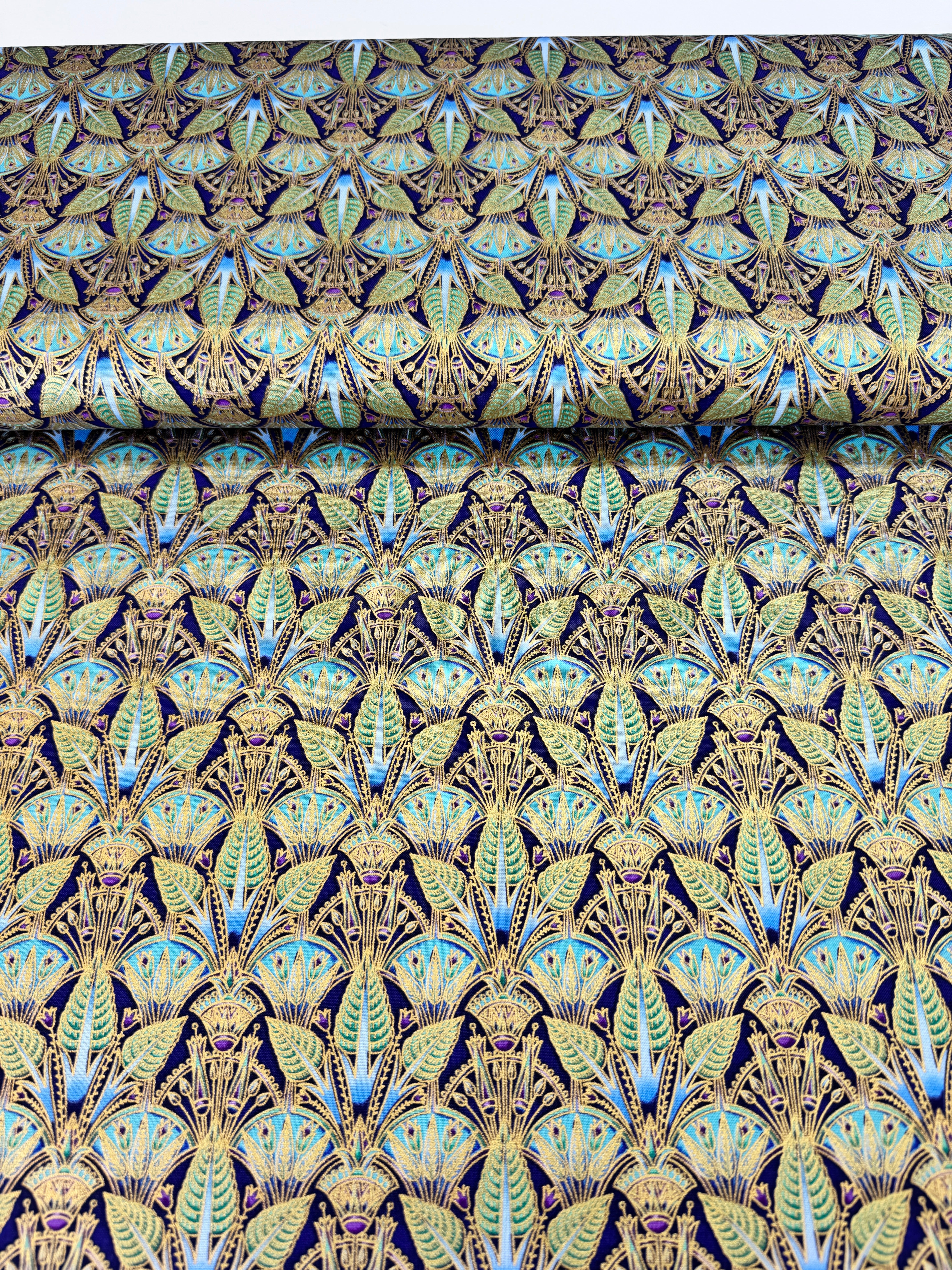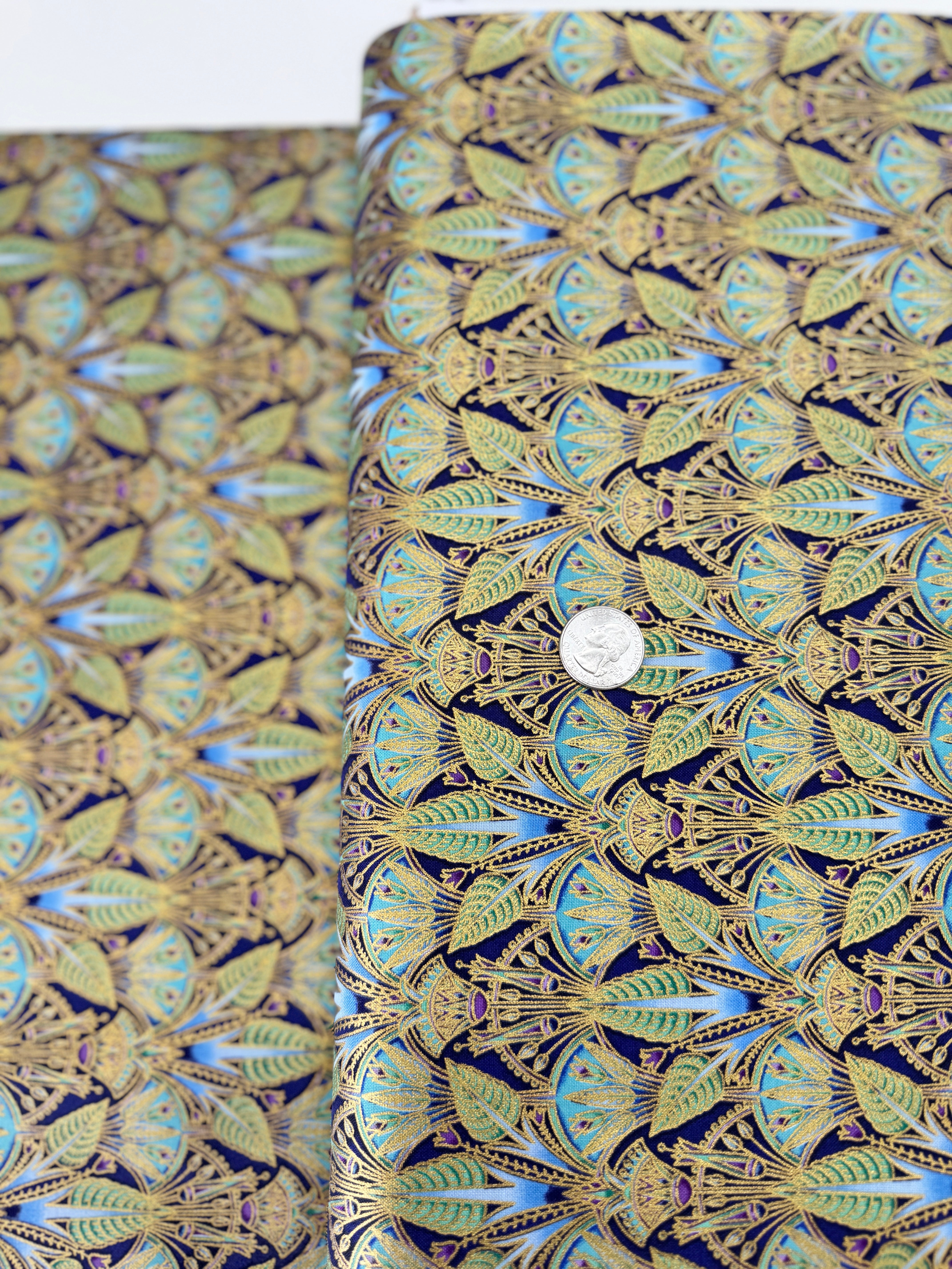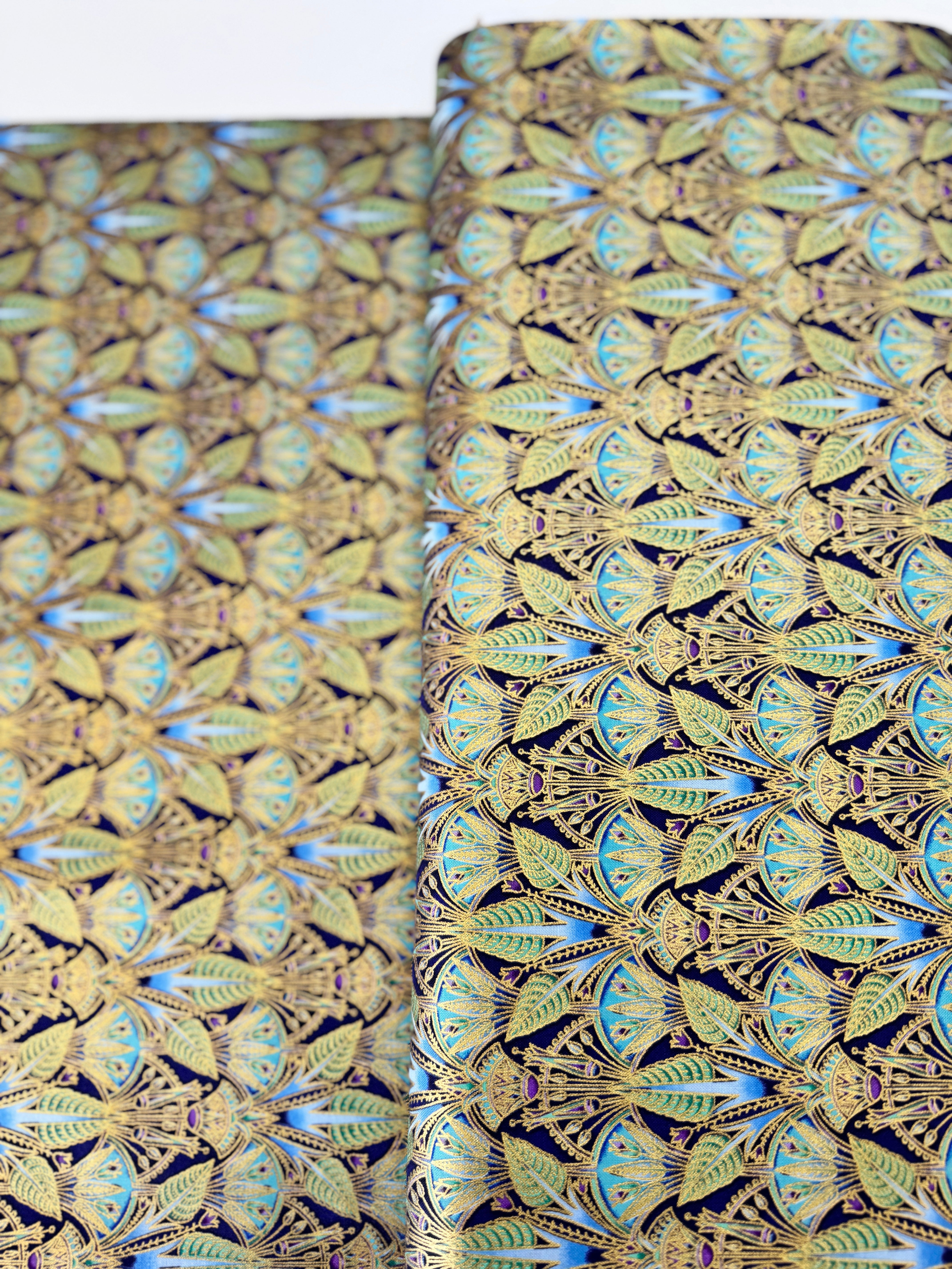 Make a bold and elegant statement with Ancient Beauty – Crown Royal Gold Metallic by Studio RK for Robert Kaufman Fabrics. Featuring ornate patterns in shimmering gold on a regal base, this 100% cotton fabric adds a touch of timeless sophistication to quilts, garments, and décor.