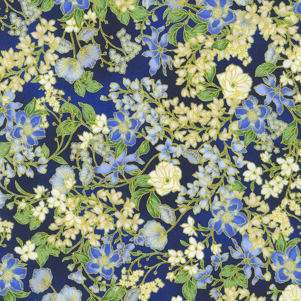 Aurelia - Small Florals Blueberry Gold Metallic Fabric by Robert Kaufman