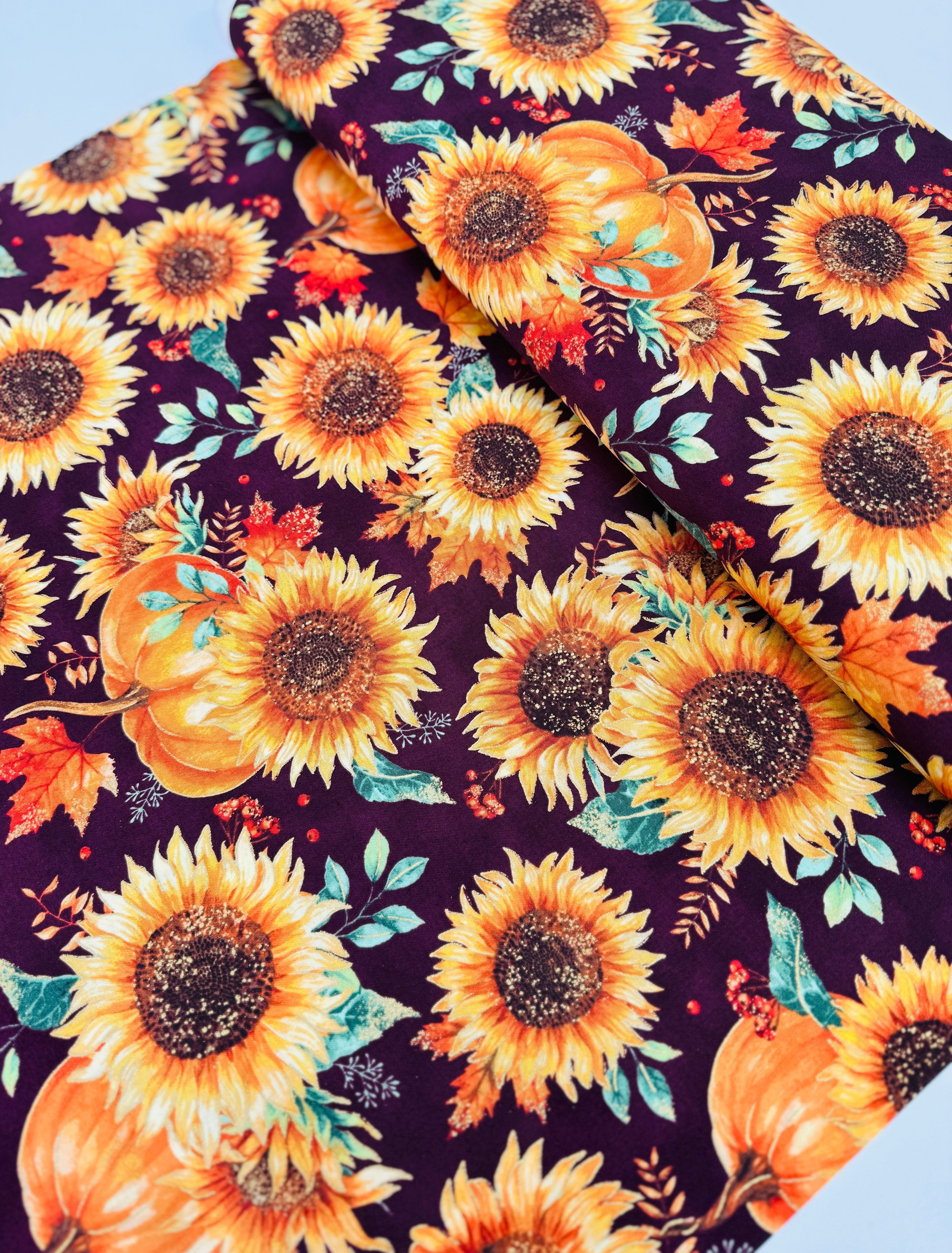 Autumn Is In The Air - Sunflowers Mulberry/Gold Metallic Yardage