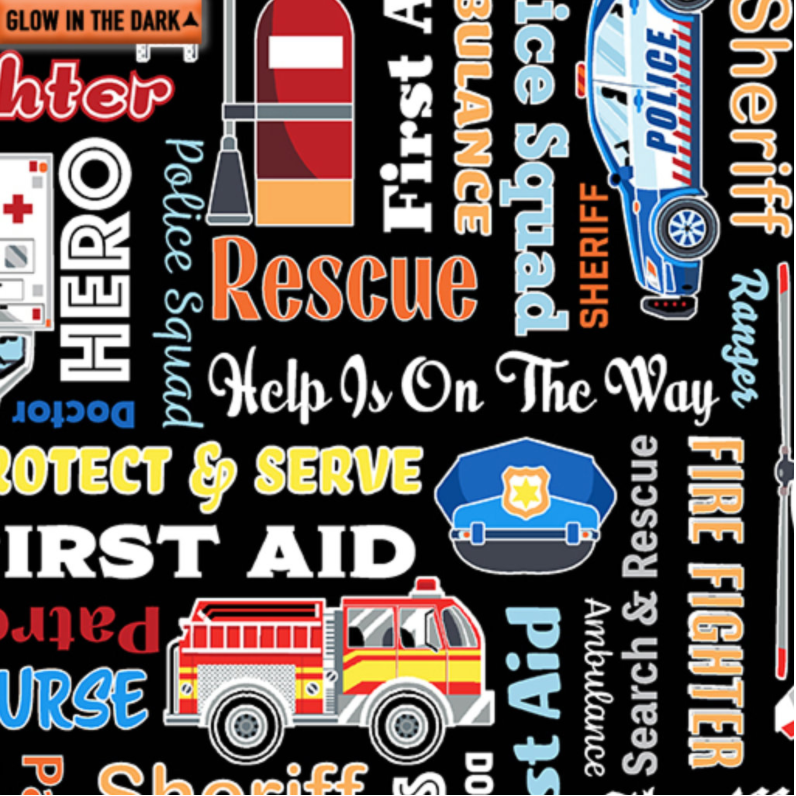 Light up your sewing projects with Save the Day - Glow in the Dark Fabric by Kanvas Studio for Benartex. This playful black cotton fabric features bright glow-in-the-dark words perfect for kids’ quilts, costumes, bags, and fun crafts.