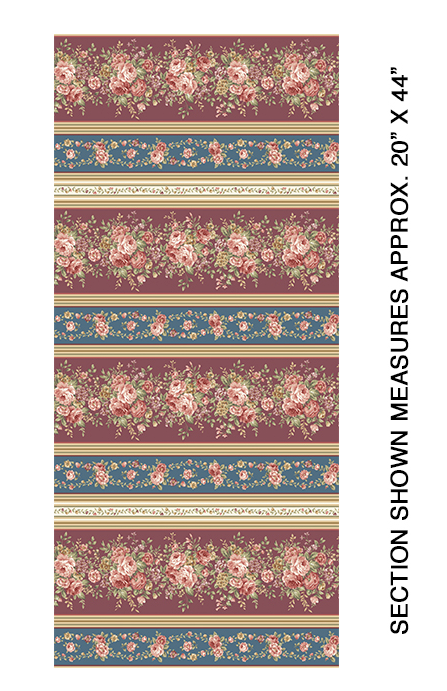 This fabric is perfect for your next project! The border stripe in burgundy will add some pop to any room. Made from 100% cotton, it's sure to be a favorite.