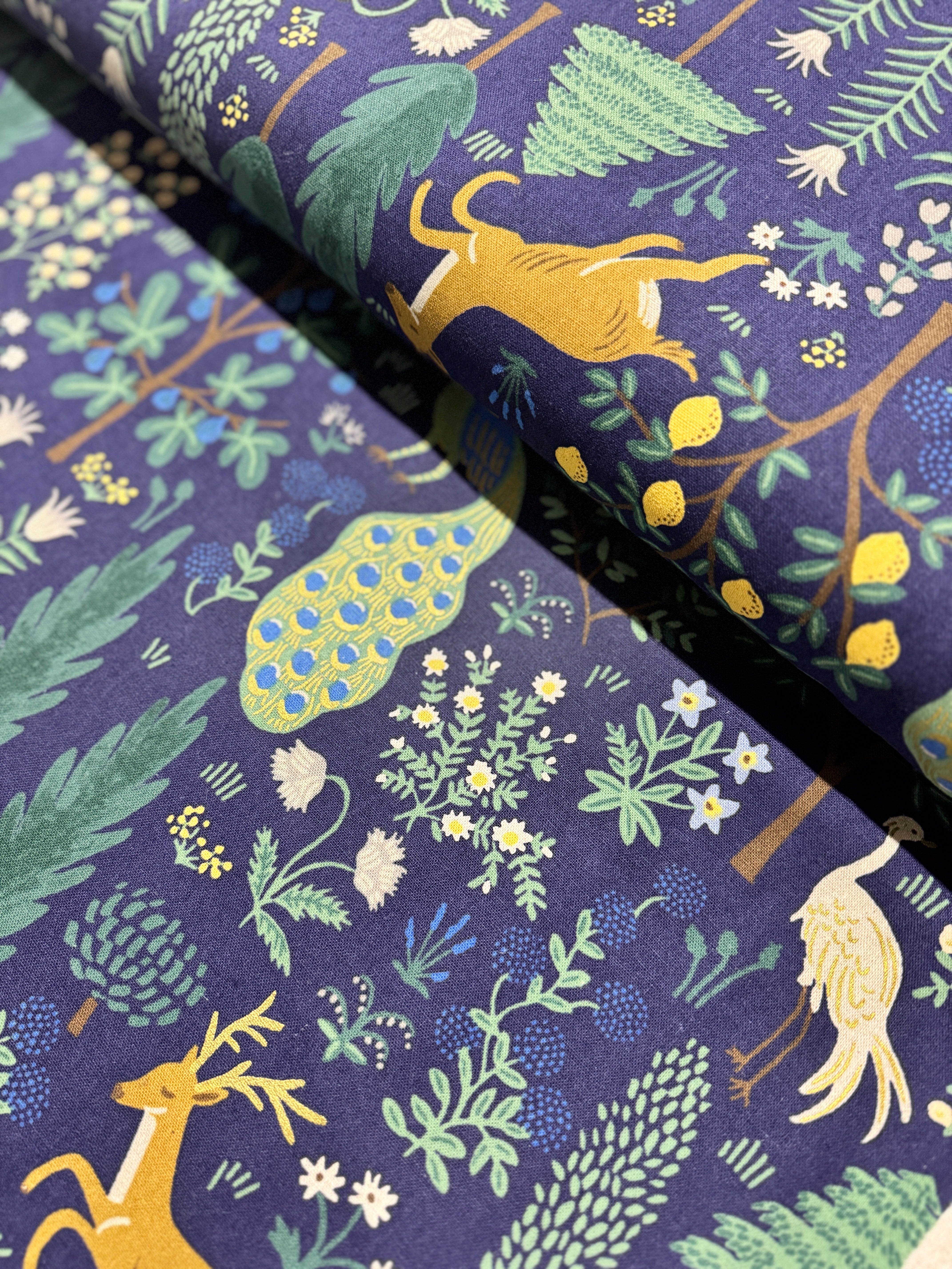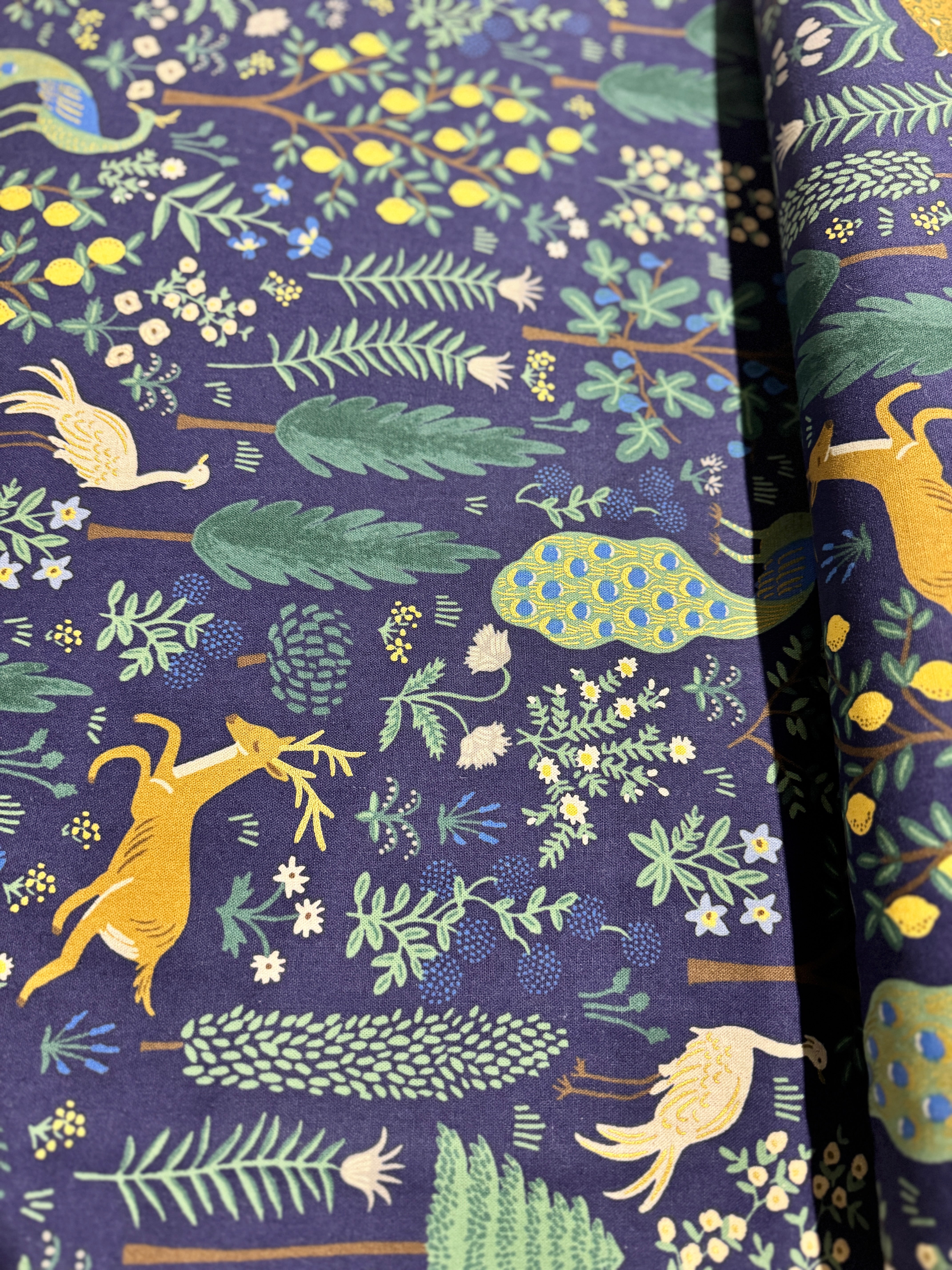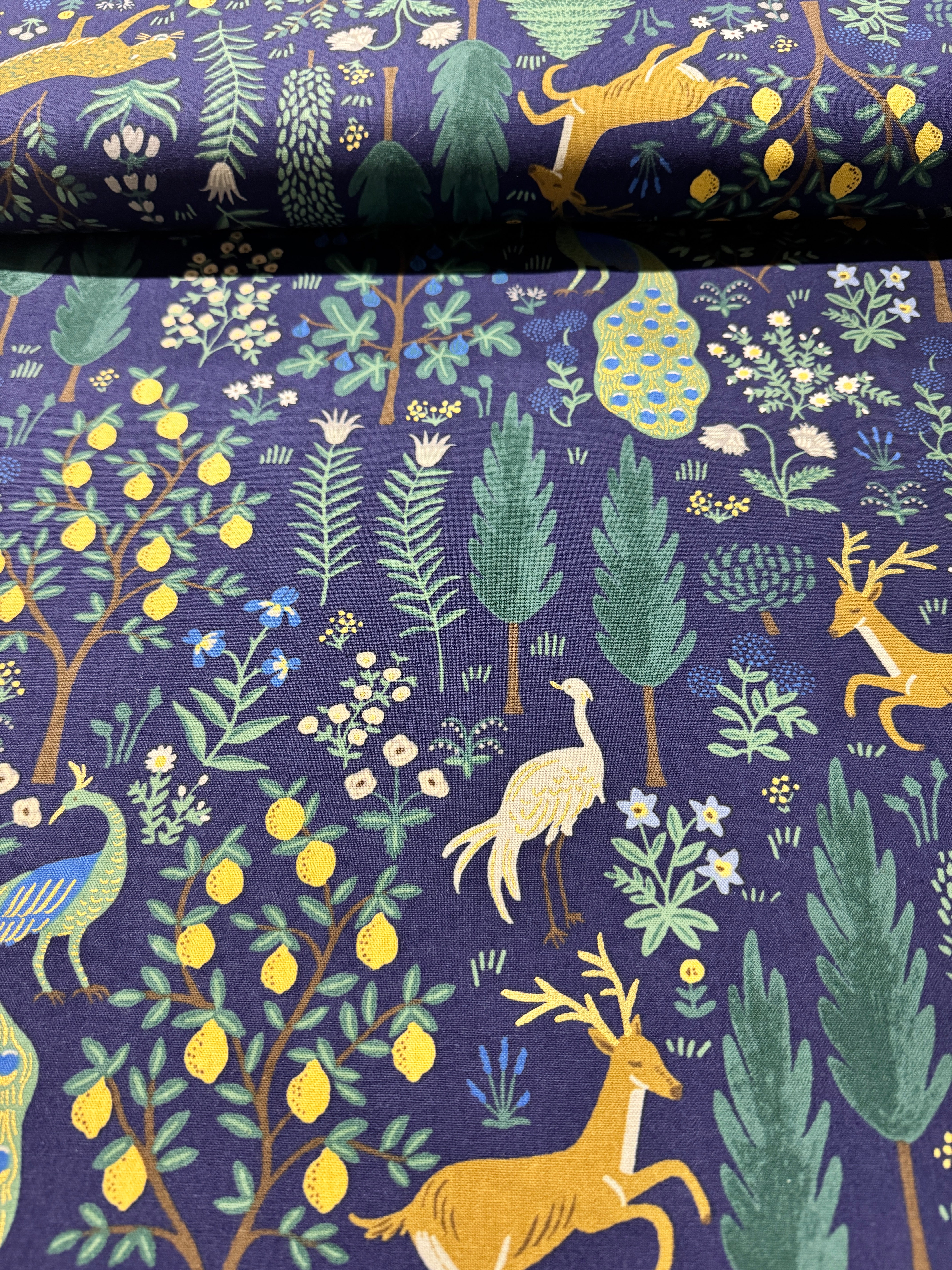 Camont - Menagerie - Navy Unbleached Canvas Metallic Fabric by Rifle Paper Co. for Cotton + Steel Fabrics
