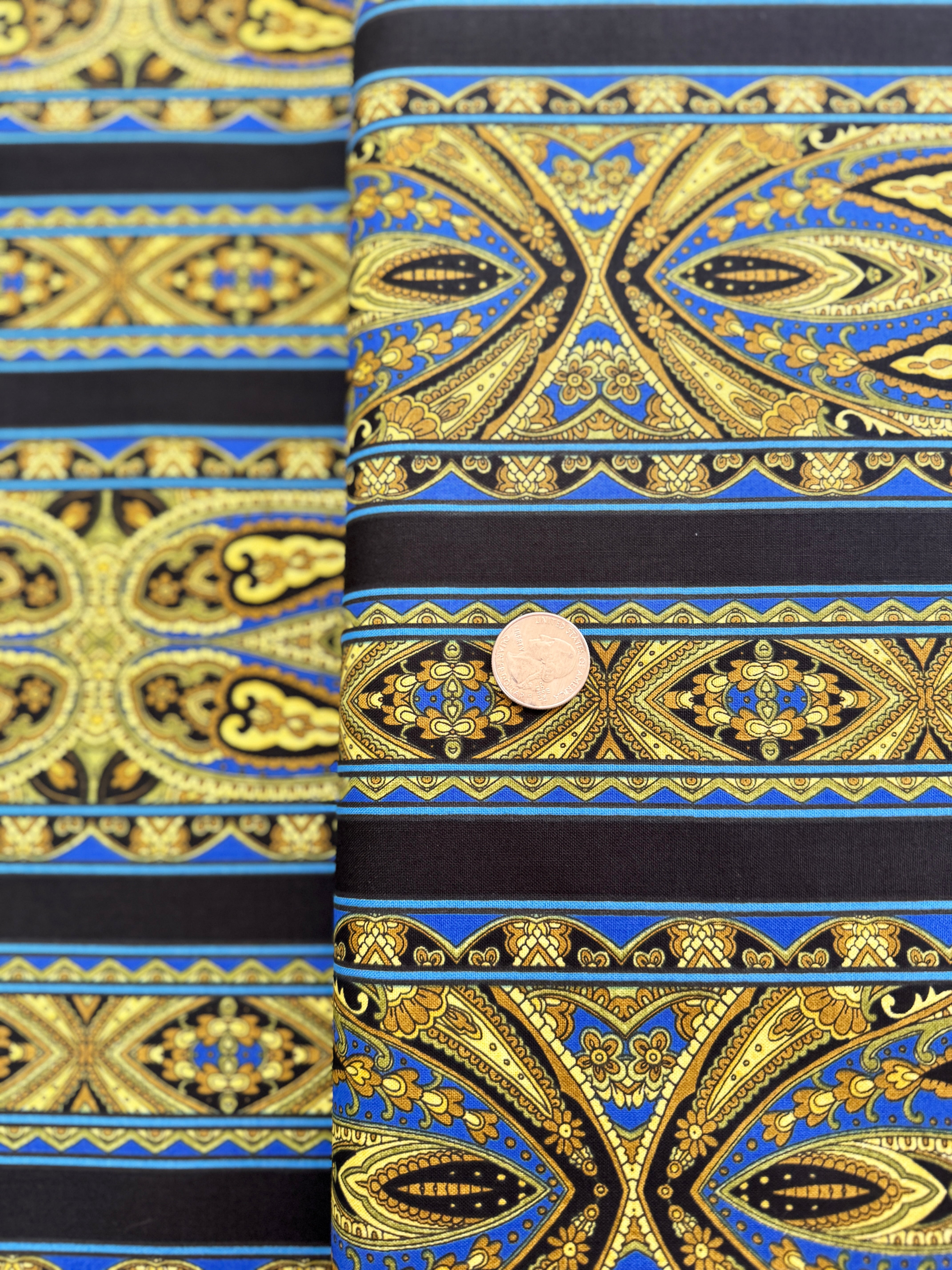 Looking for a versatile and stylish fabric? Look no further than the Casablanca Border in Royal Blue by Jinny Beyer for RJR Fabrics. This beautiful fabric features a classic border print design in a rich blue hue. It's perfect for quilting, crafting, and home décor projects. And because it's made from 100% cotton, it's also soft and comfortable to wear. So whether you're looking to add a pop of color to your next quilt or simply want a comfortable and stylish fabric to wear, the Casablanca Border in Royal Blue is a great choice. Order yours today!
