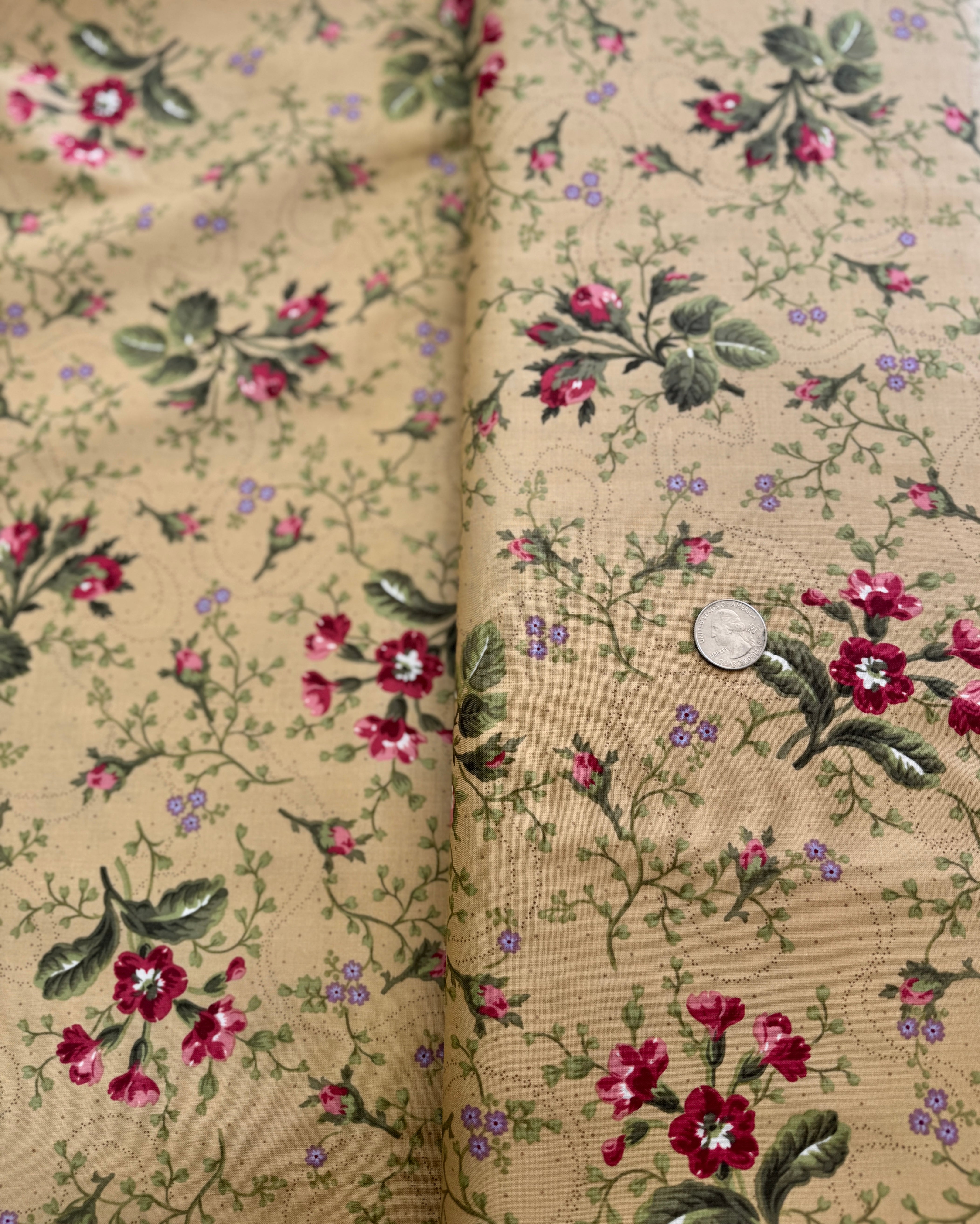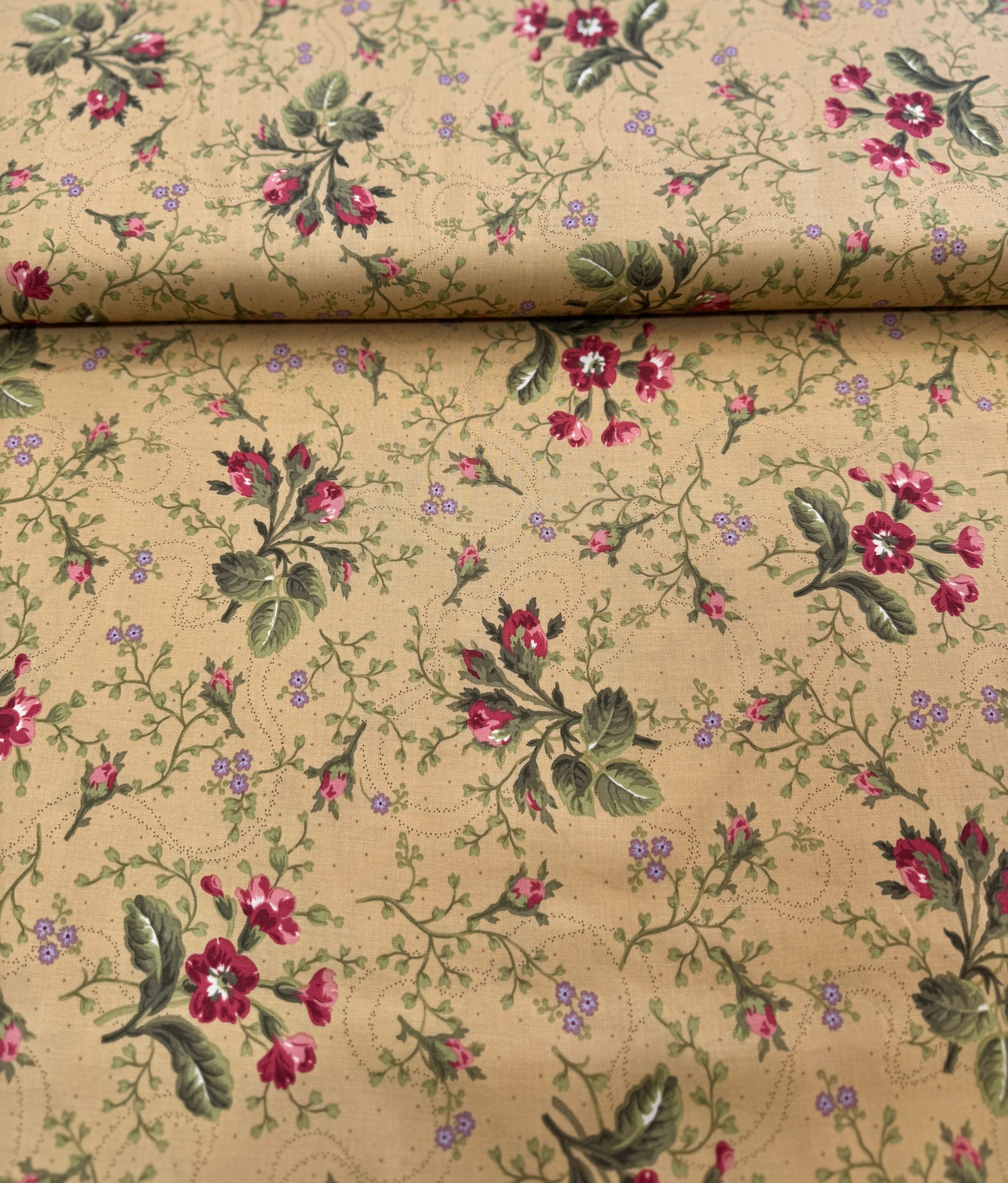 Rosehill Florals - Light Caramel Fabric by Skipping Stone Studio for Clothworks