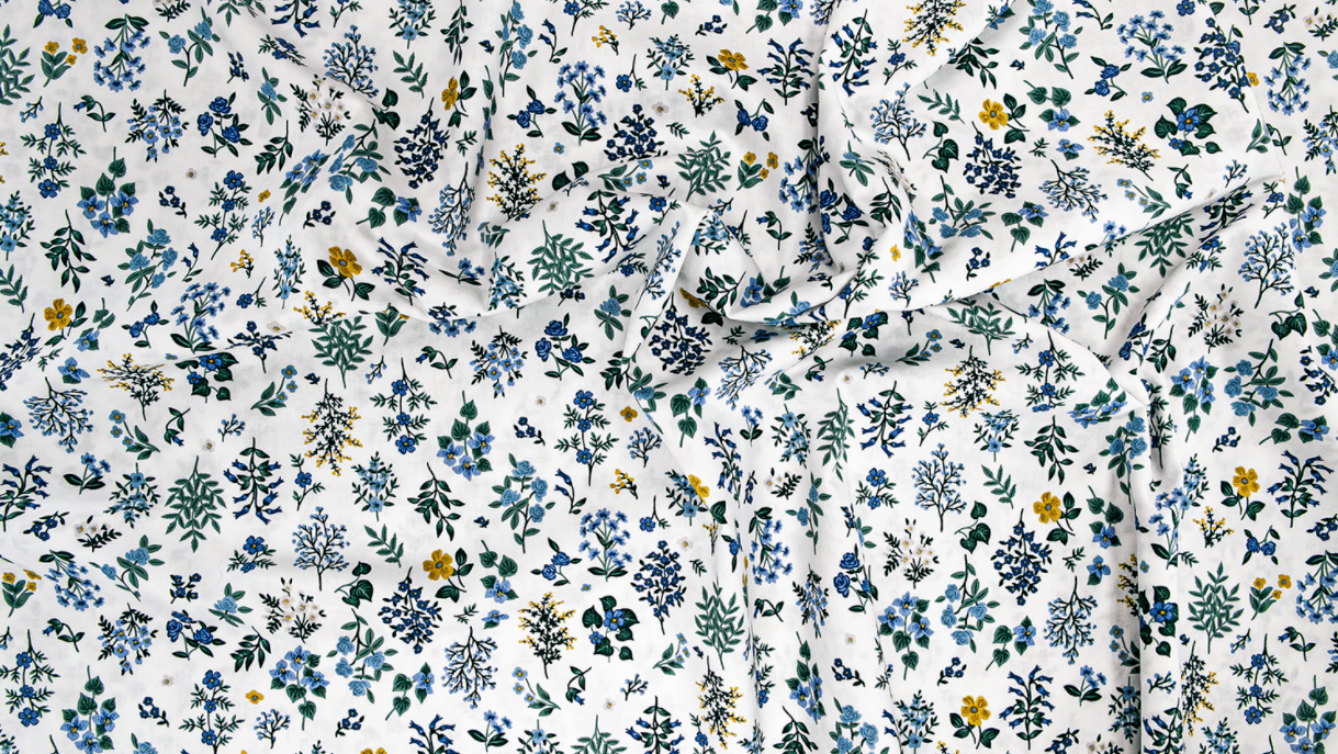 Looking for a fabric that's both sweet and sophisticated? Look no further than the Strawberry Fields collection by Cotton + Steel! This lovely line features delicate florals and fruit prints in a beautiful blue palette, perfect for a summery quilt or dress. The Hawthorne Periwinkle fabric features scattered strawberries on a periwinkle background, adding a touch of whimsy to any project. So grab a Fat Quarter (or two) of this fabric and get stitching!
