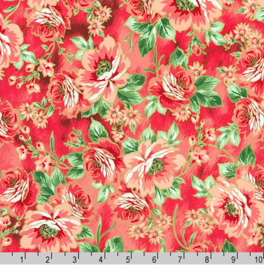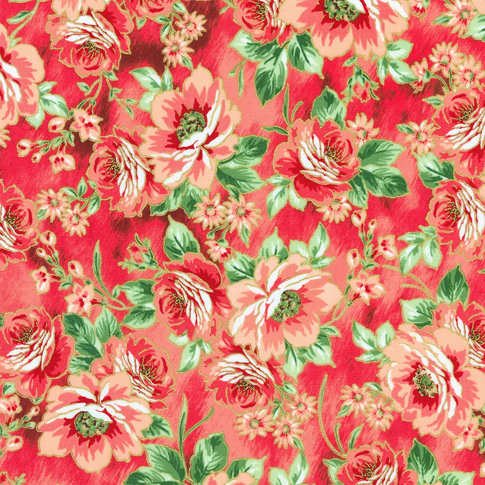 Decadent Garden - Florals Coral Metallic Fabric by Studio RK for Robert Kaufman