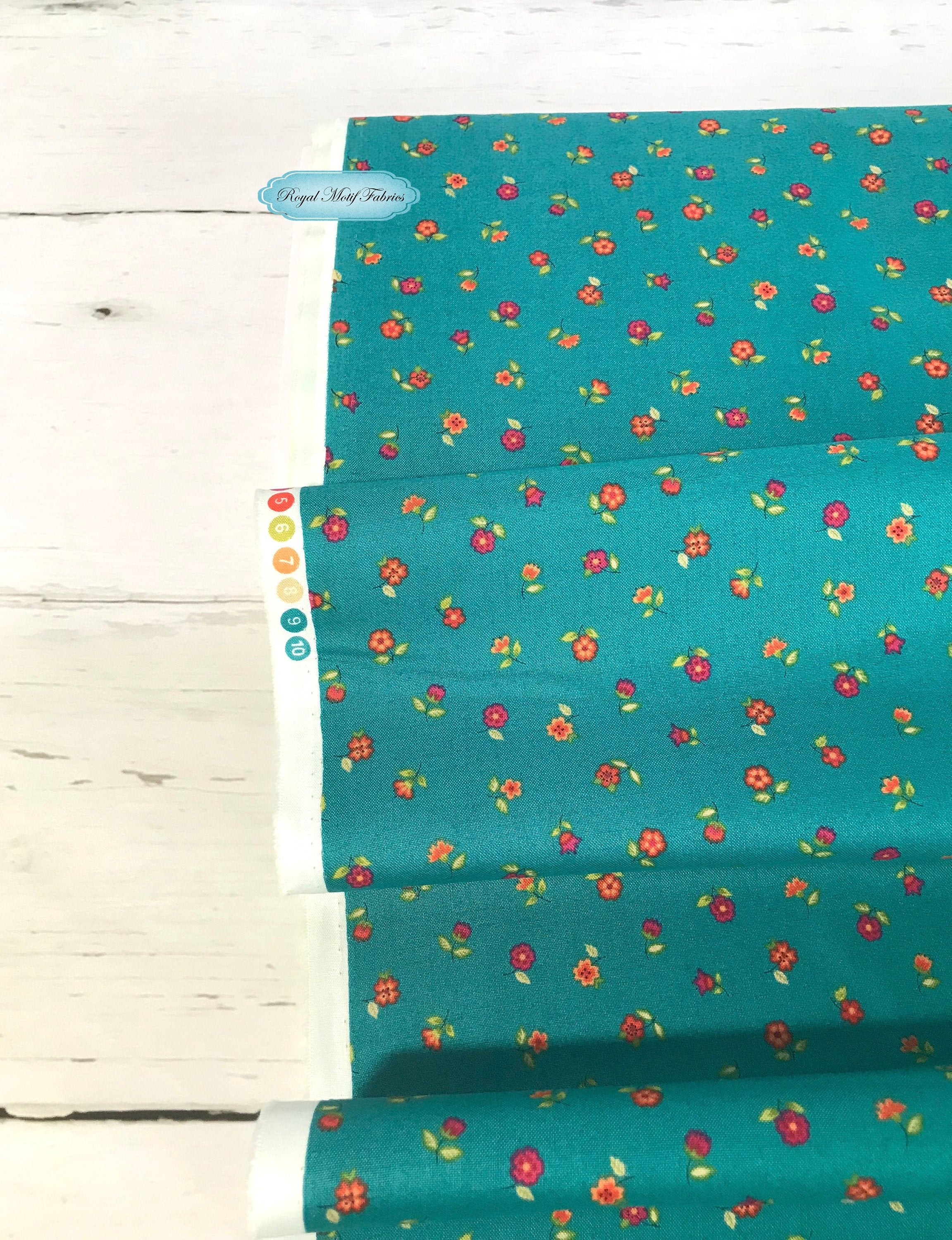 Bloom - Autumn - Floral Scatter Teal by Makower UK for Andover Fabrics