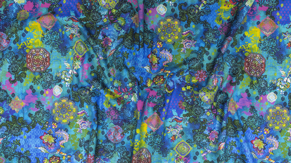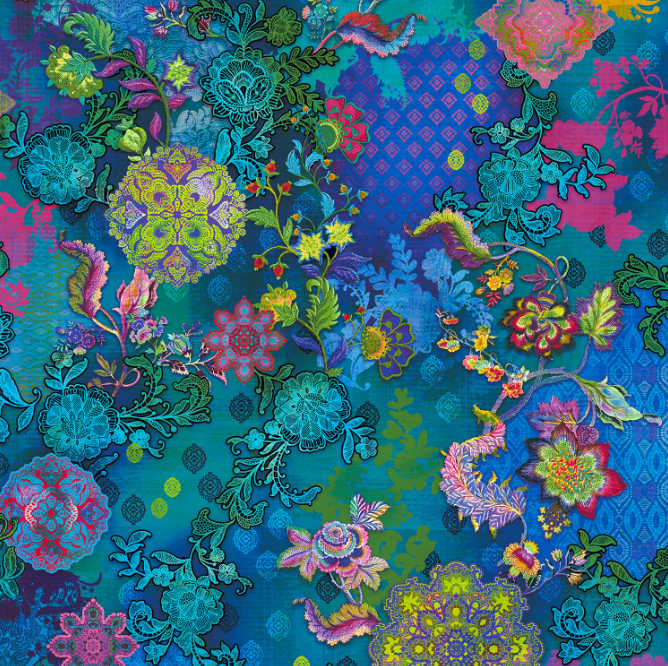 Flourish - Treasured Trinkets - Deep Turquoise Digitally Printed Fabric by RJR Studio