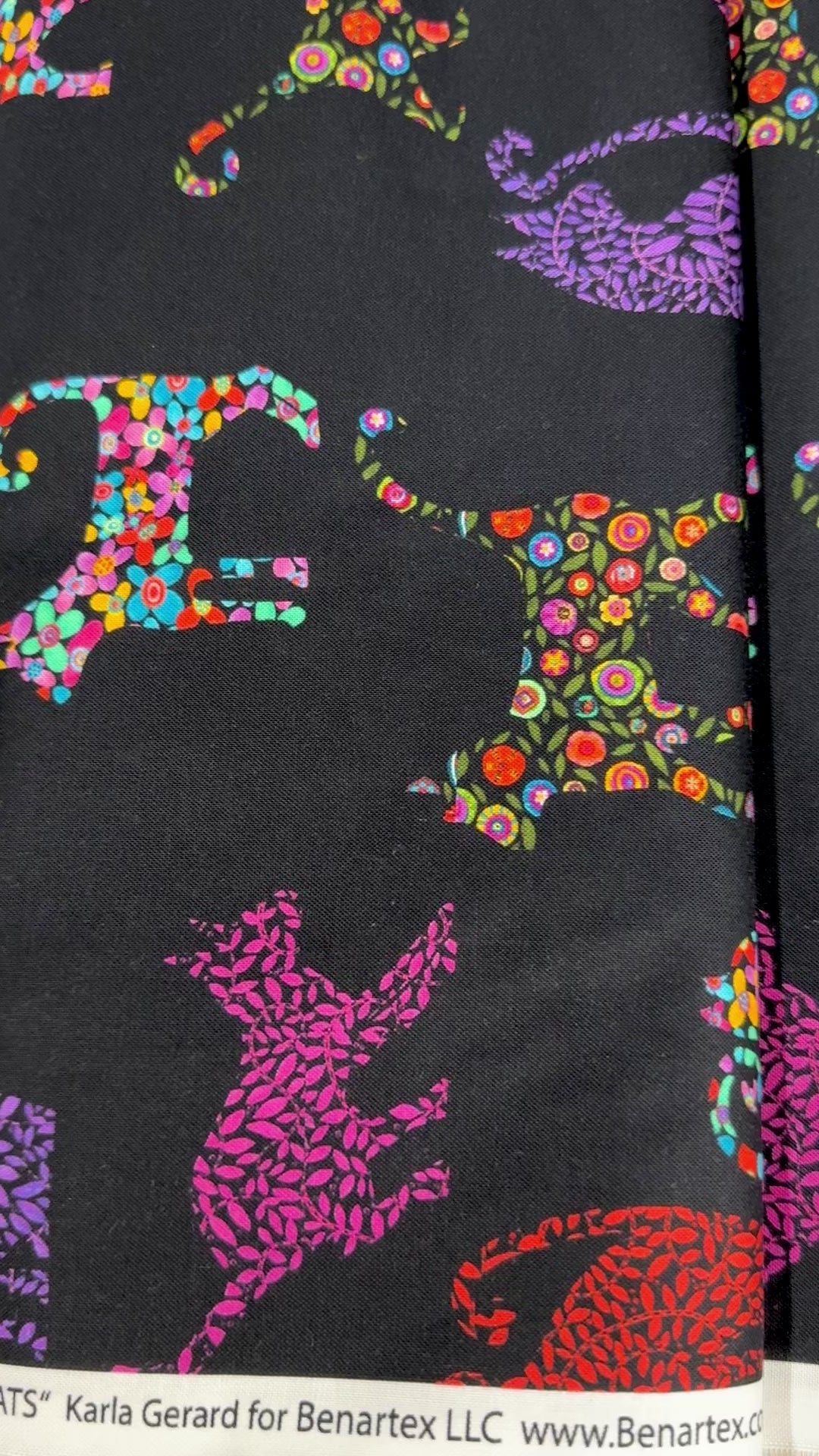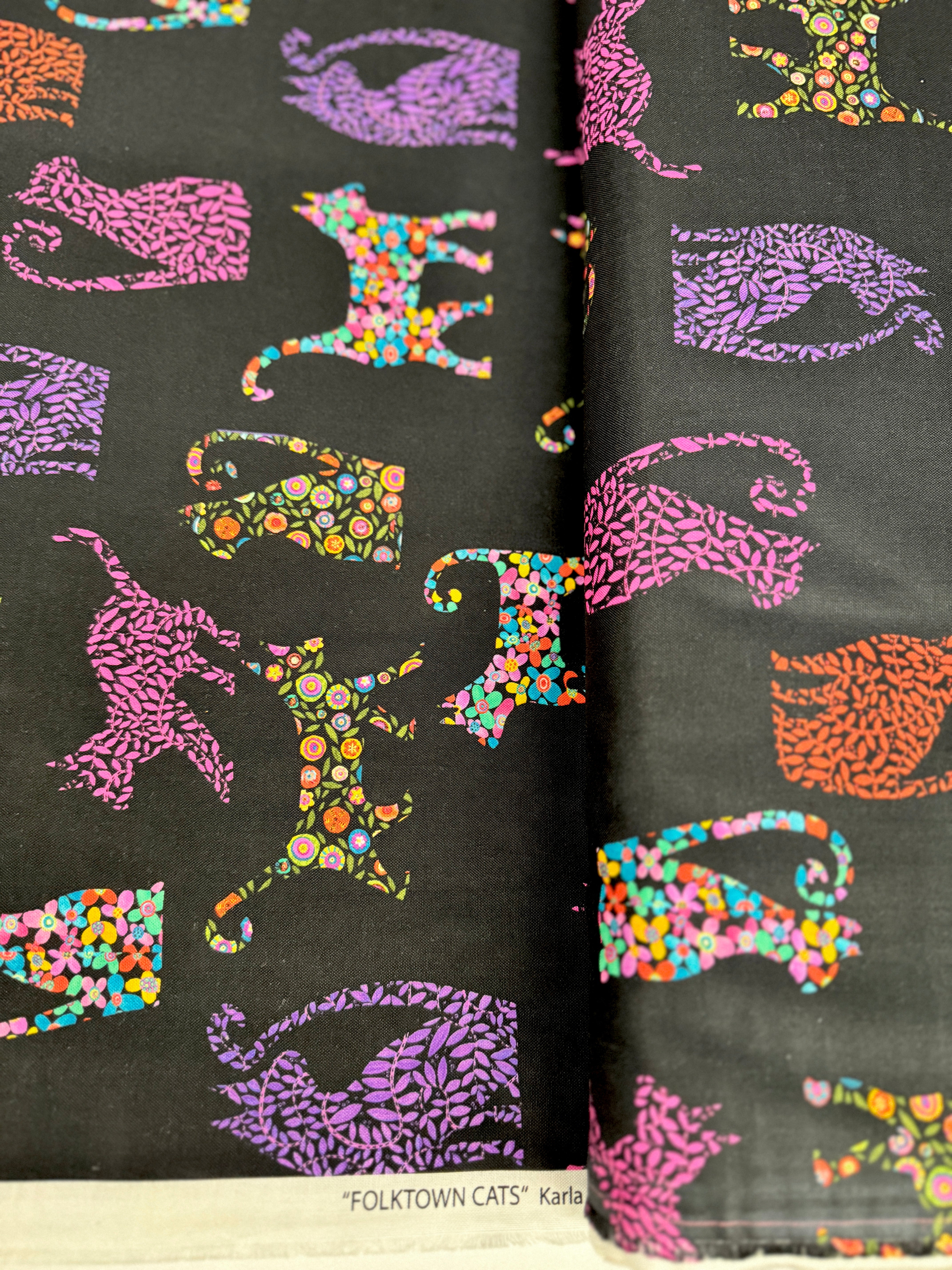 Folktown Cats - Folktown Patterned Cats Black Fabric by Karla Gerard for Benartex