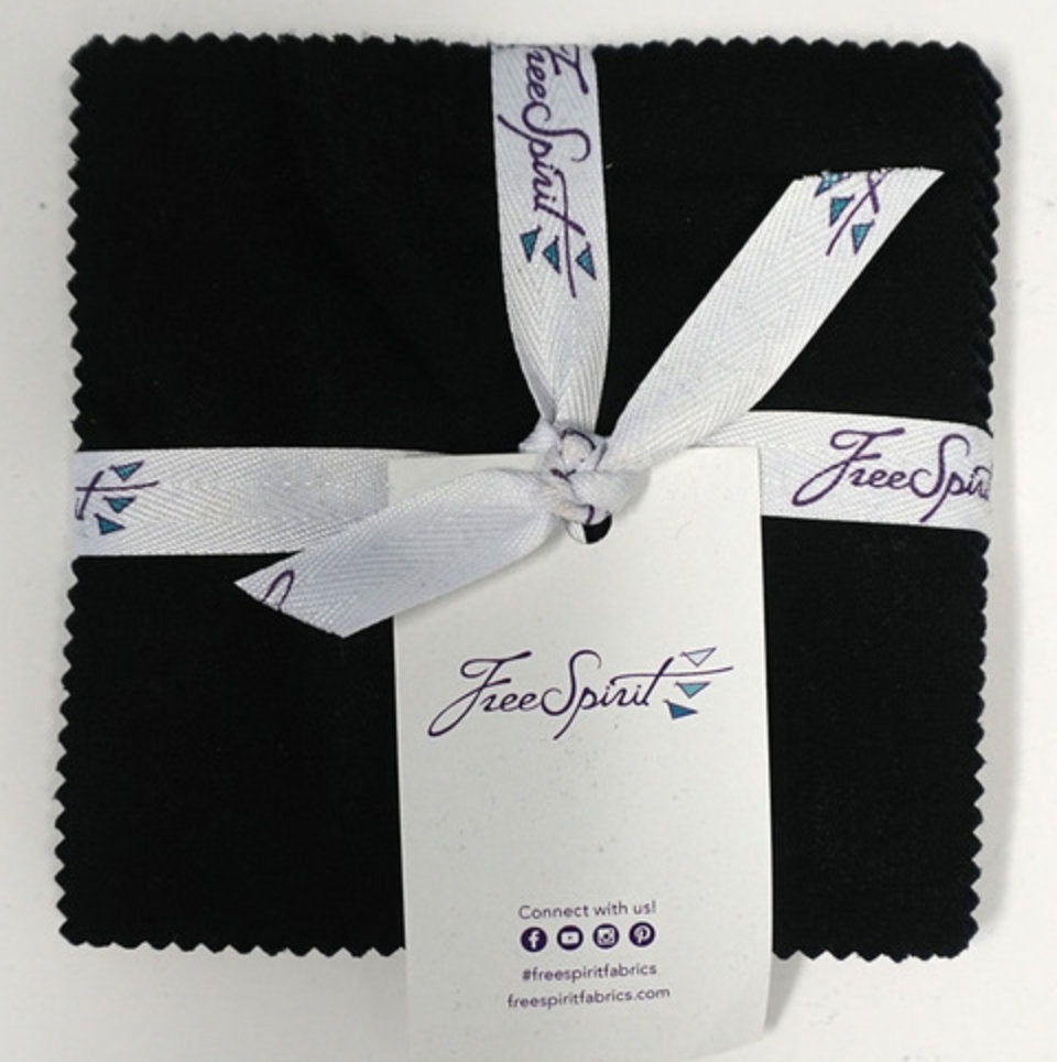 Designer Essentials Solids Black - 5" Charm Pack by Free Spirit Fabrics