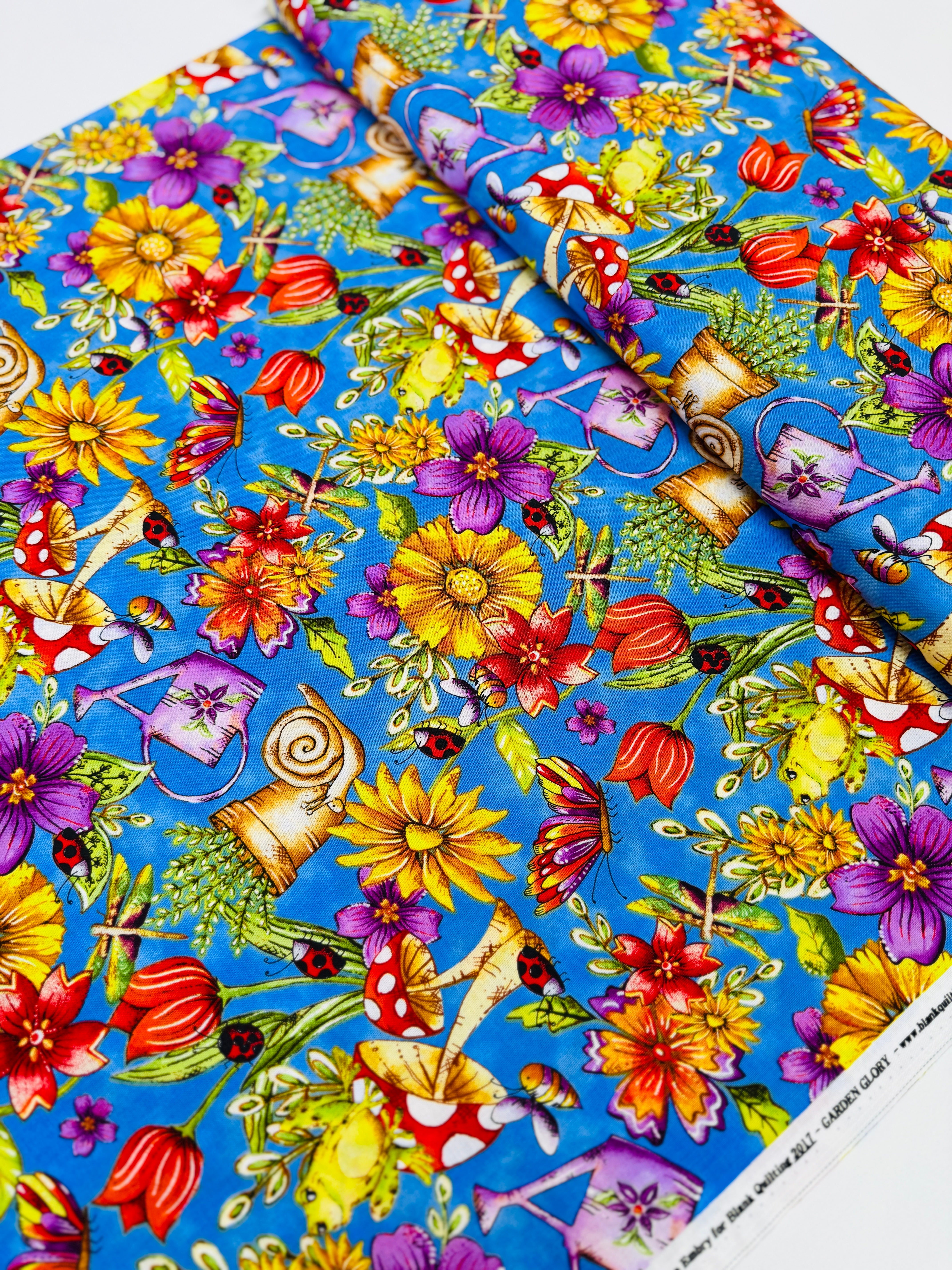 Add vibrant garden beauty to your sewing with Garden Glory - Garden Allover Blue Fabric by Karen Embry for Blank Quilting. Featuring colorful florals and greenery against a bold blue background, this fabric is ideal for quilts, spring sewing, cheerful table runners, home décor accents, and more.