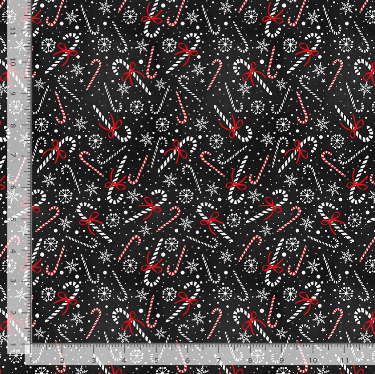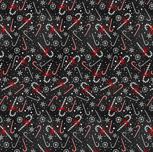 Gnome For The Holidays - Christmas Candy Cane and Snowflakes Yardage