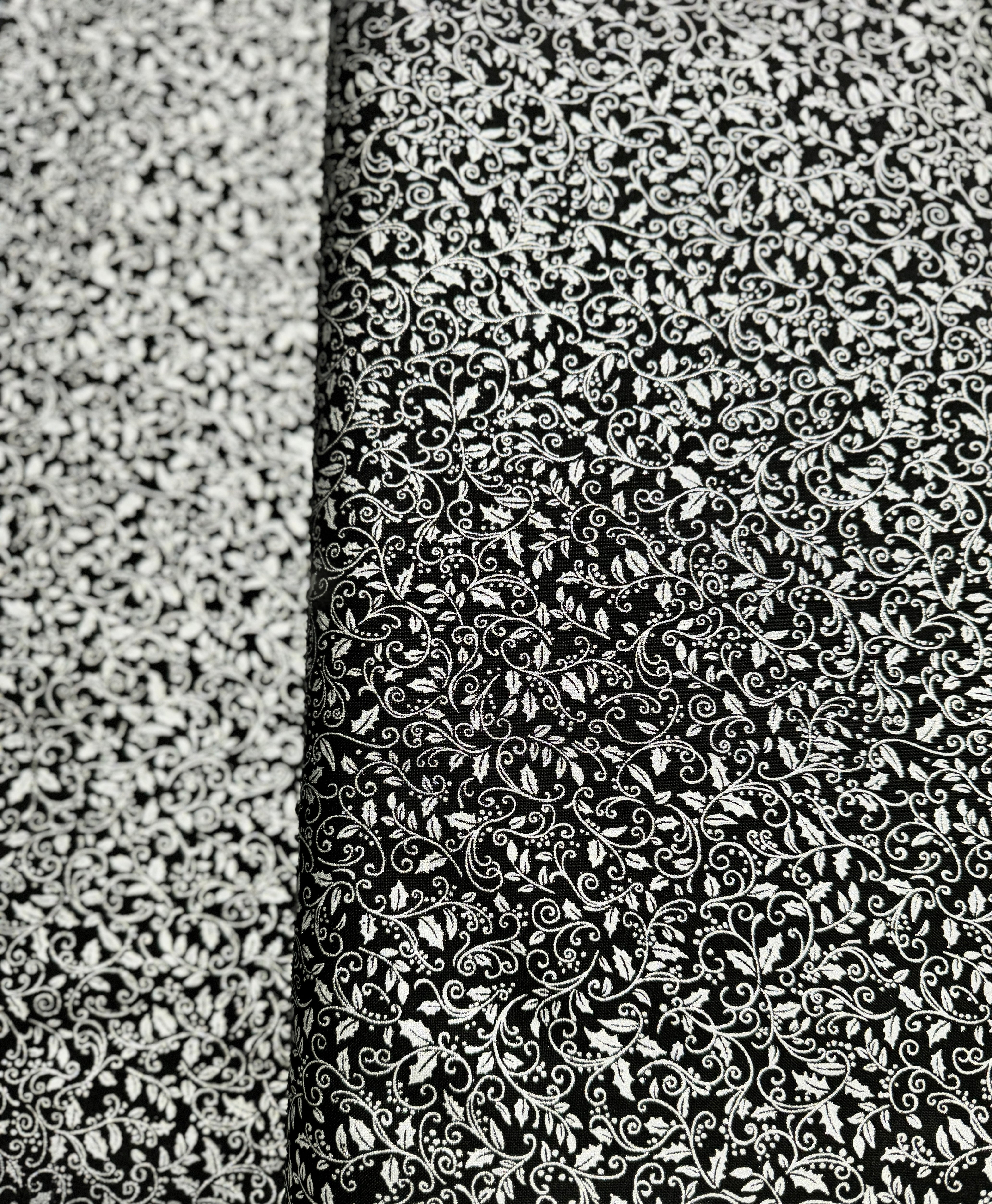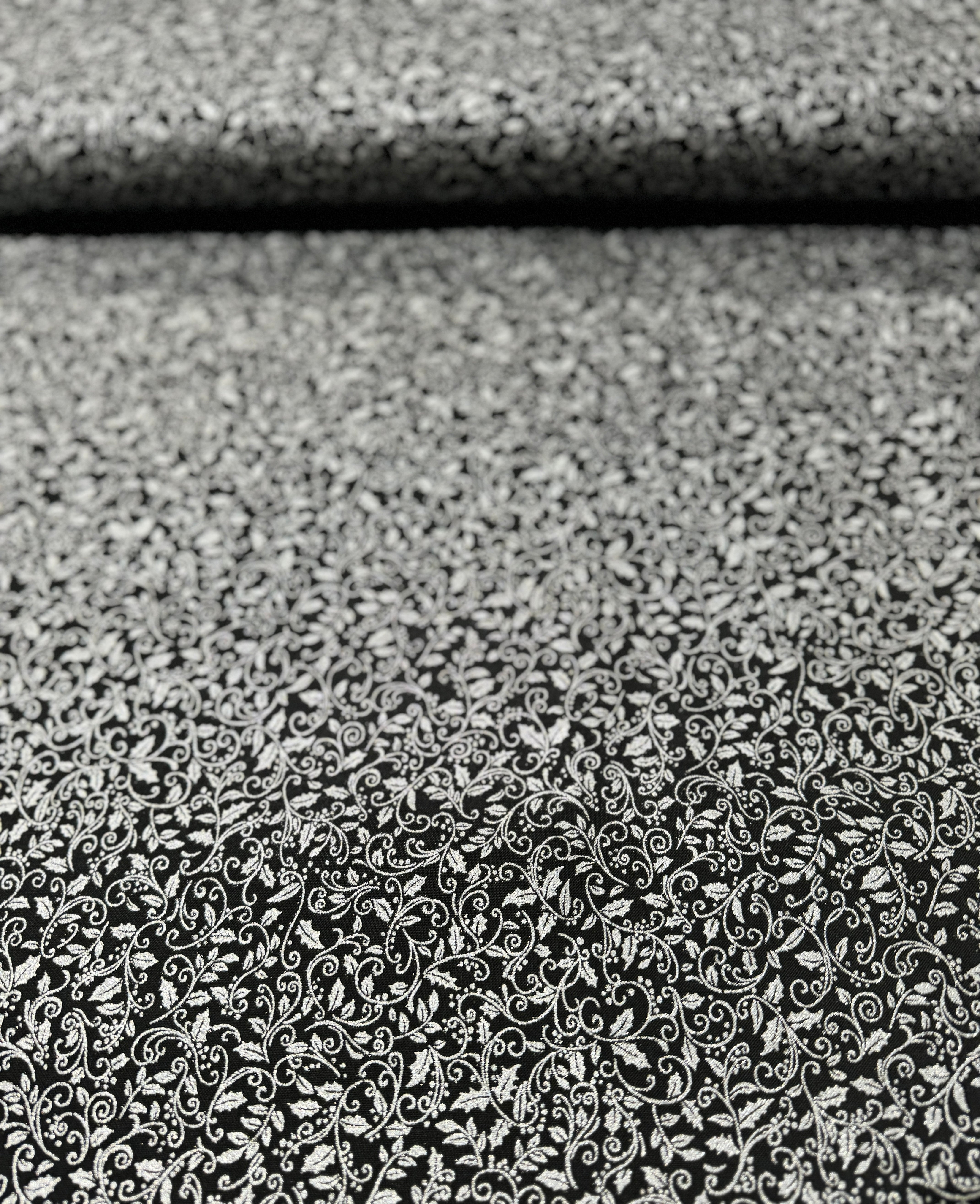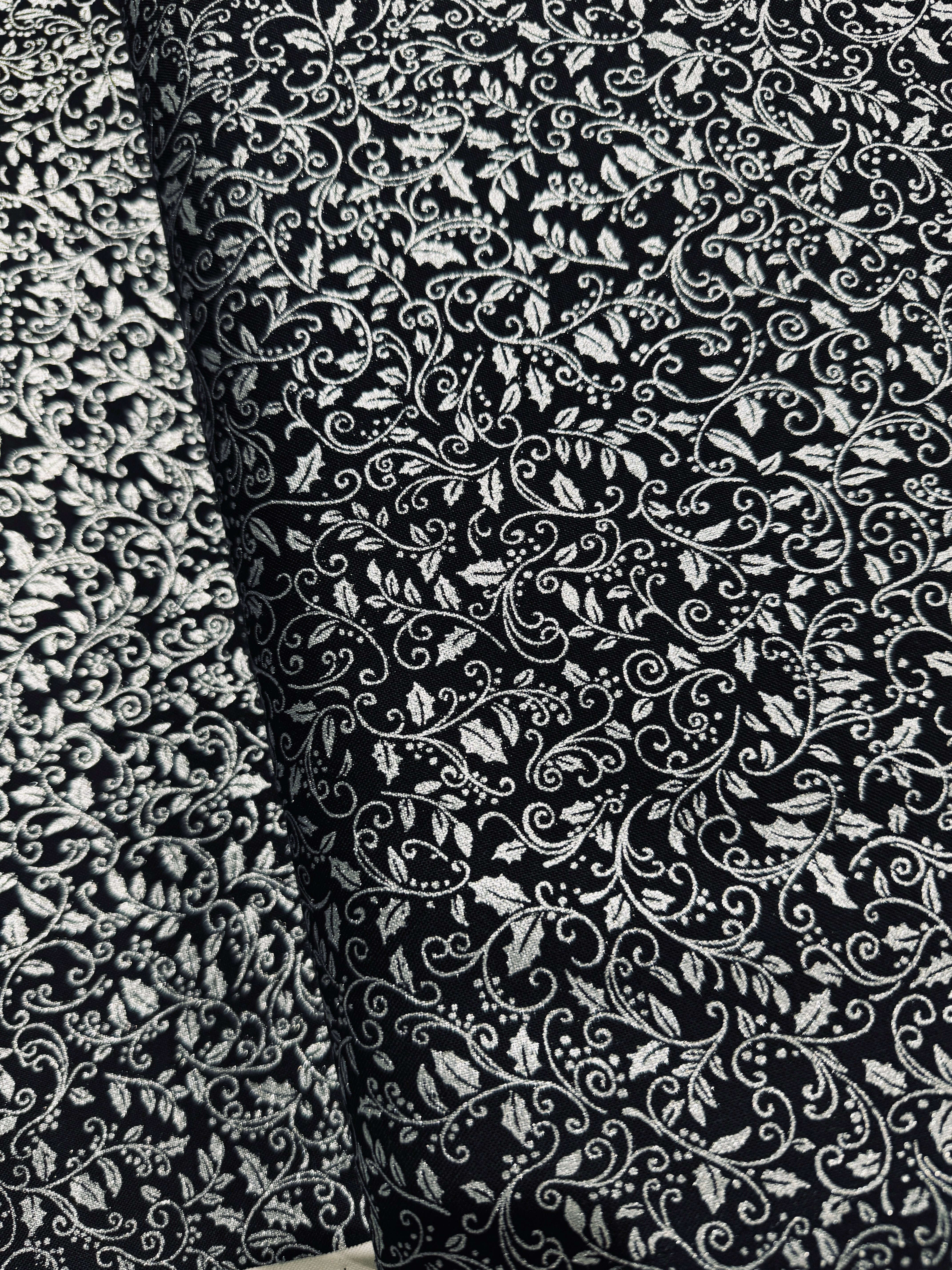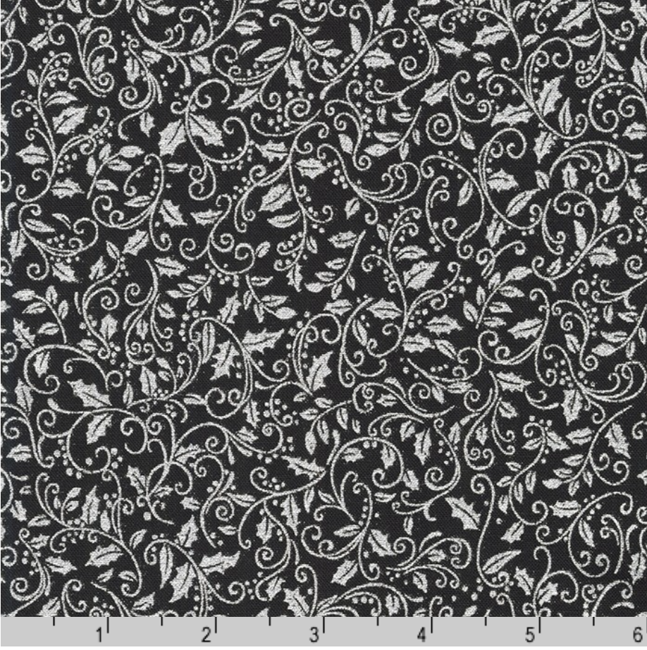 Holiday Charms - Holly Onyx Silver Metallic Yardage