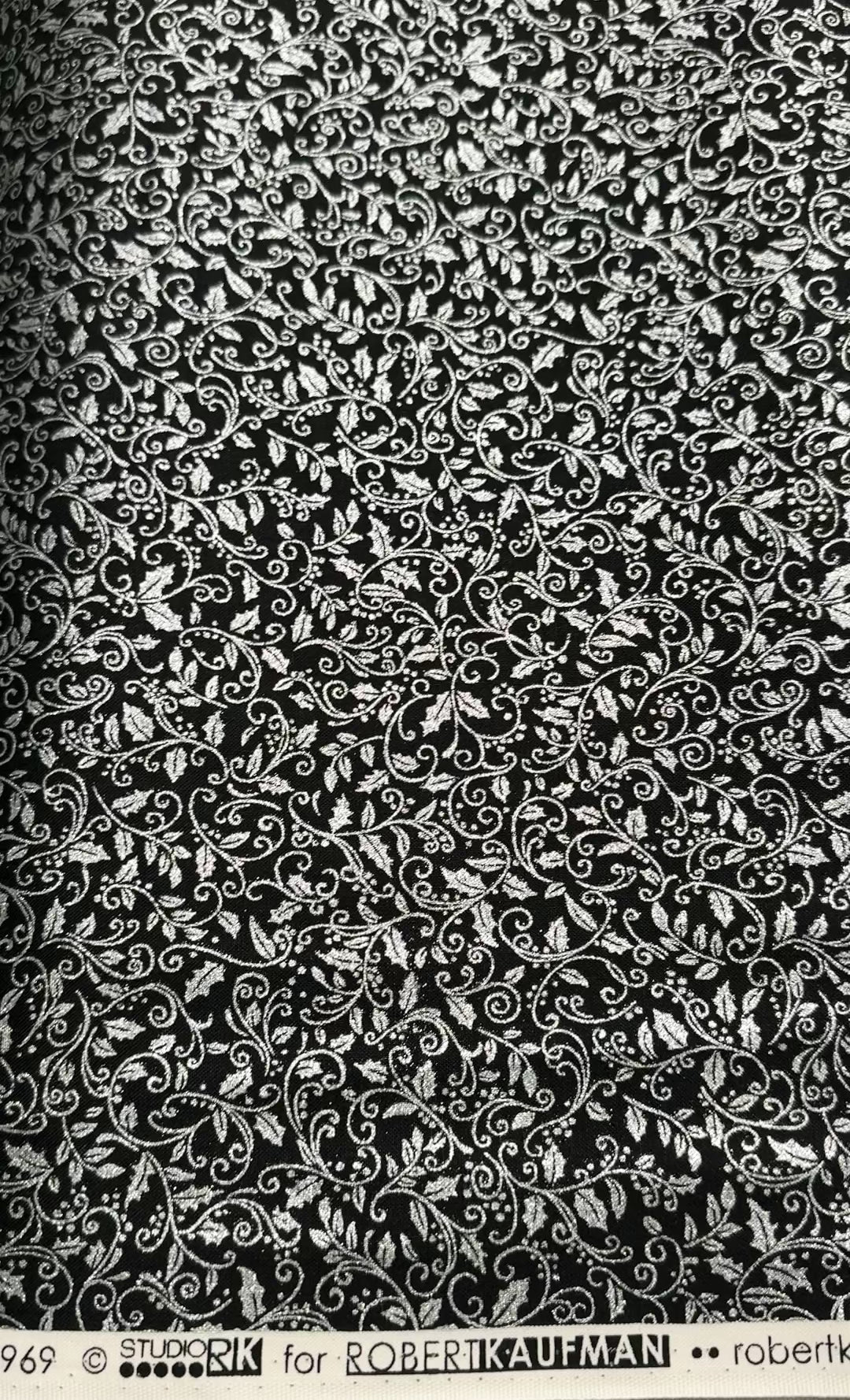 Holiday Charms - Holly Onyx Silver Metallic Fabric by Studio RK for Robert Kaufman