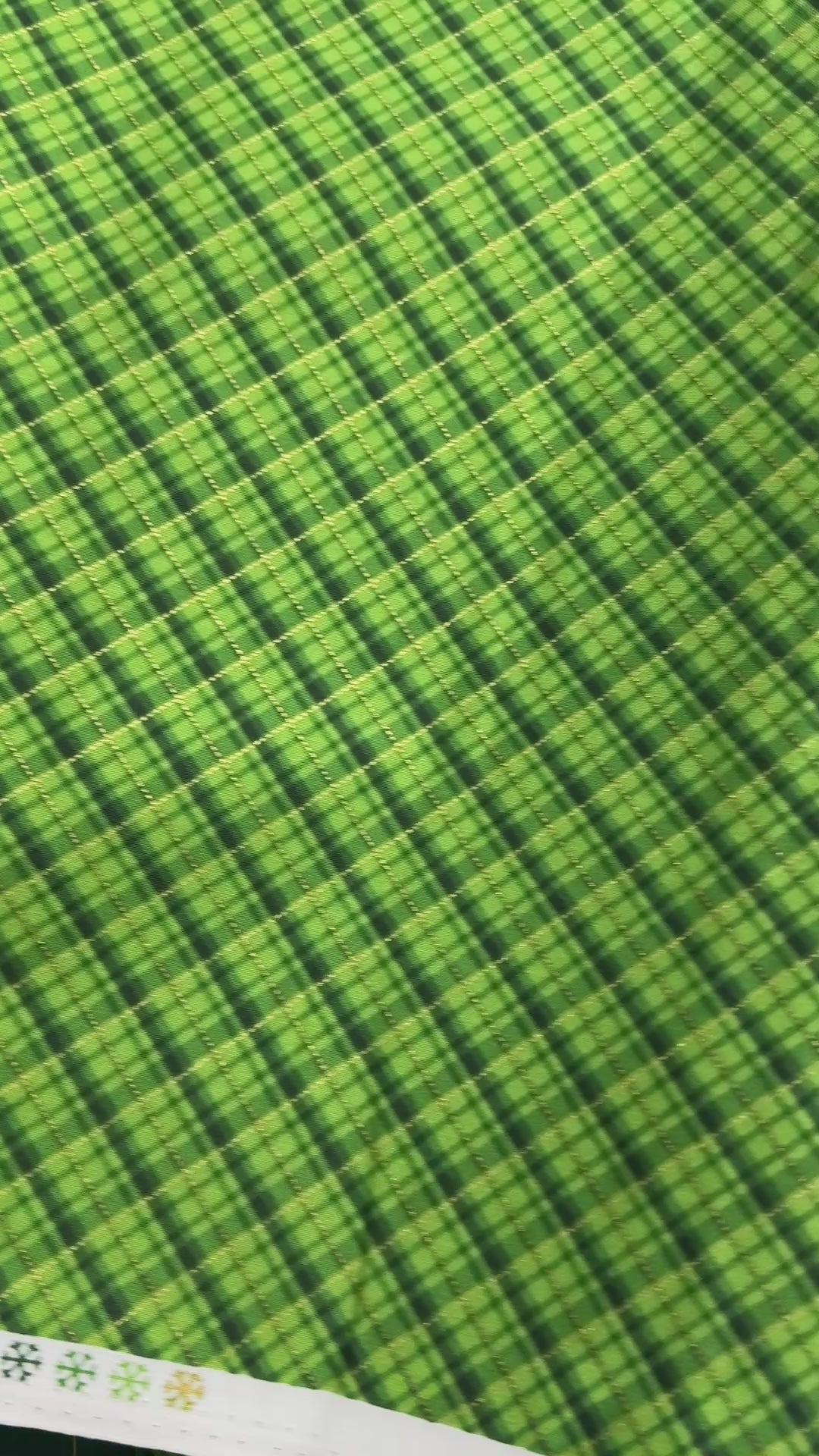 Holiday Charms - Plaid Green Gold Metallic Yardage