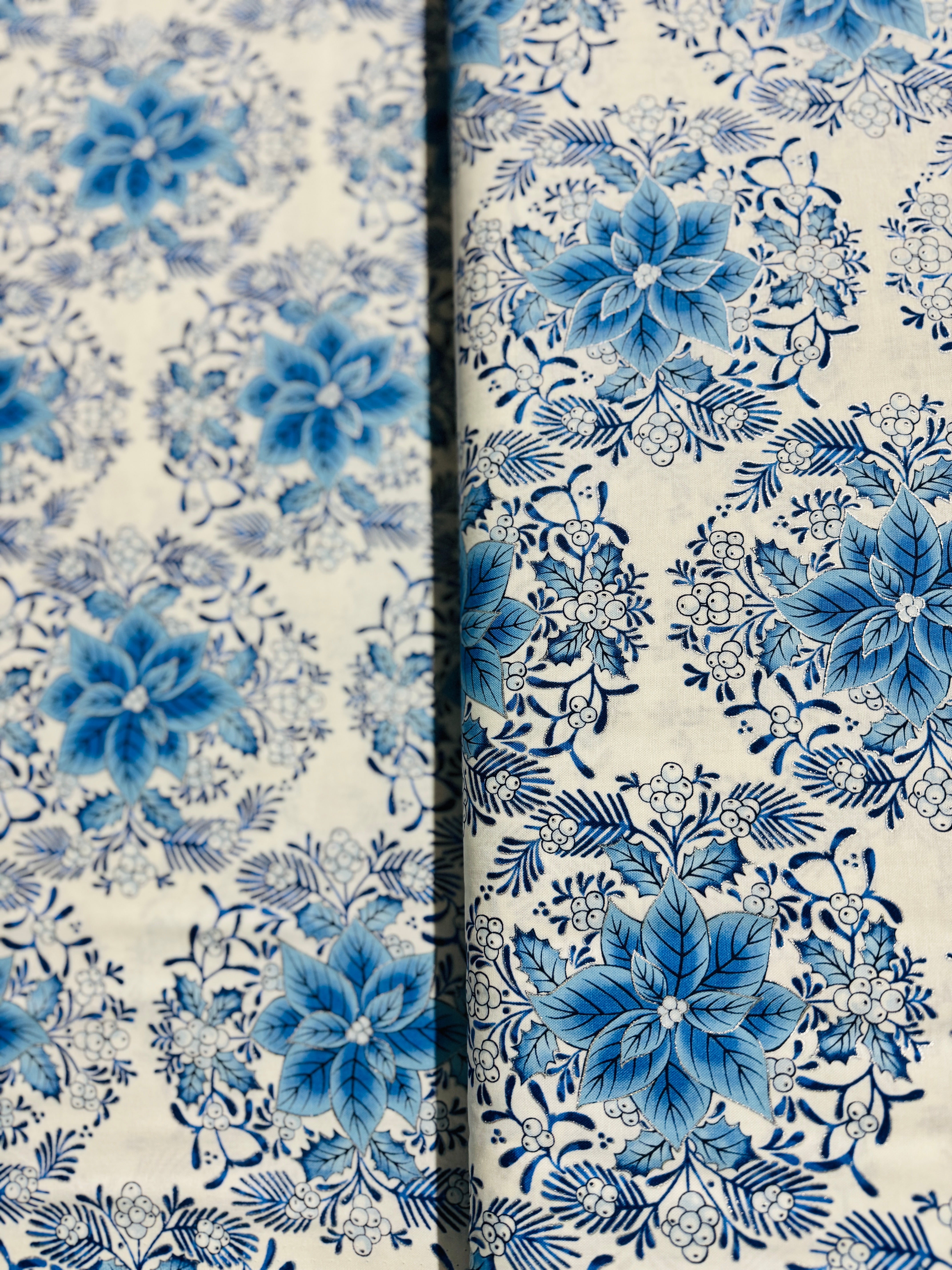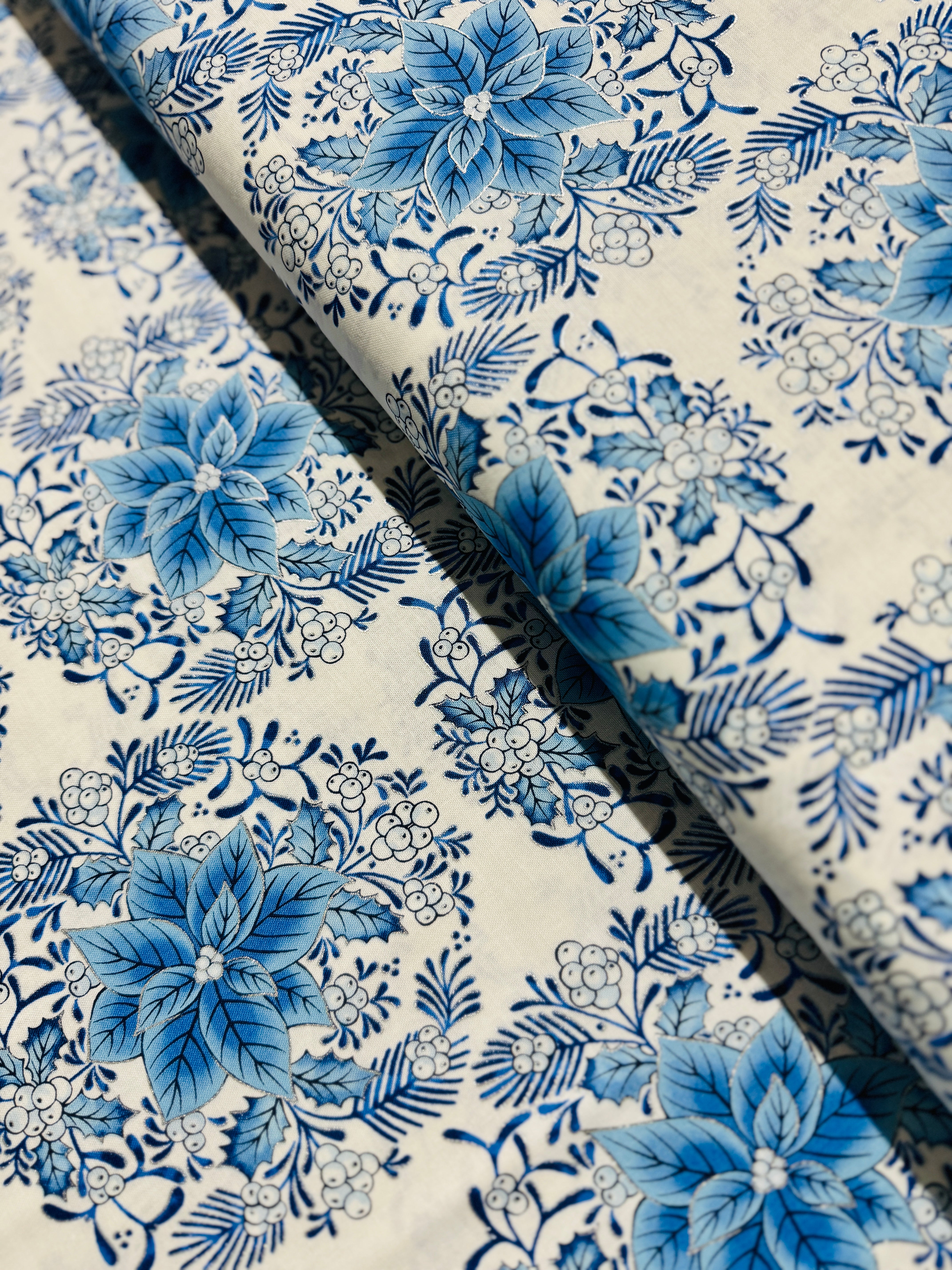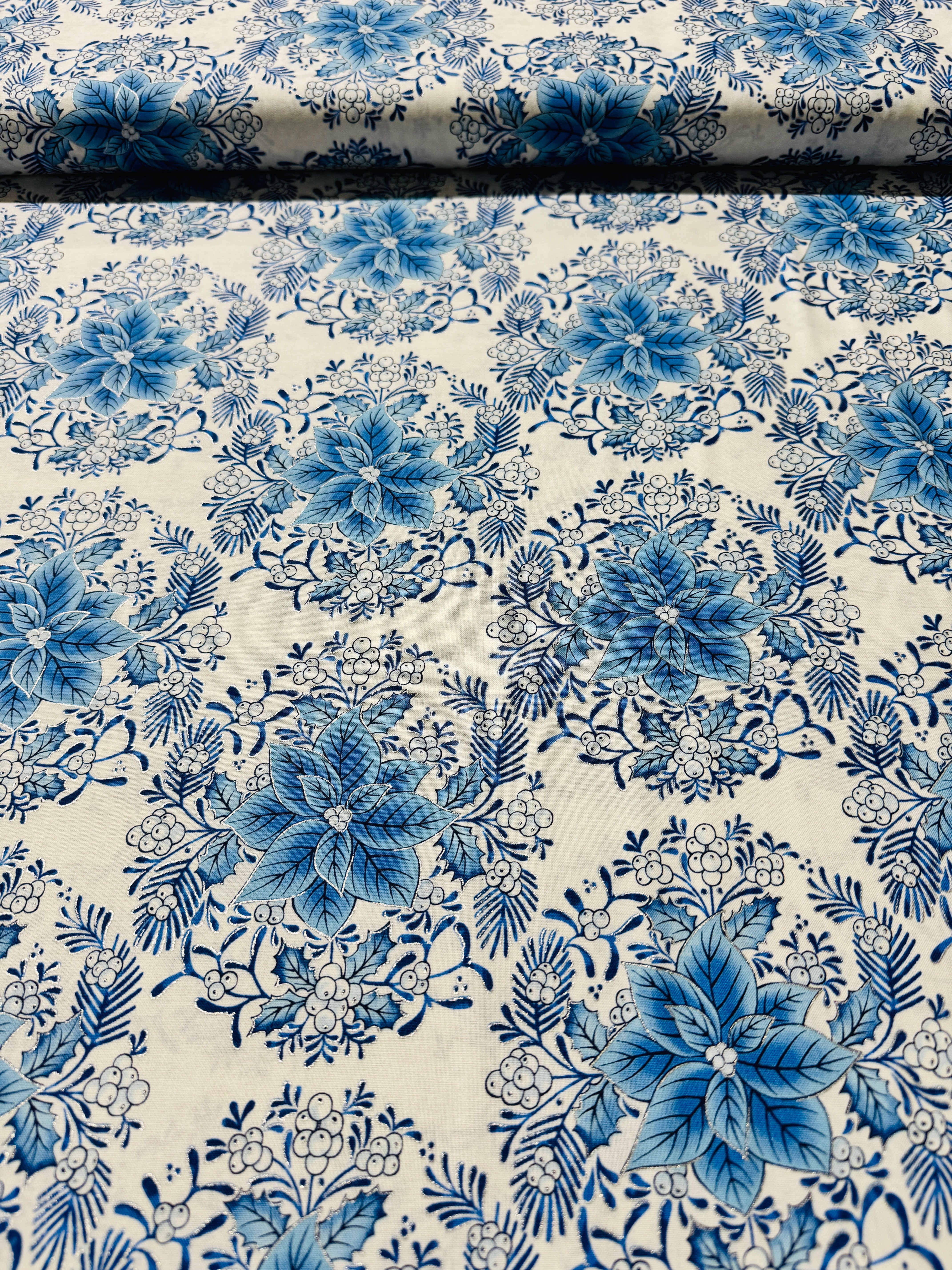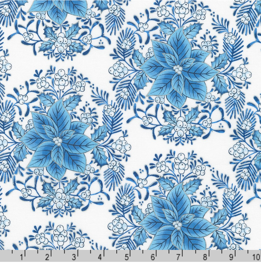 Holiday Flourish - Festive Finery - Florals Delft Silver Yardage