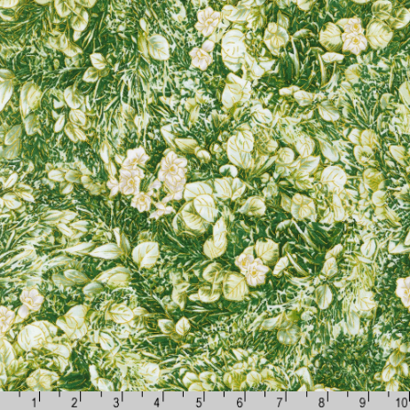 Holiday Flourish-Snow flower - Leaves Eucalyptus Metallic Yardage