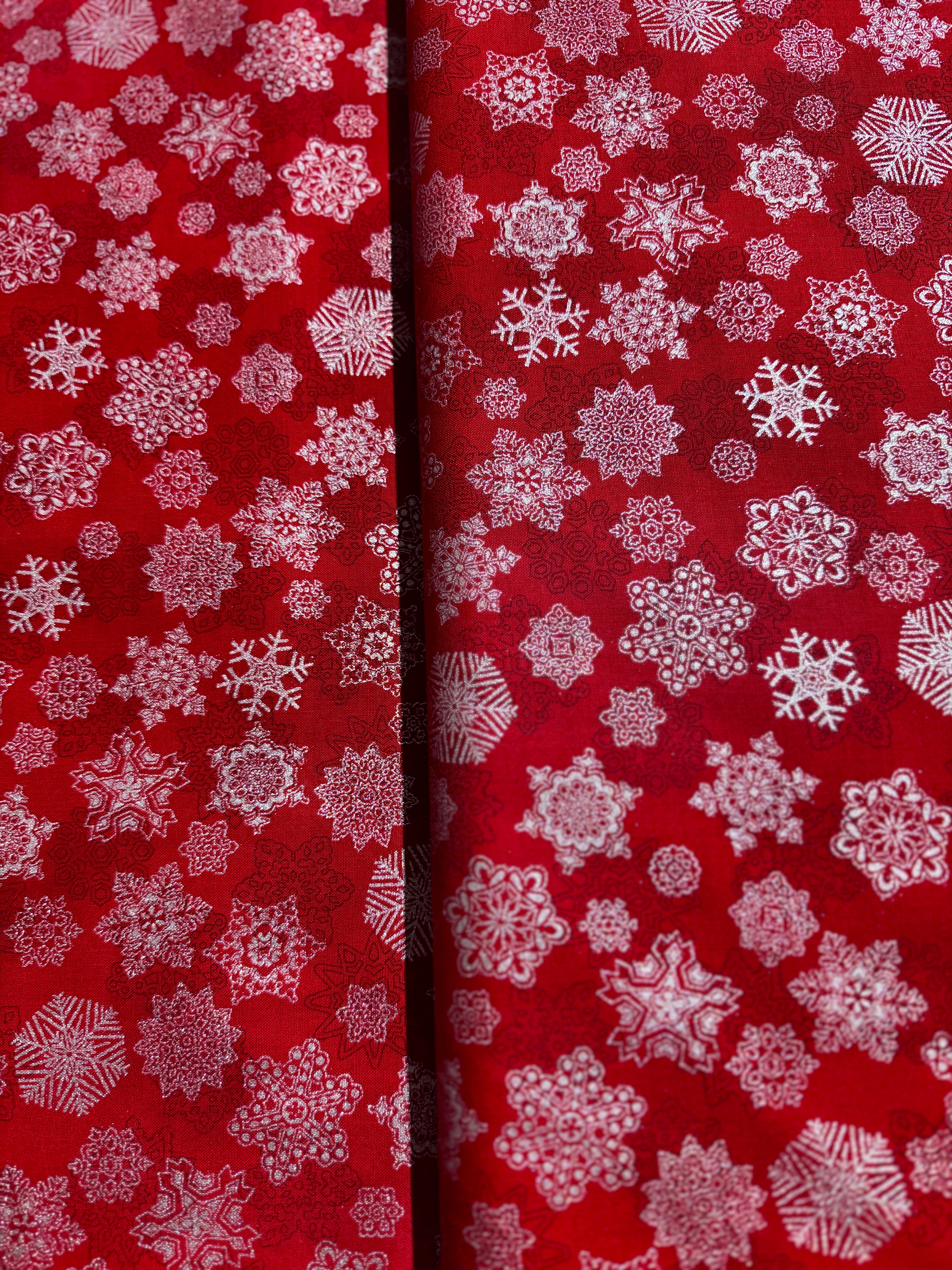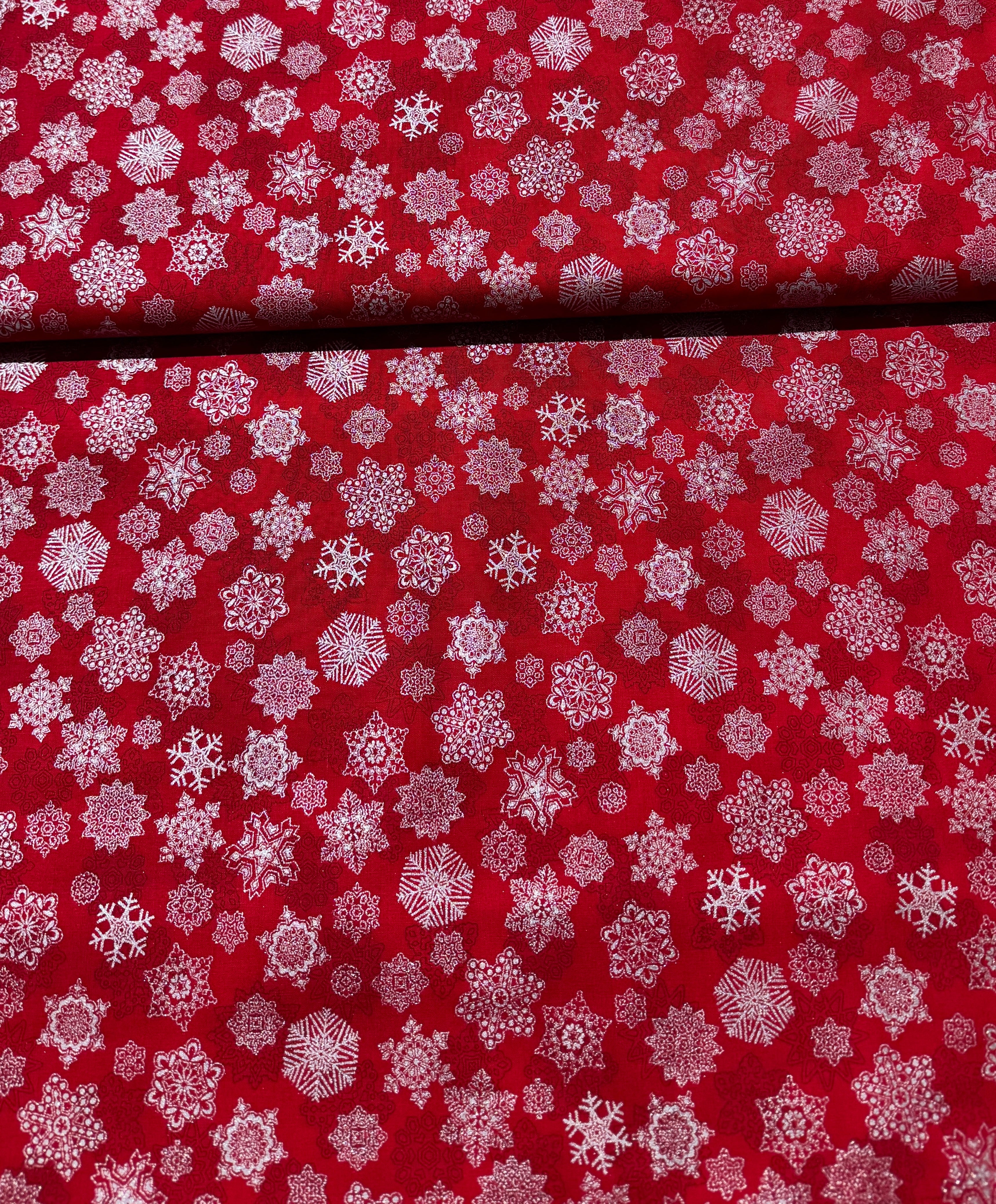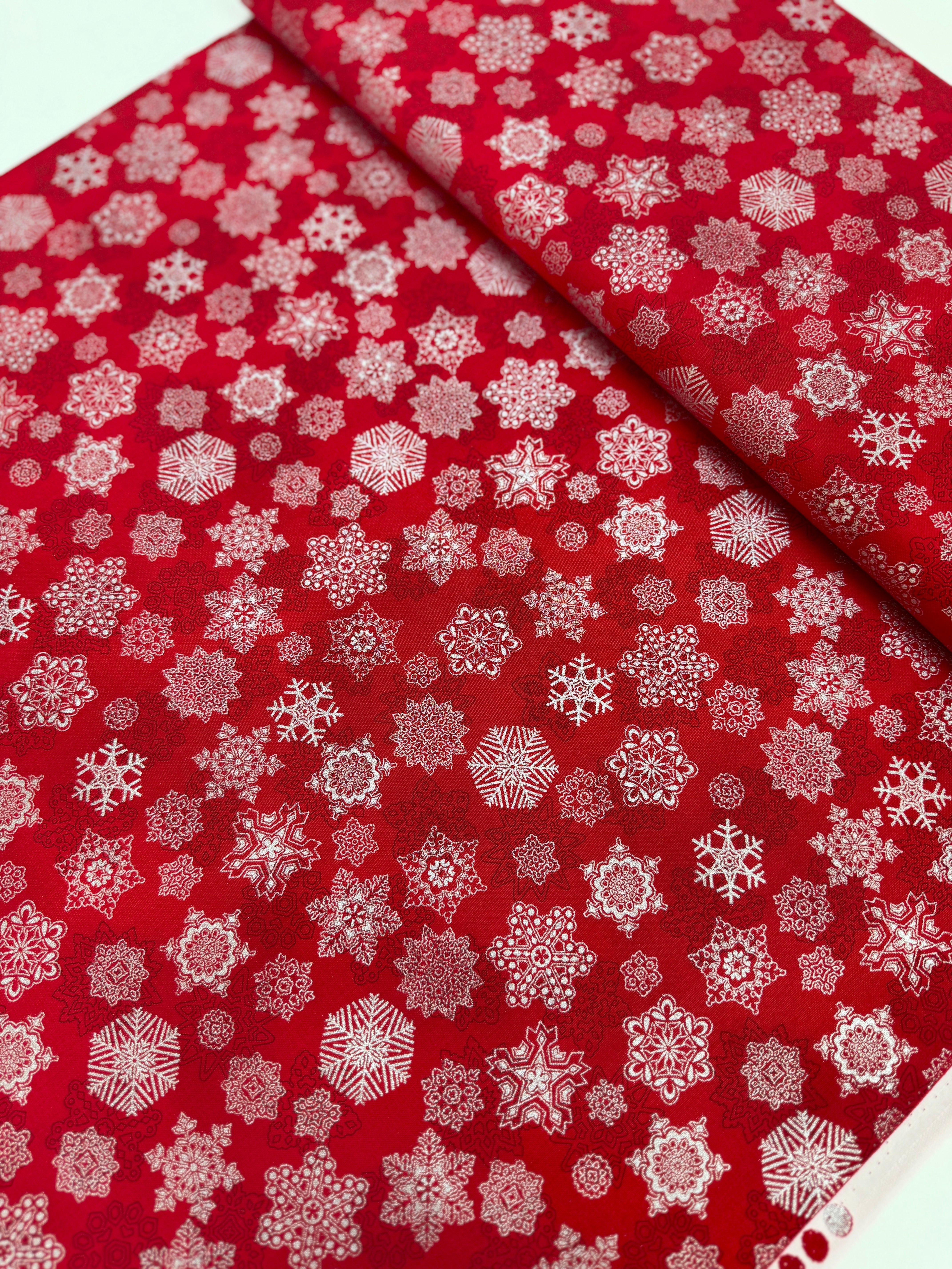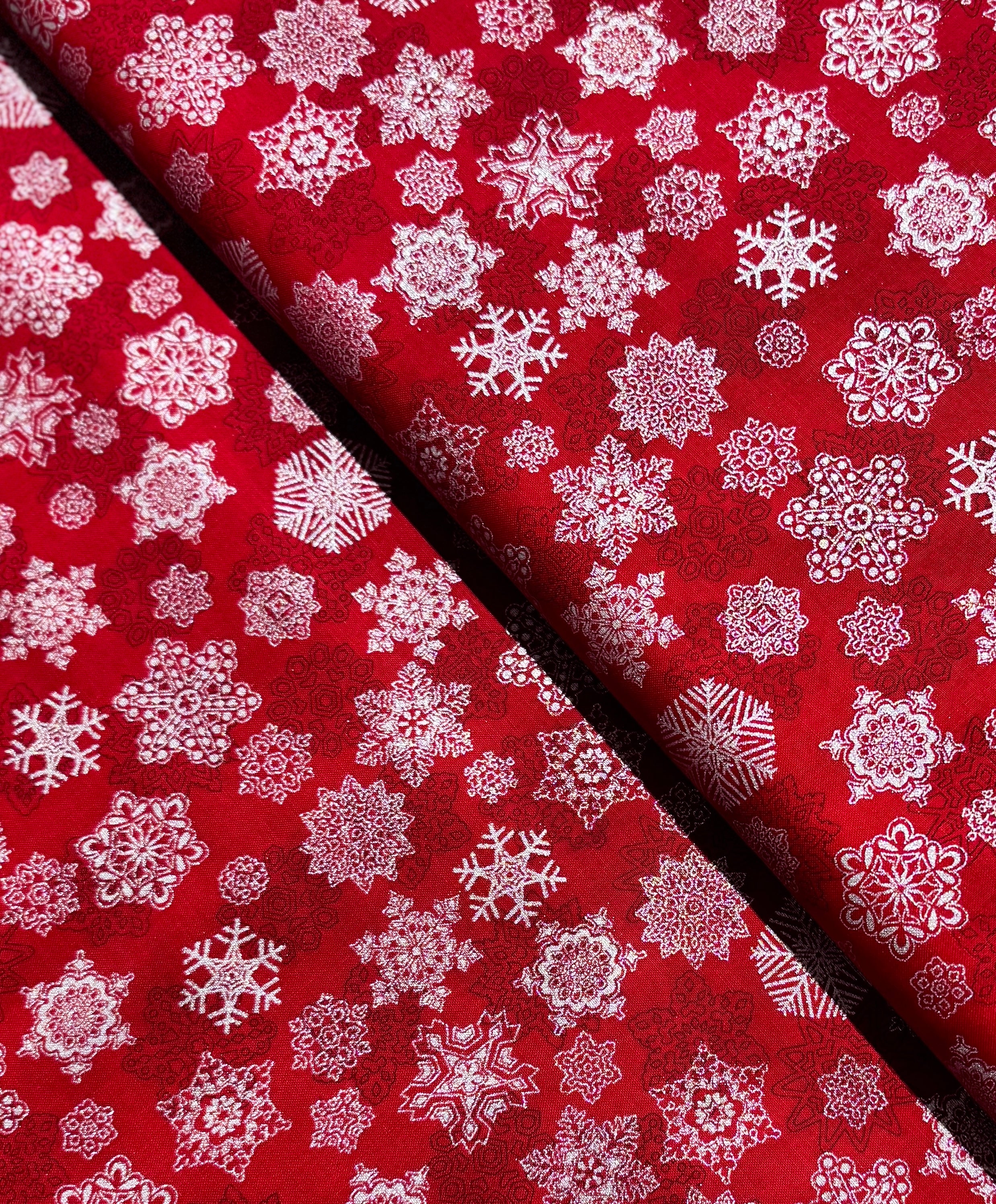 Holiday Flourish-Snow flower - Snowflakes Scarlet Metallic Yardage