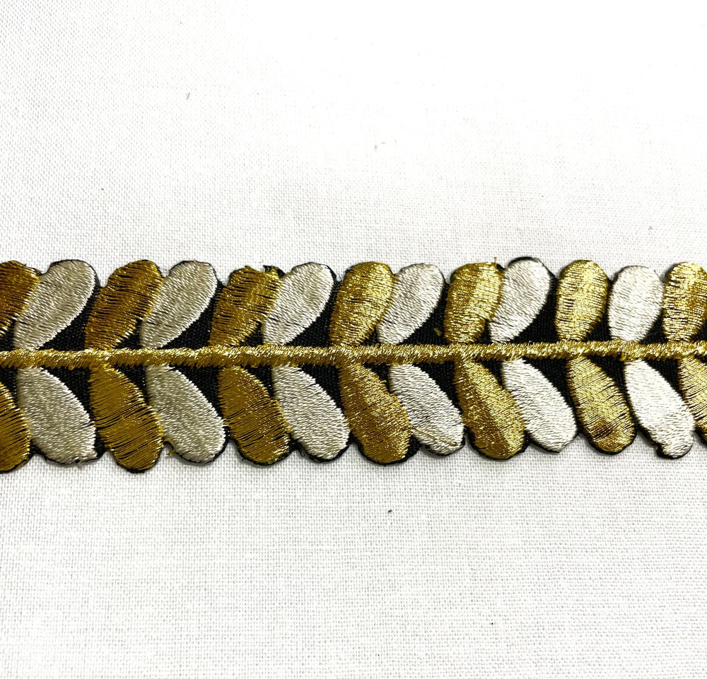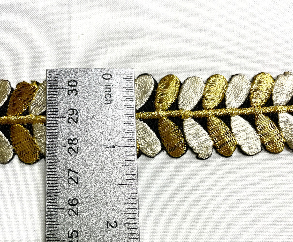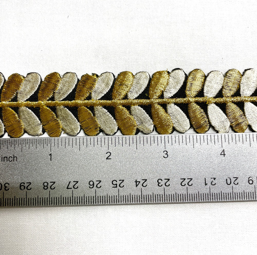 Iron-on Metallic Gold and Cream Leaf Lace Trim with adhesive back