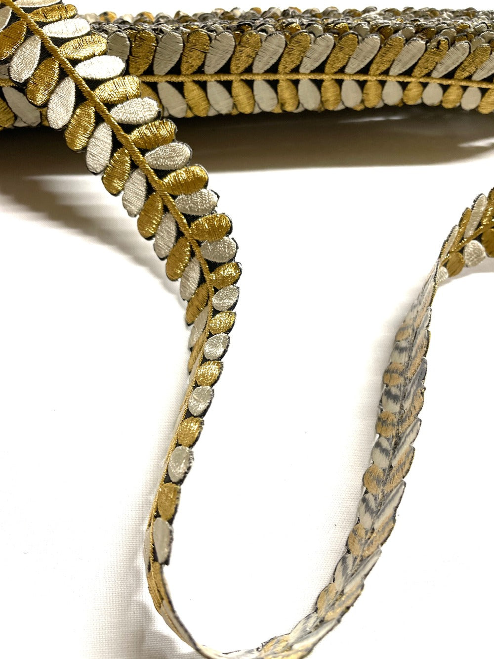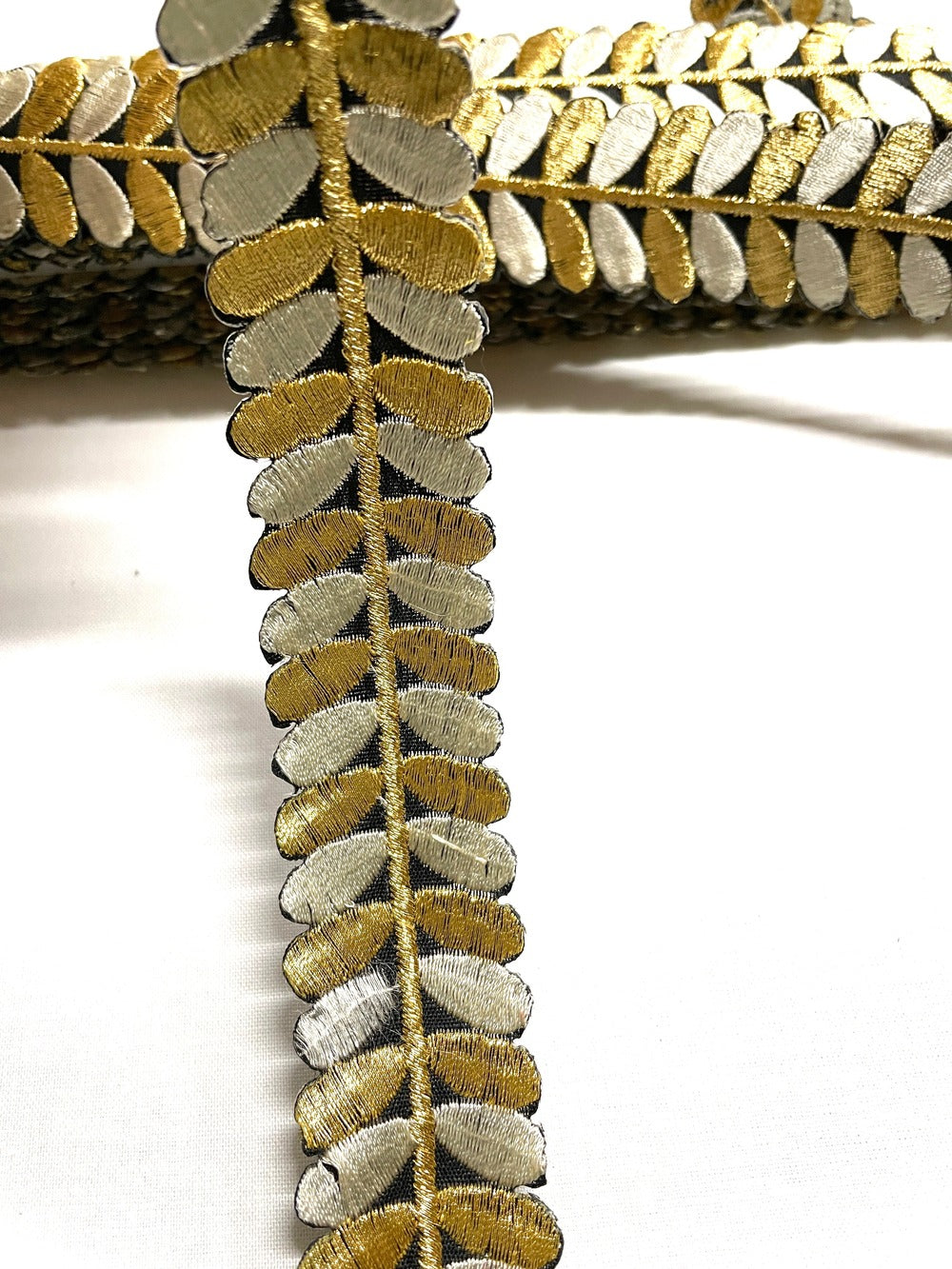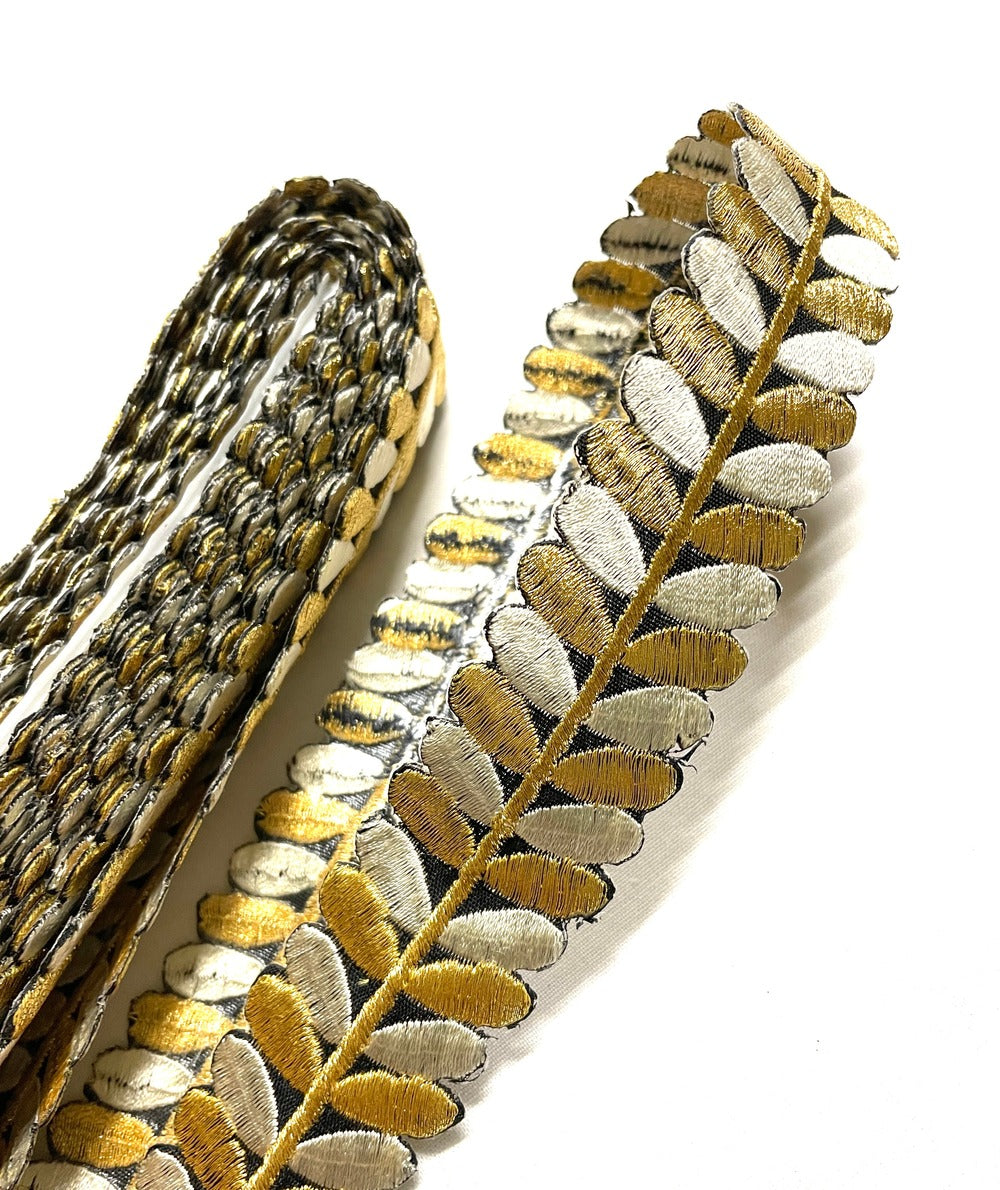 Iron-on Metallic Gold and Cream Leaf Lace Trim with adhesive back