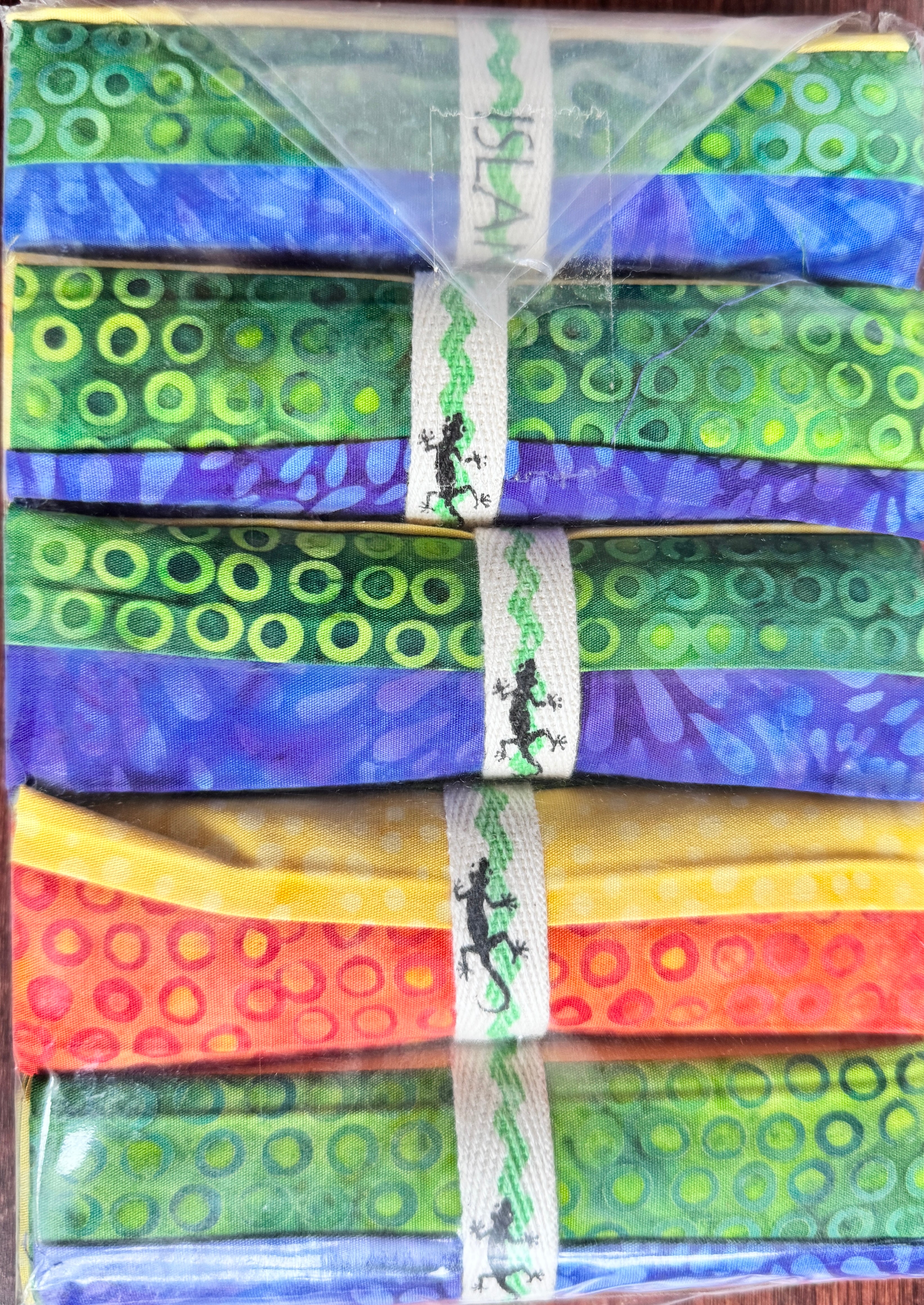 Each package includes 5 bundles of 4 – 5 inches WOF strips of Beautiful Batik fabrics