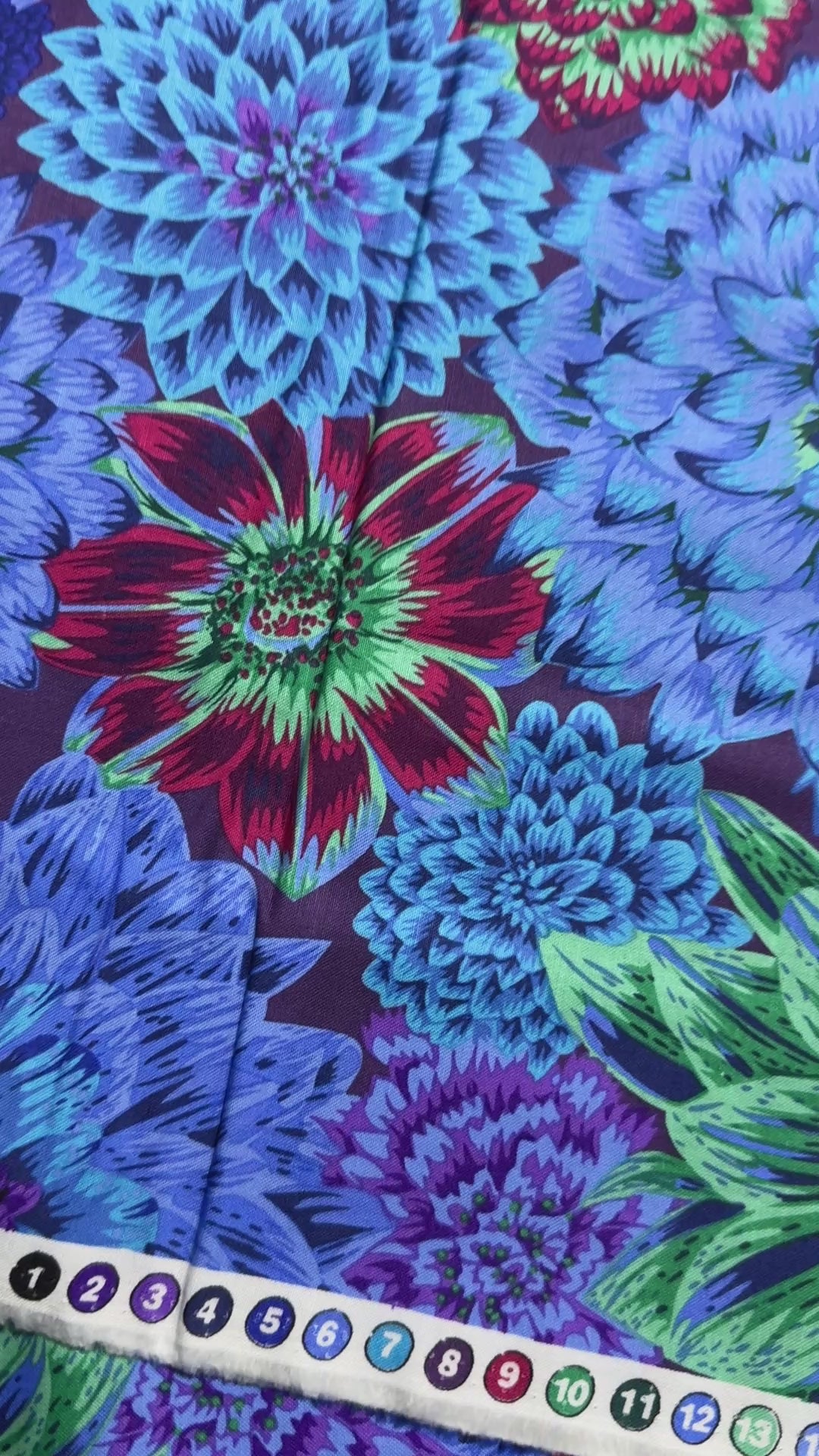 Kaffe Fassett Collective - Dancing Dahlias Blue Fabric by Philip Jacobs for Free Spirit Fabrics