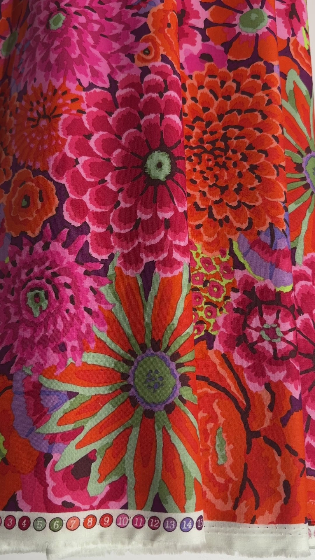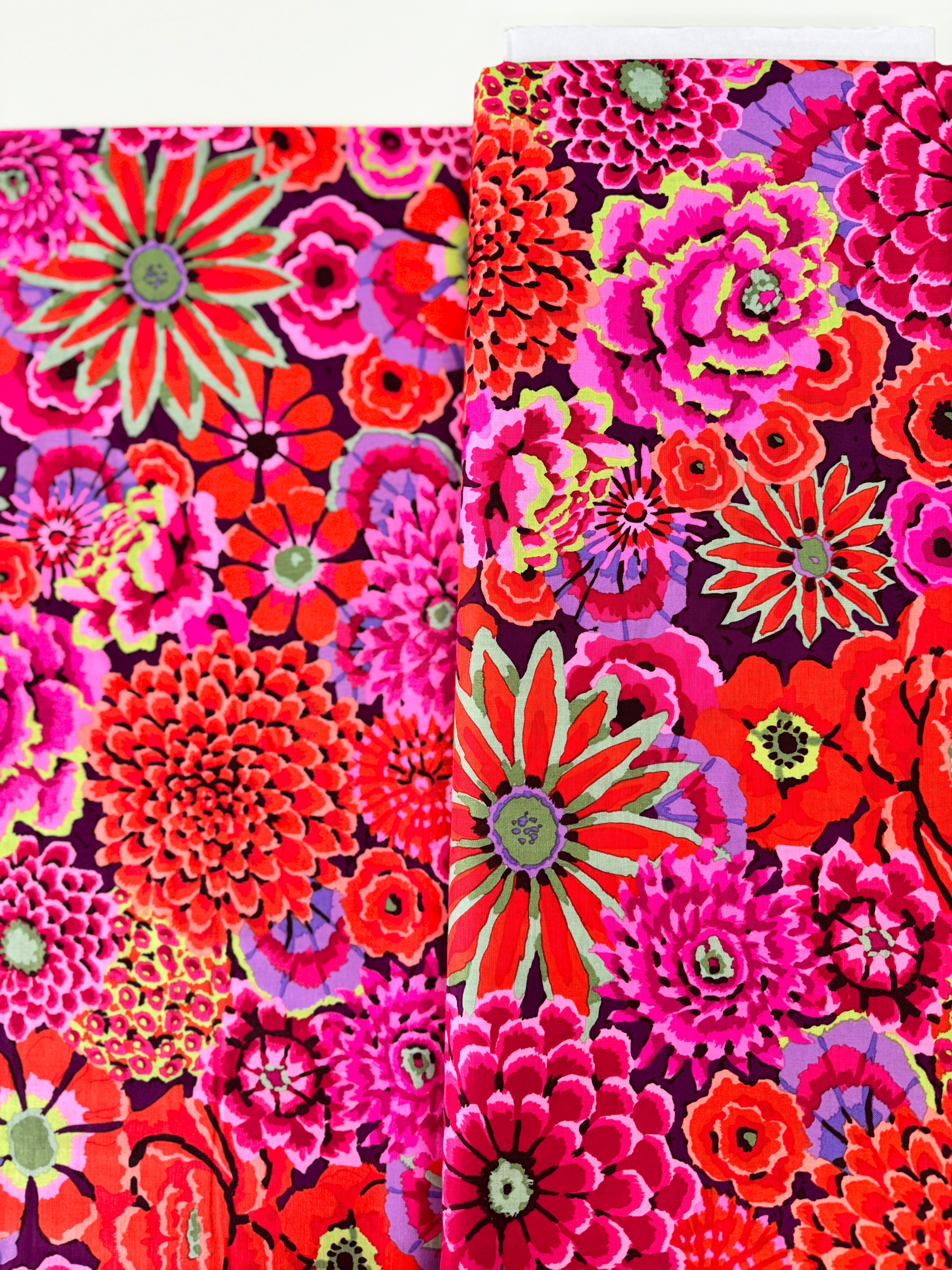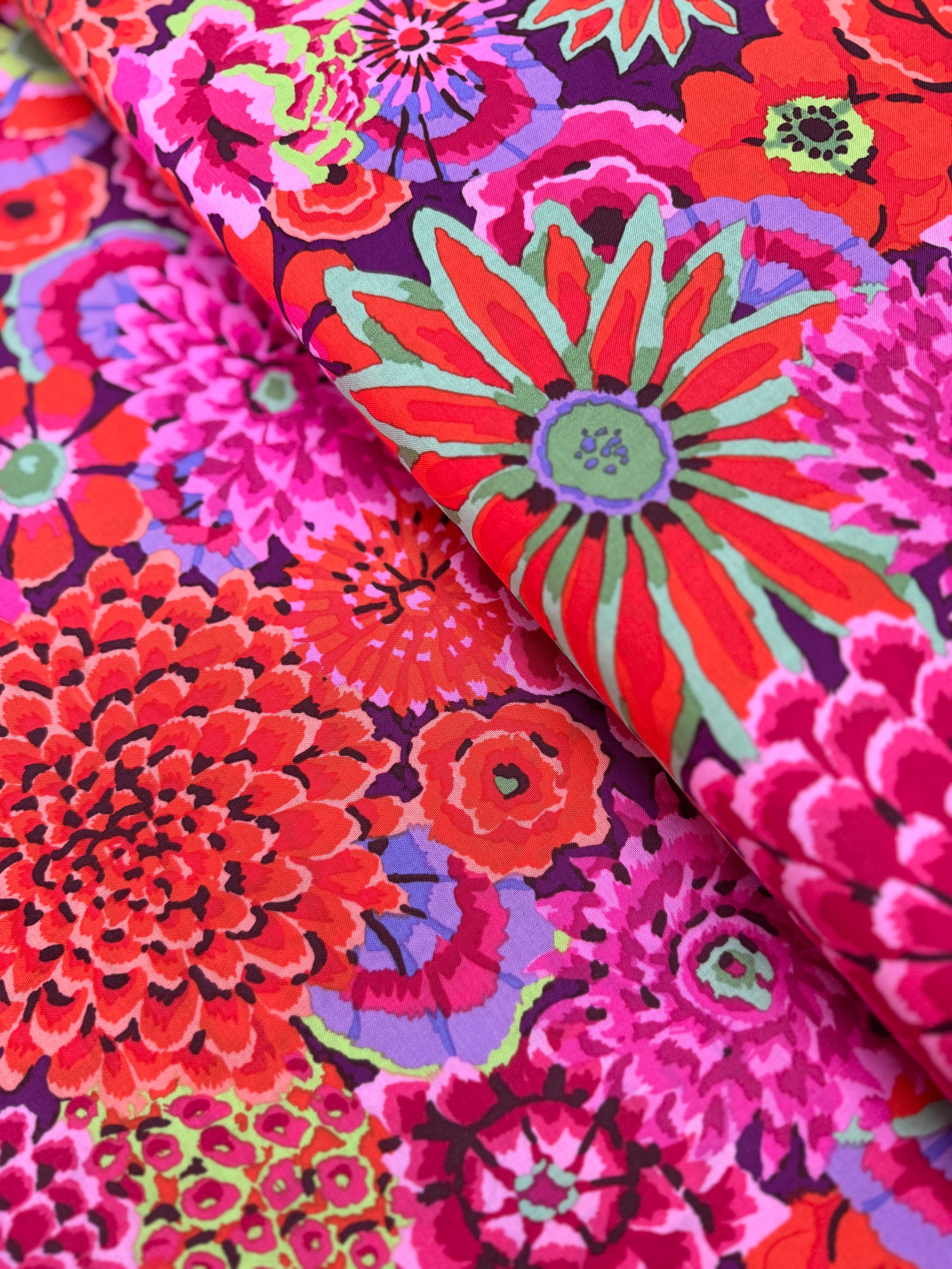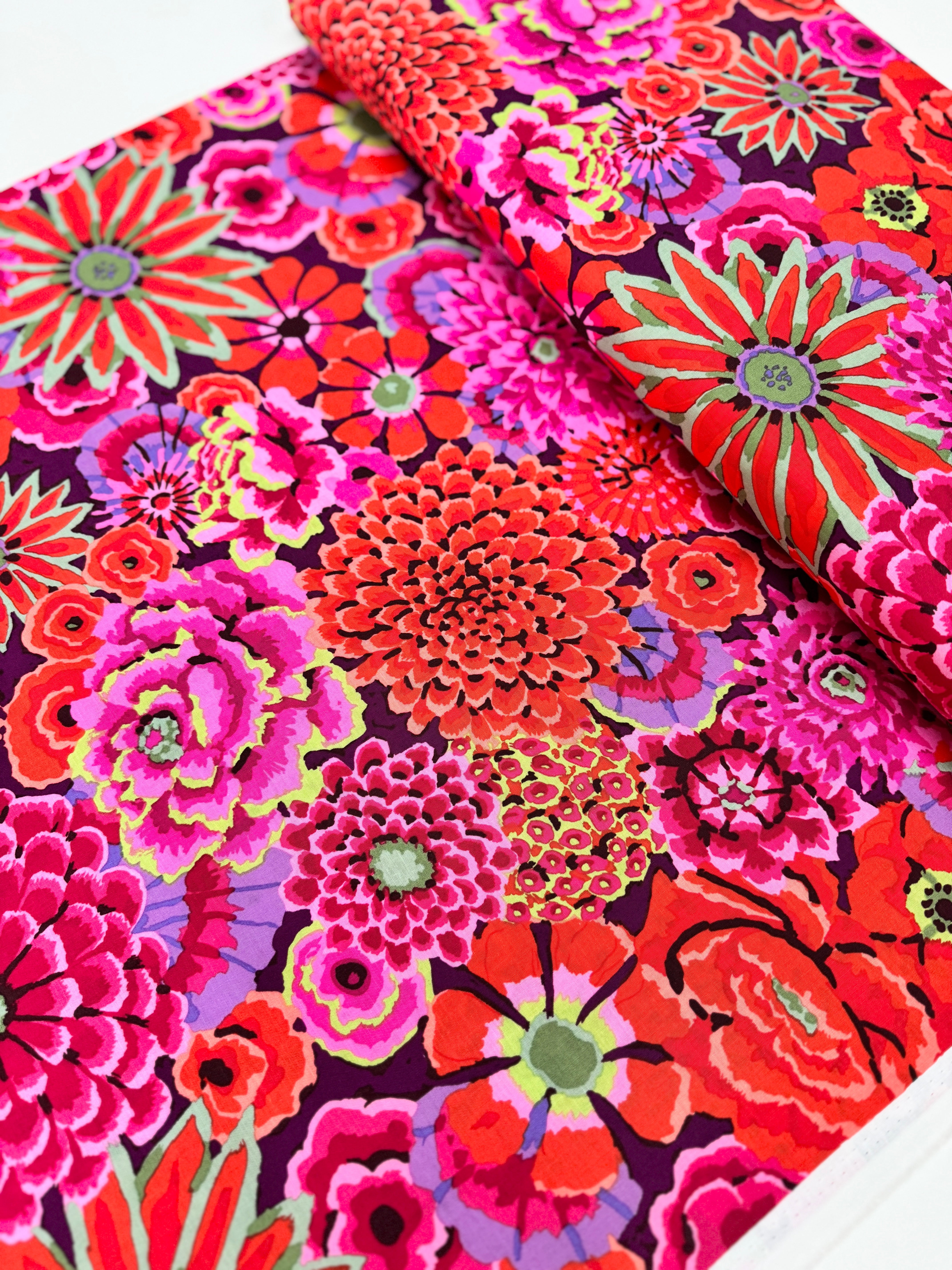 Enchanted Rust from the Kaffe Fassett Collective is a dynamic floral print designed by Philip Jacobs for Free Spirit Fabrics. Featuring colorful blossoms in shades of pink, red, orange, green, and purple on a warm rust background, this lightweight, 100% cotton fabric makes a striking statement in quilting, apparel accents, and home décor.