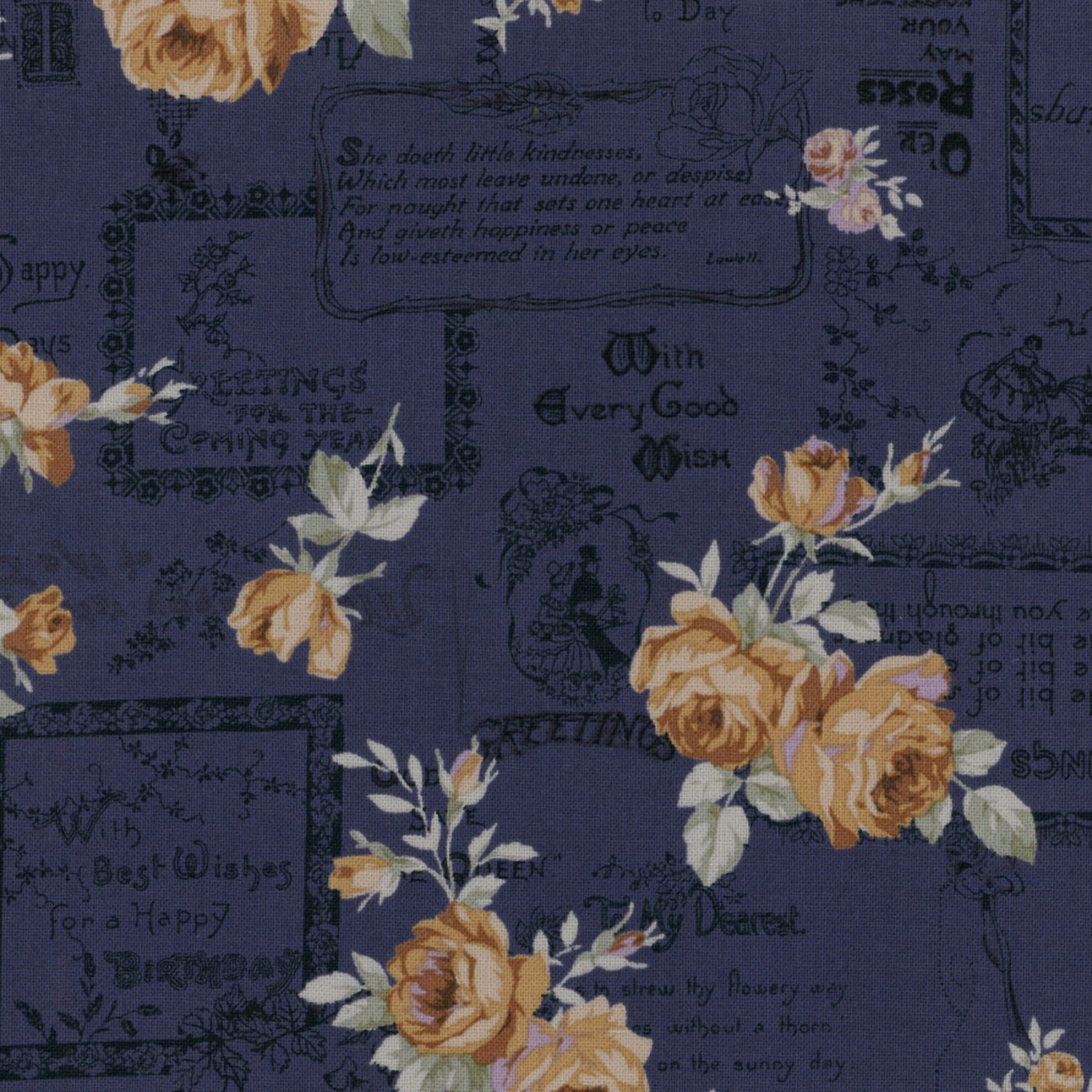 Antique Rose 2018 - Floral Text Navy by Lecien Fabrics