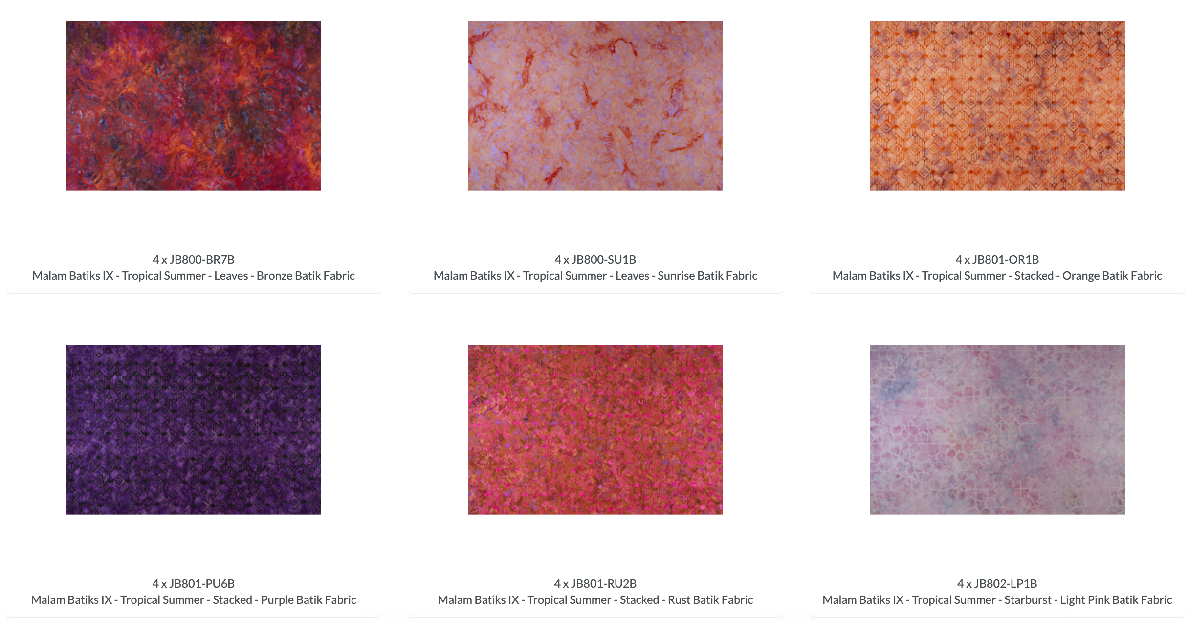 Malam Batiks IX Tropical Summer Batik 5x5 Pack/Charm Pack