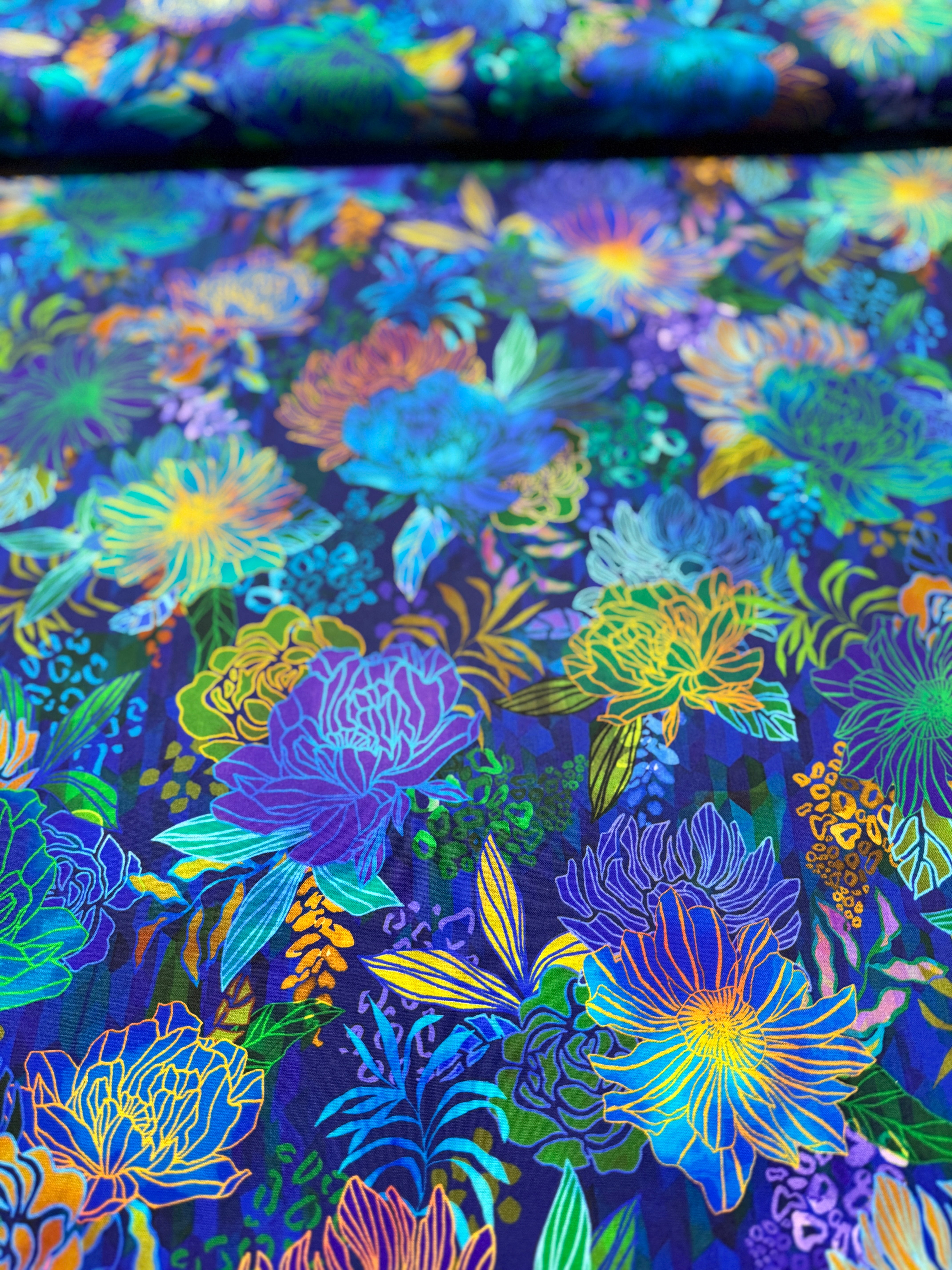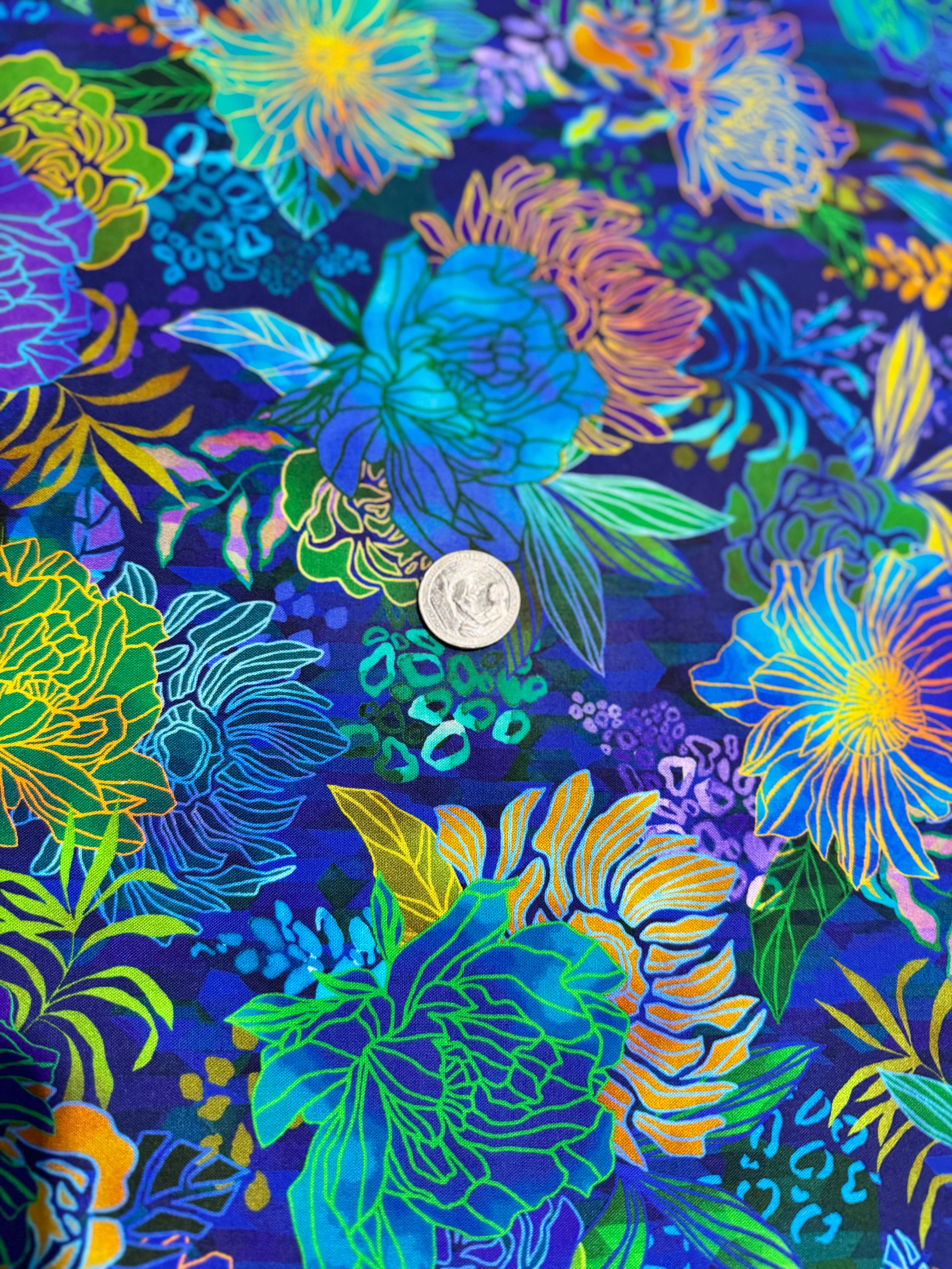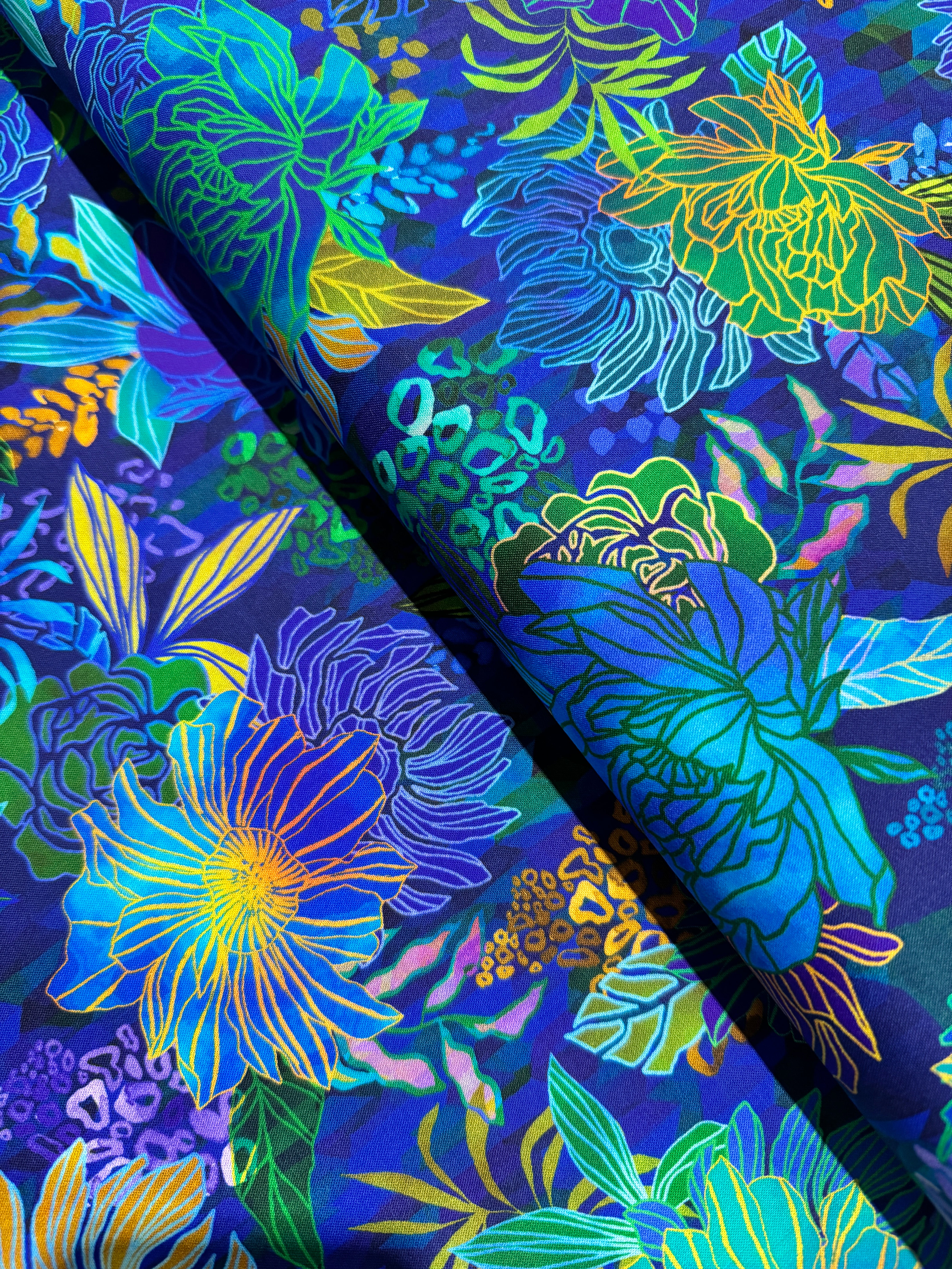 Midnight In The Jungle - Flowers Midnight Fabric by Robert Kaufman