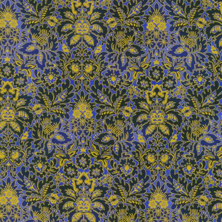 Midnight Nectar - Floral Damask Lapis Gold Metallic Fabric by Studio RK for Robert Kaufman