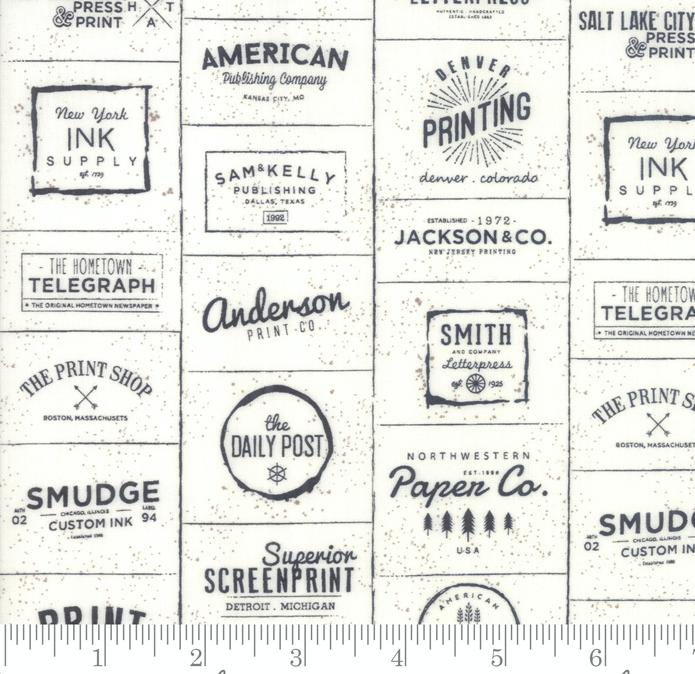 Add a touch of contemporary charm to your next project with The Print Shop – Modern Logos Cream Black by Sweetwater for Moda Fabrics. This stylish cotton print features black vintage-style logo and typography motifs on a cream background, inspired by classic print and letterpress designs. Perfect for modern quilts, bags, wall hangings, and home décor, this fabric offers a crisp graphic look that balances nostalgia with a clean, modern feel.