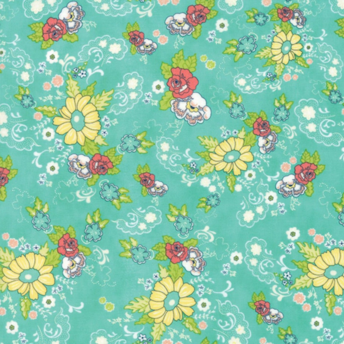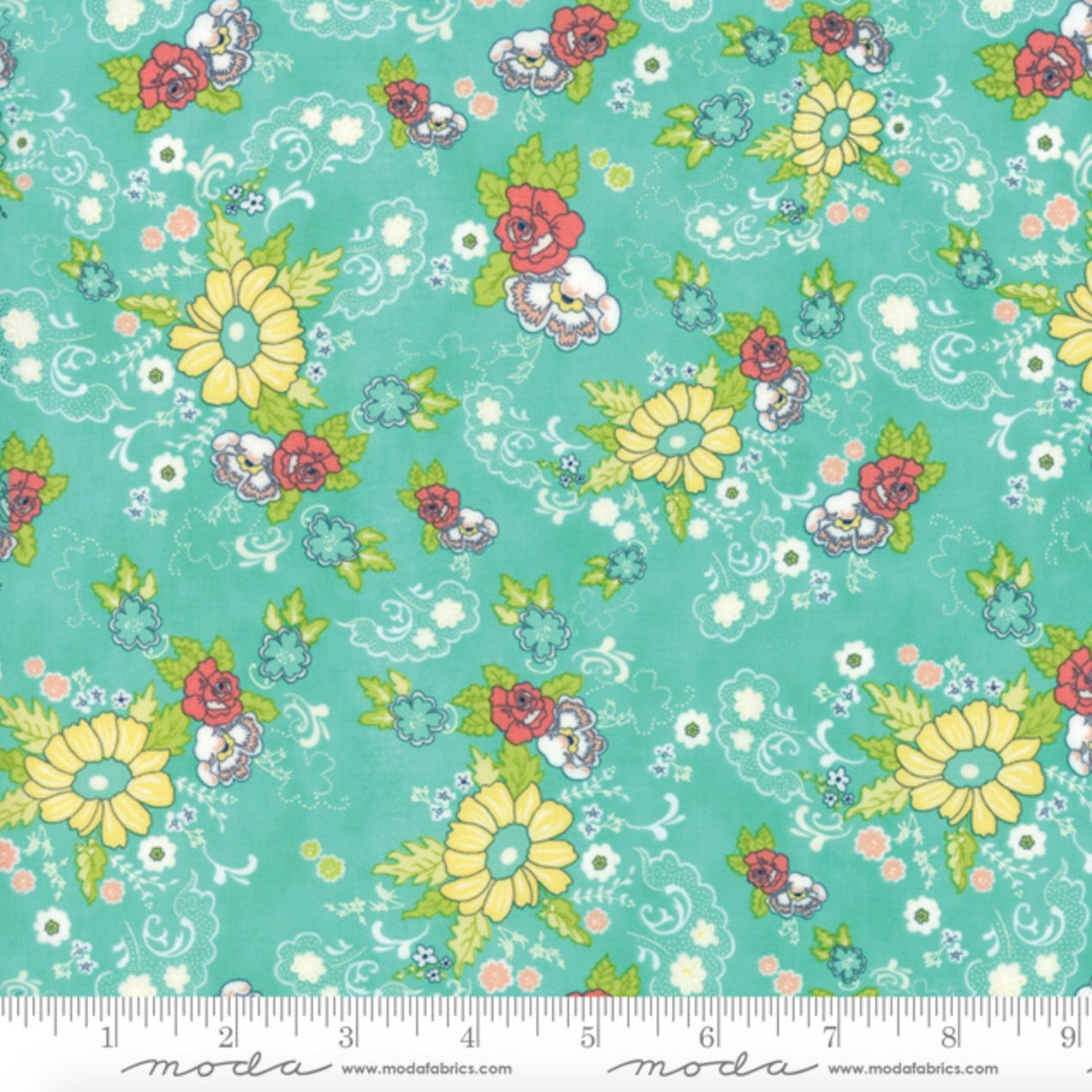 Pond - Floral Cordelia Aqua from the collection "Tuppence" by Shannon Gillman Orr for Moda Fabrics
