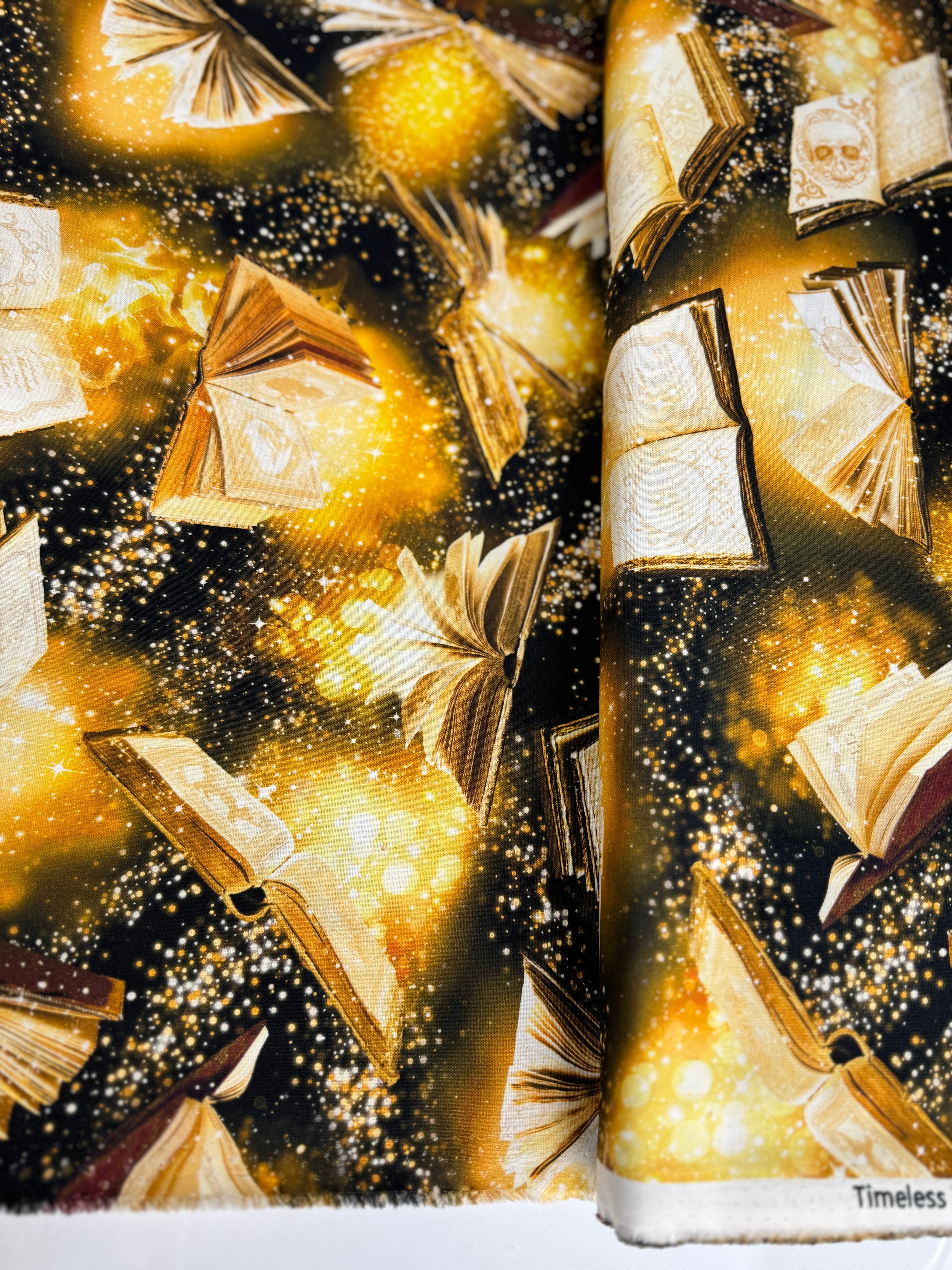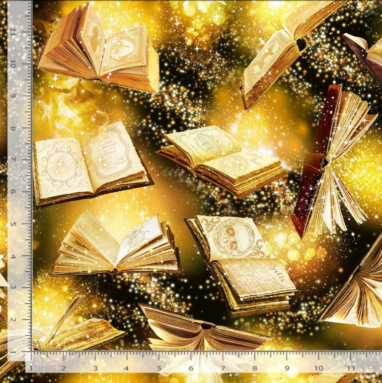 Mystic Library - Magic Spell Books Flying Fabric by Timeless Treasures