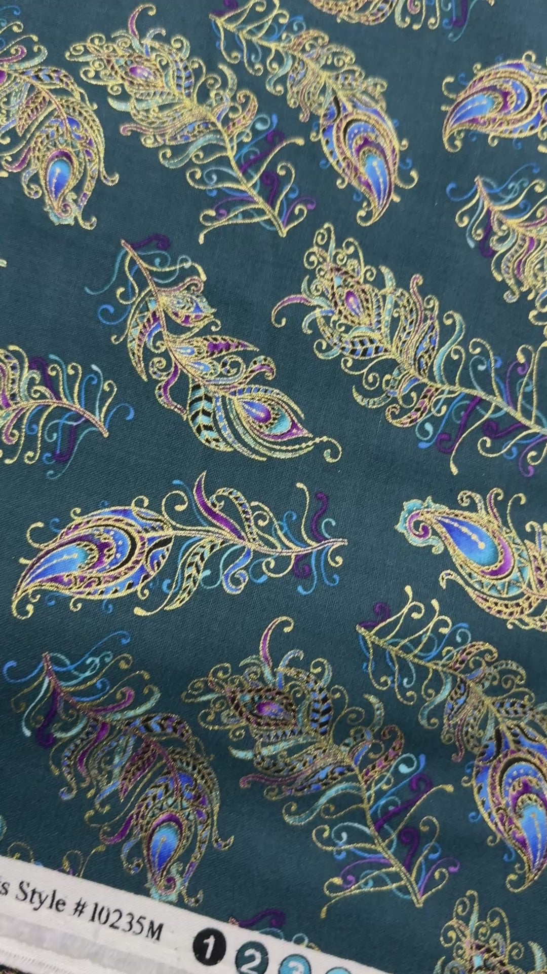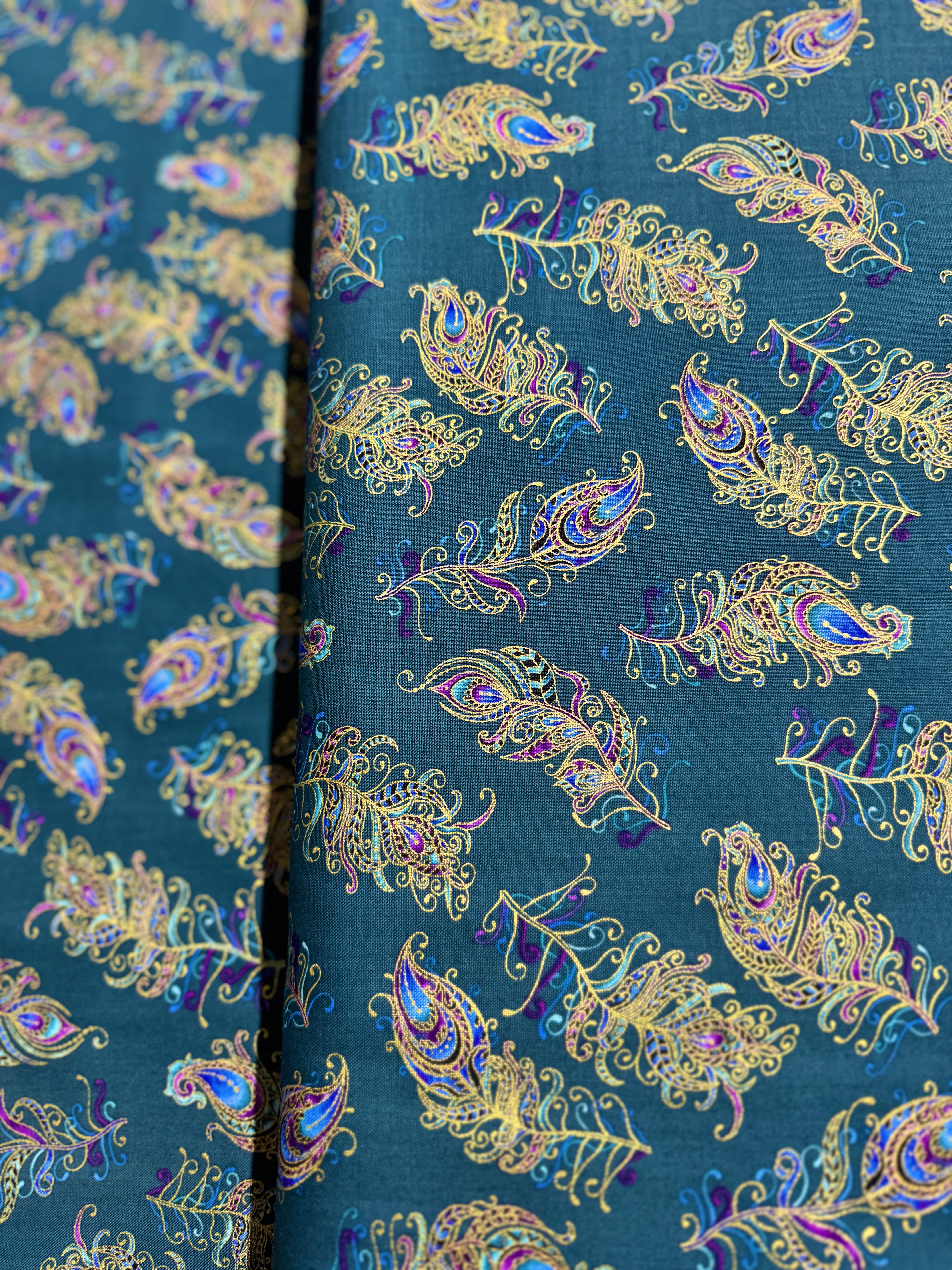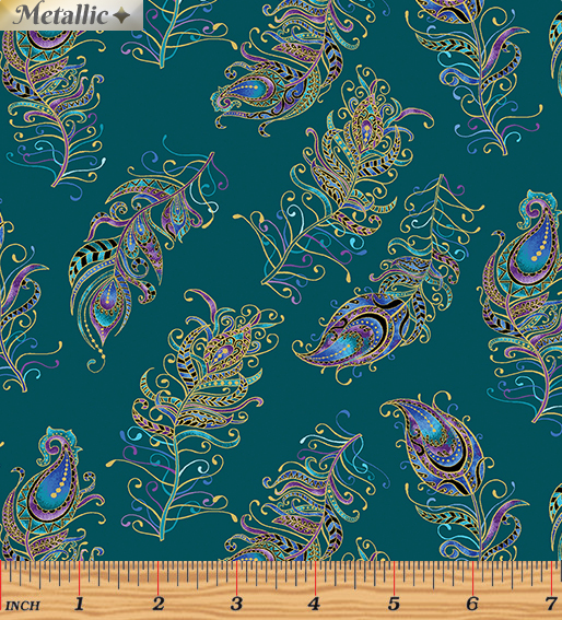 Peacock Flourish - Floating Feathers Small Dark Teal Multi Fabric by Ann Lauer of Kanvas Studio for Benartex