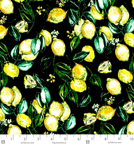 Citrus Garden - Lemons Black Fabric by RJR Studio for RJR Fabrics