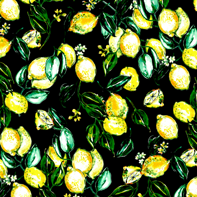 Citrus Garden - Lemons Black Yardage