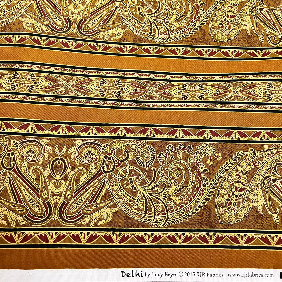 Bring a touch of elegance and global style to your next project with Delhi - Border Golden by Jinny Beyer for RJR Fabrics. This 100% cotton fabric showcases a beautiful ornamental border print in radiant golden hues, inspired by traditional Indian textiles. Ideal for quilt borders, garments, and stunning home décor accents.