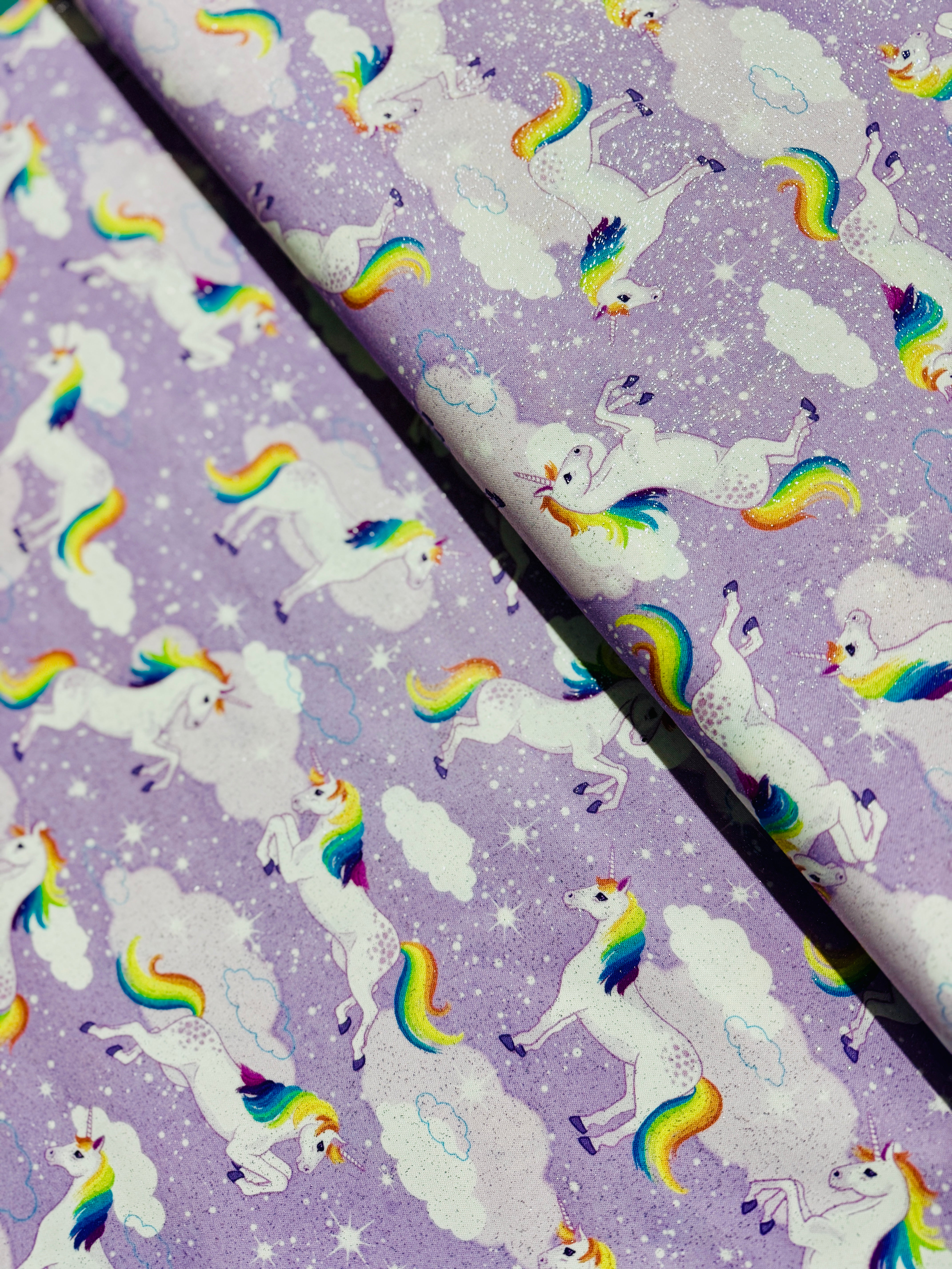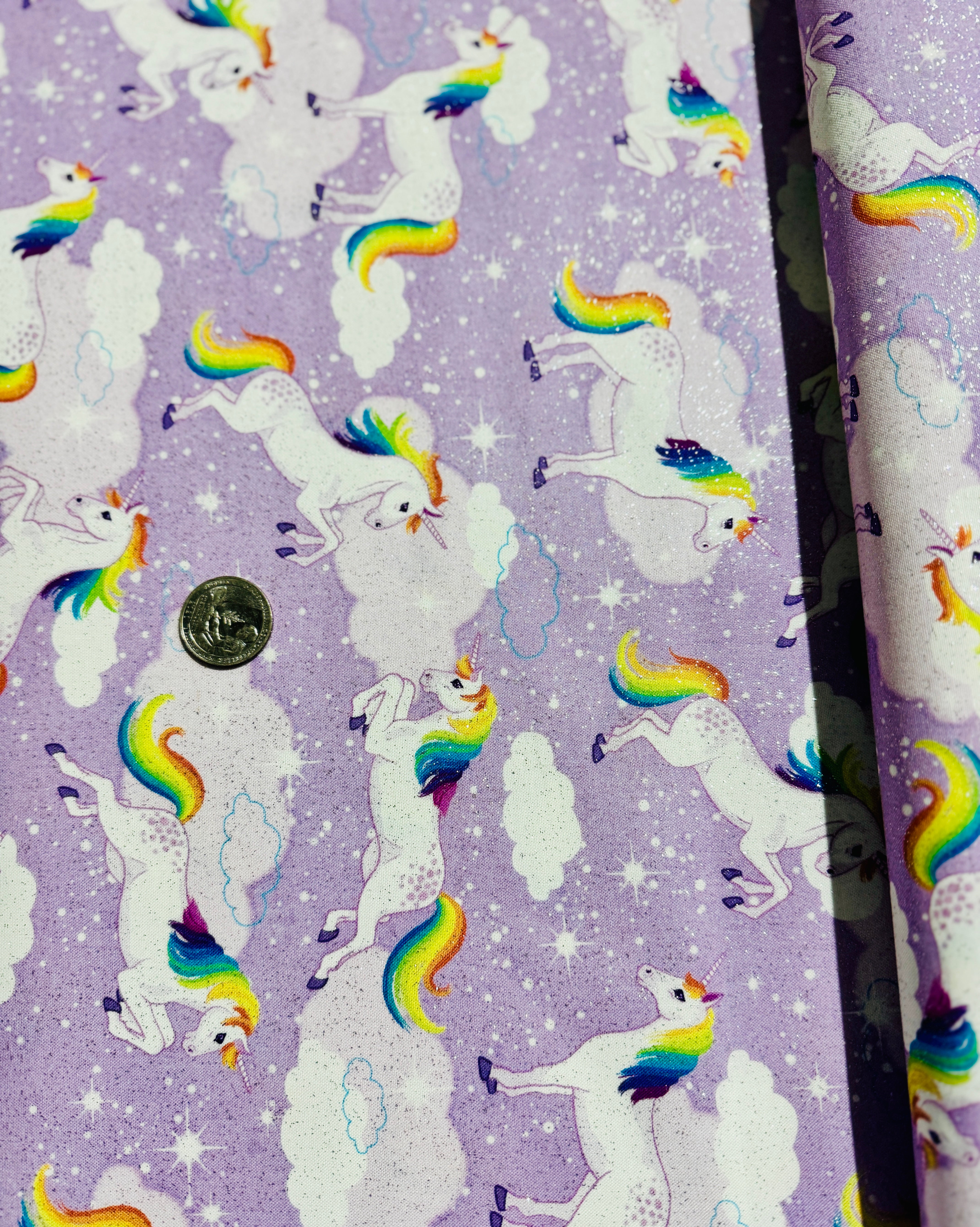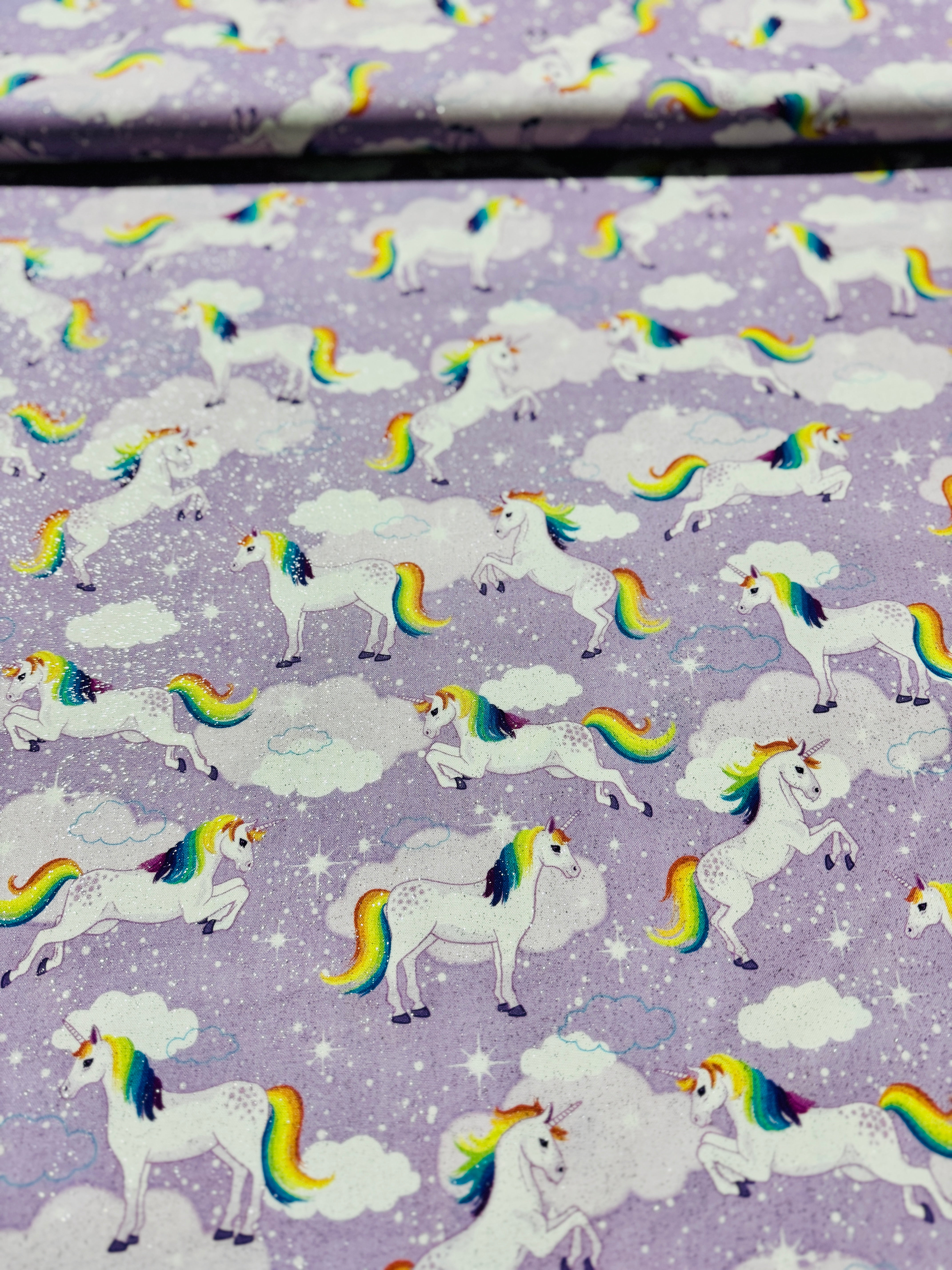 Enchanted Unicorns - Lavender with Silver Glitter Yardage