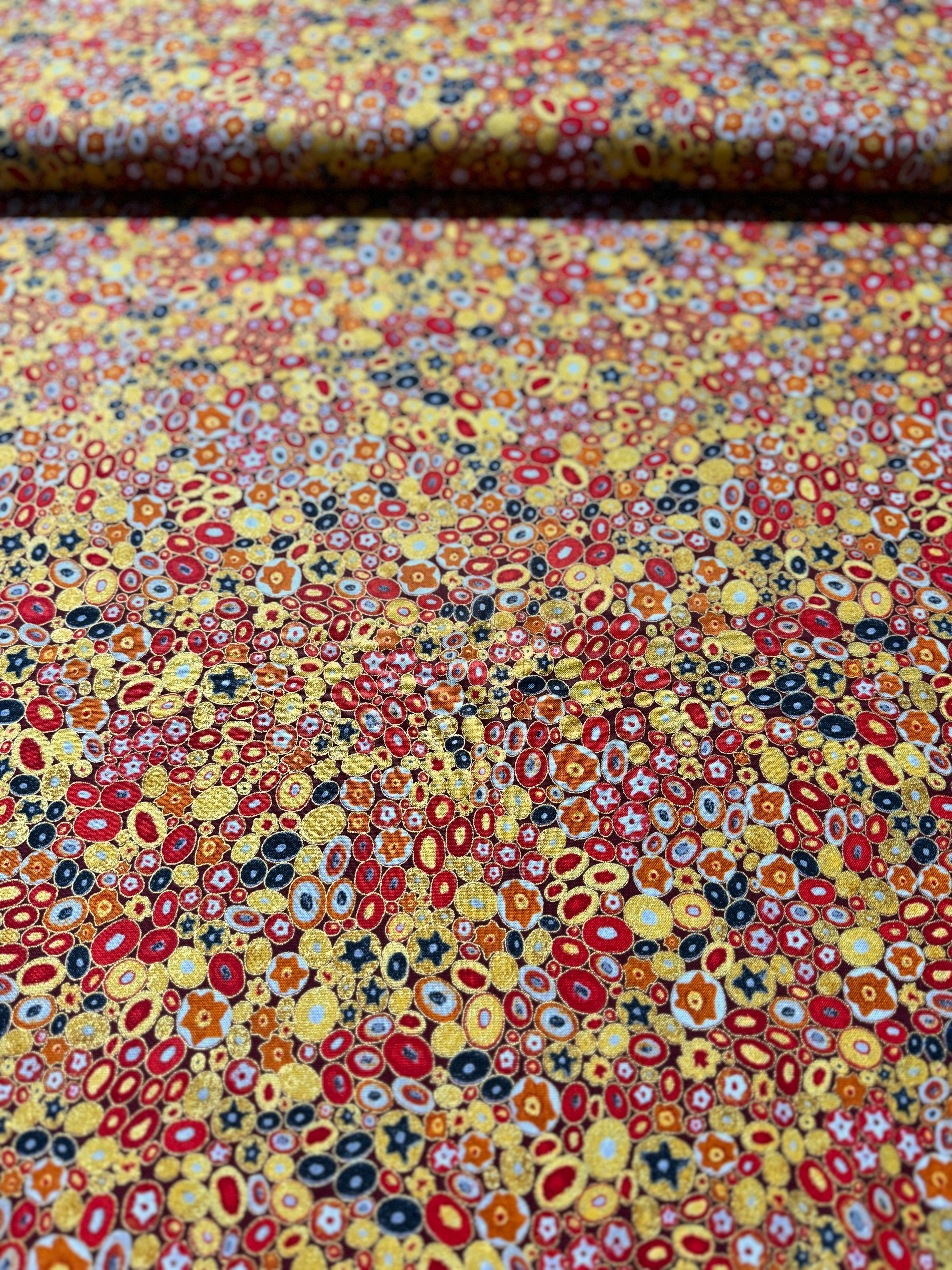 Gustav Klimt - Red Gold Metallic Fabric by Studio RK for Robert Kaufman