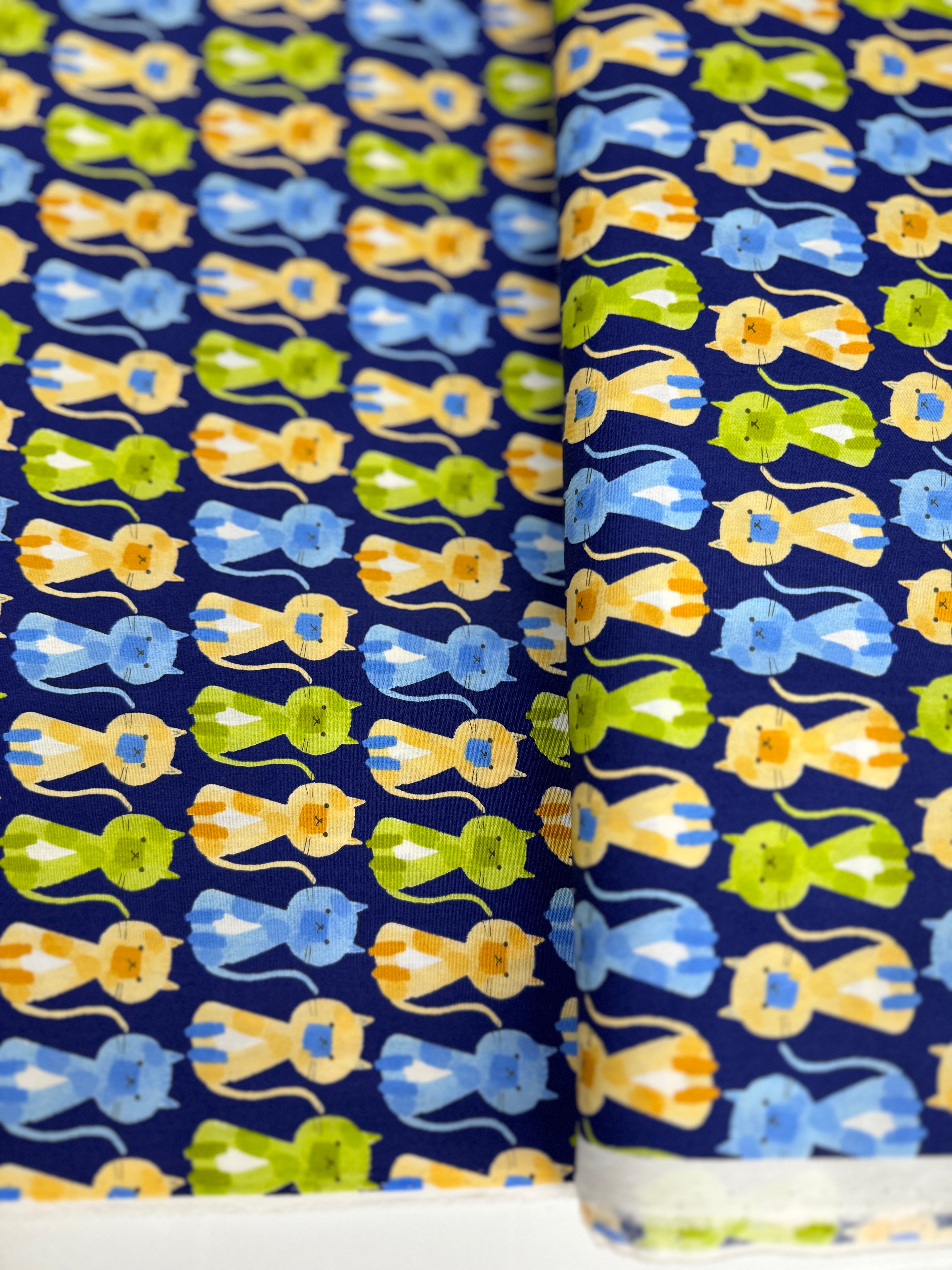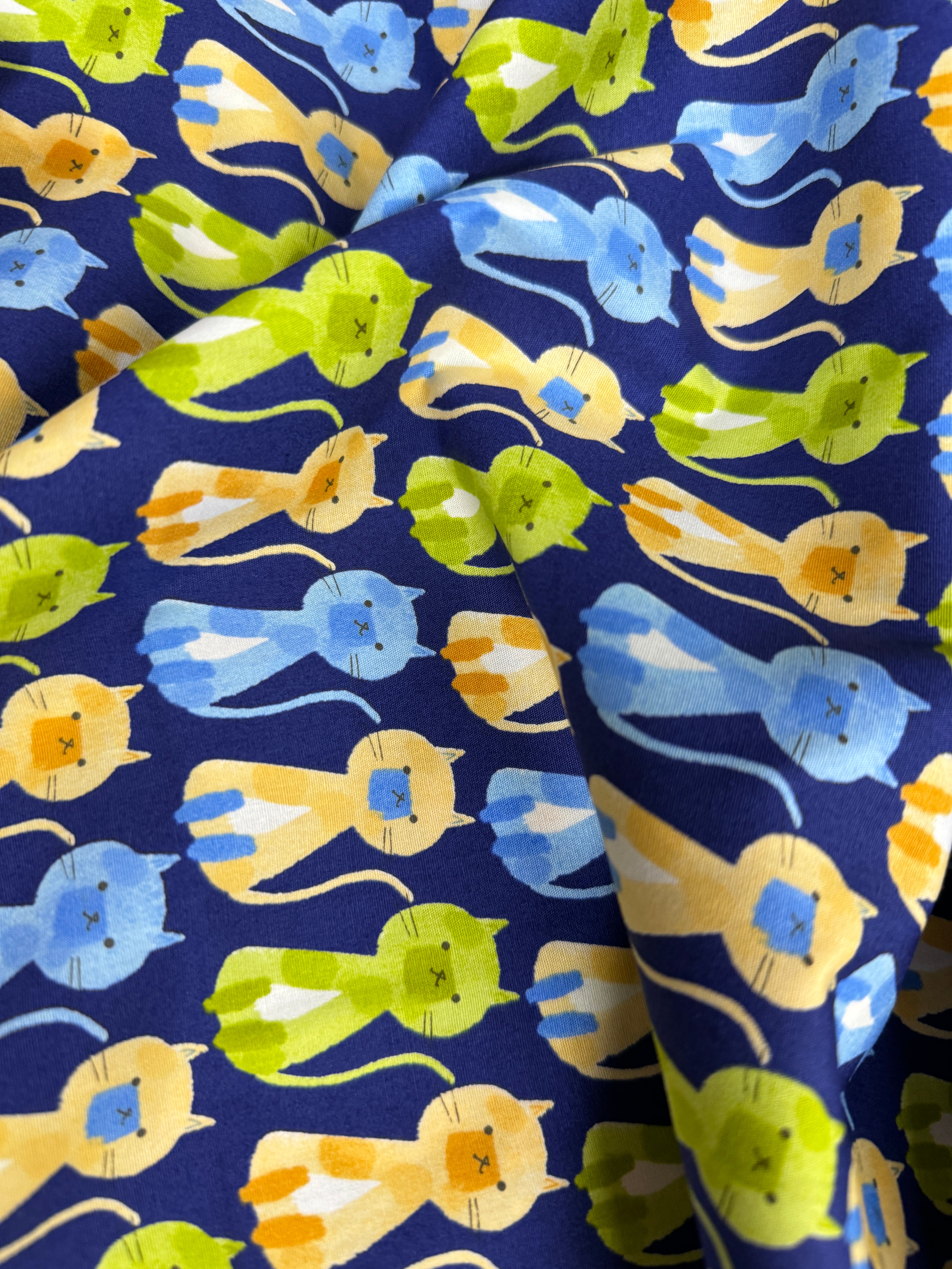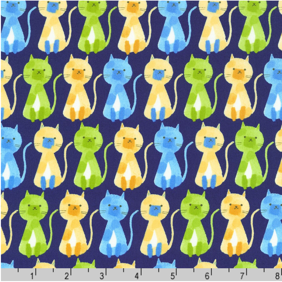 Sevenberry Musings - Cats on Navy Yardage
