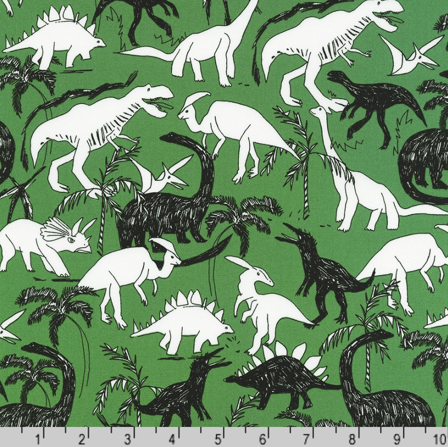 Musings - Dinosaurs on Green Fabric by Sevenberry for Robert Kaufman