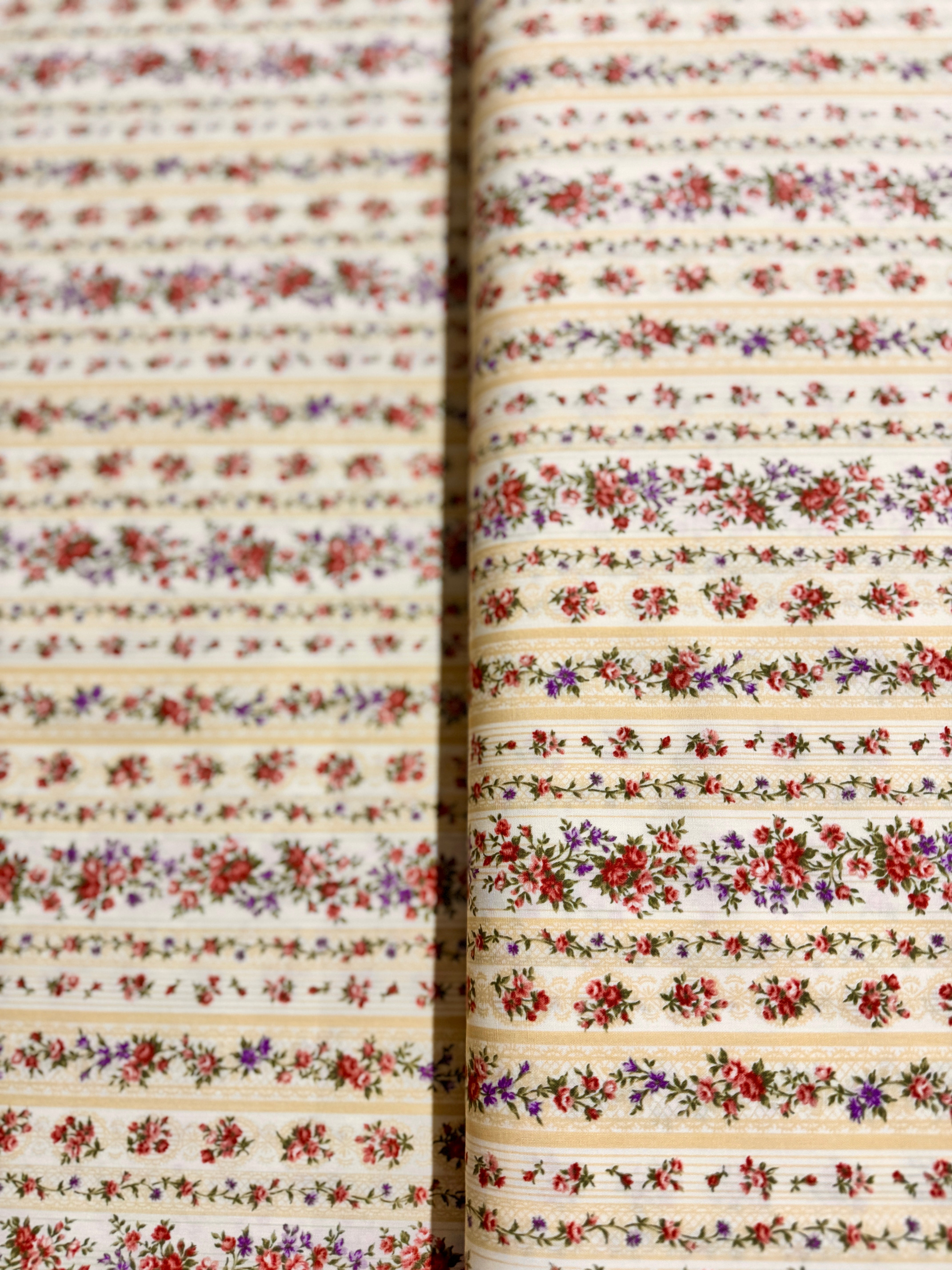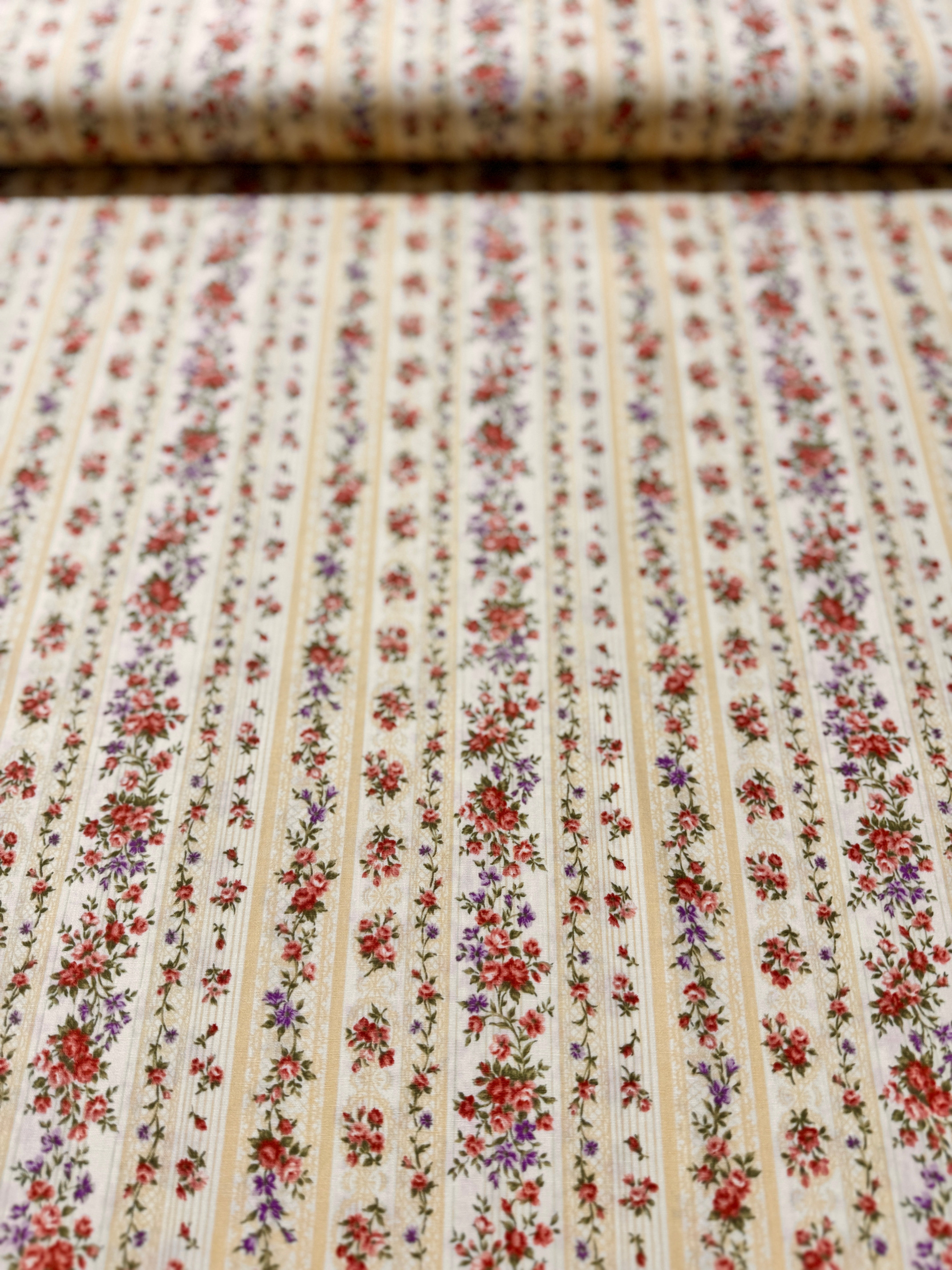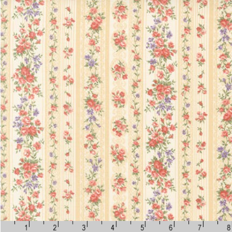 Sevenberry Petite Victoriana - Floral Stripes Natural Yardage