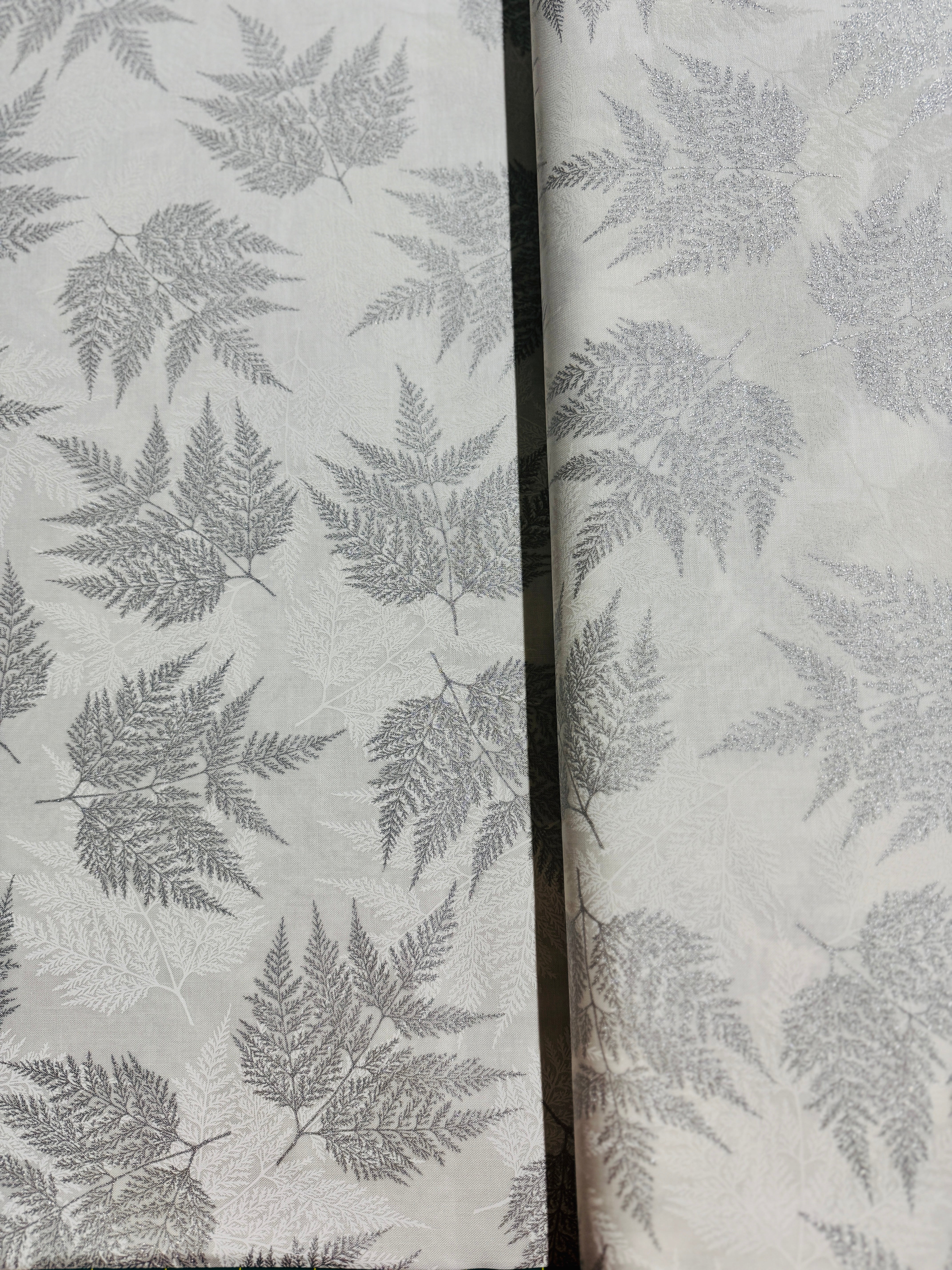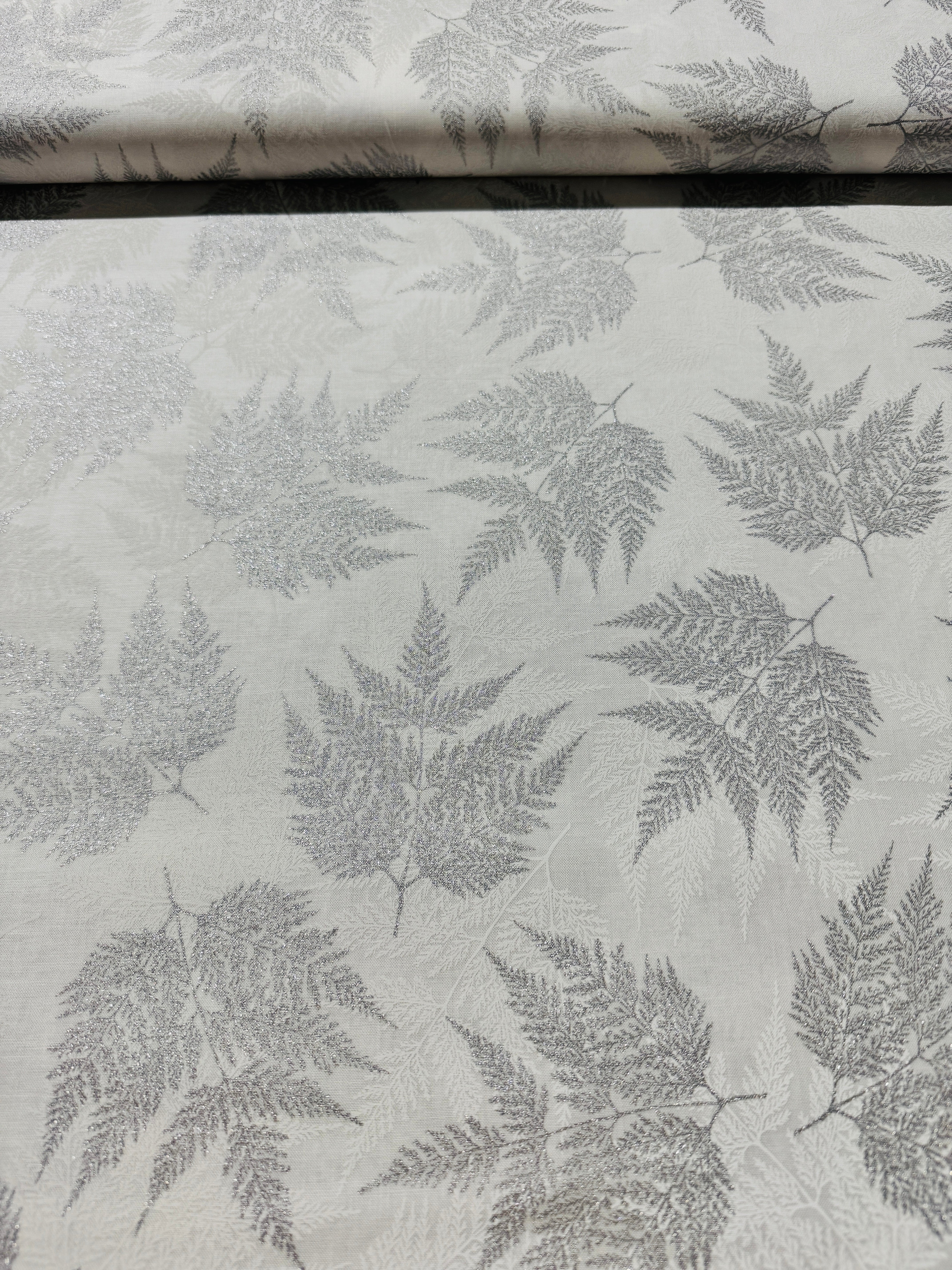 Sparkle and Fade - Ferns White/Silver Metallic Yardage