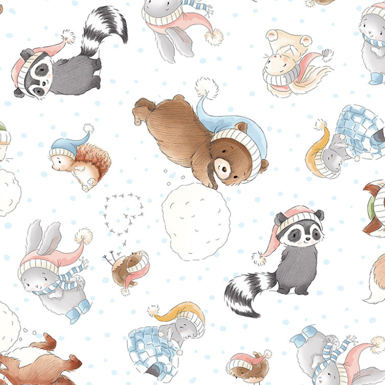 Snow Day - Tossed Animals Playing by Bunnies by the Bay for Timeless Treasures