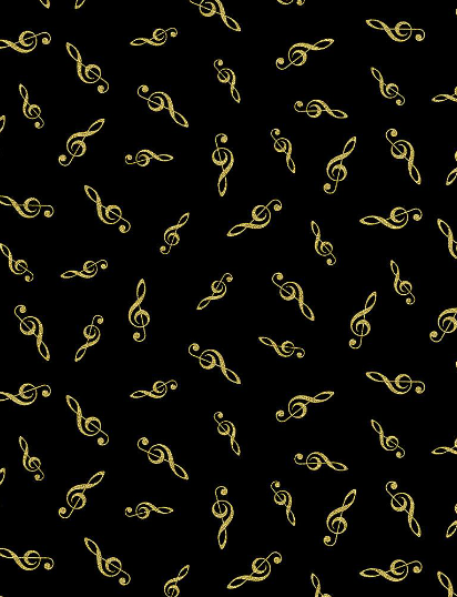 Tossed Metallic G-Clefs Black Yardage