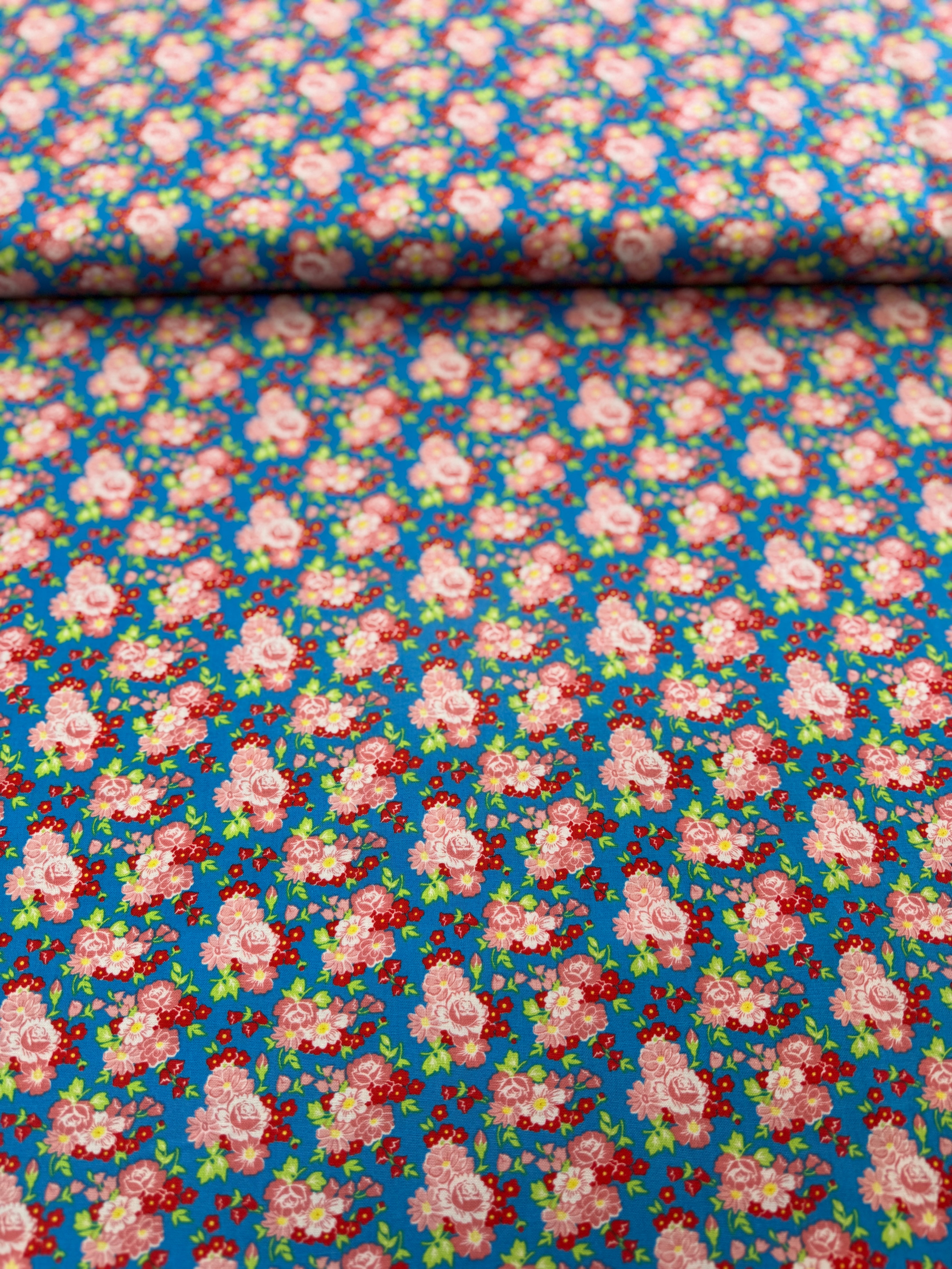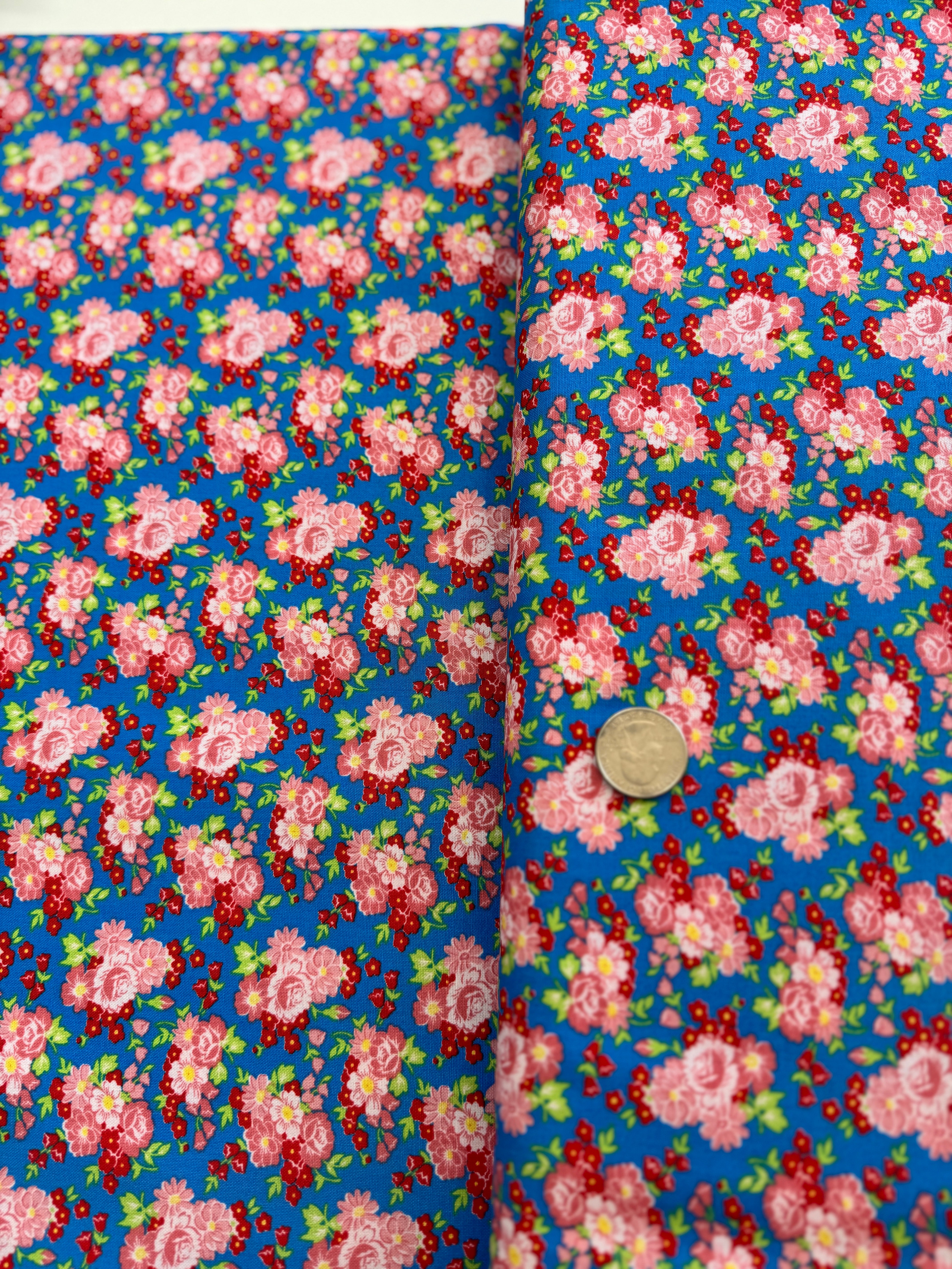Amorette - Roses Blue/Pink by Kaye England for Wilmington Prints